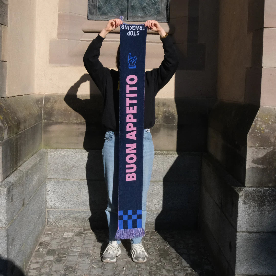 Ob Food-Love oder entspannte Lebensphilosophie – dieser Schal hält dich warm und bringt Haltung in deinen Look.
