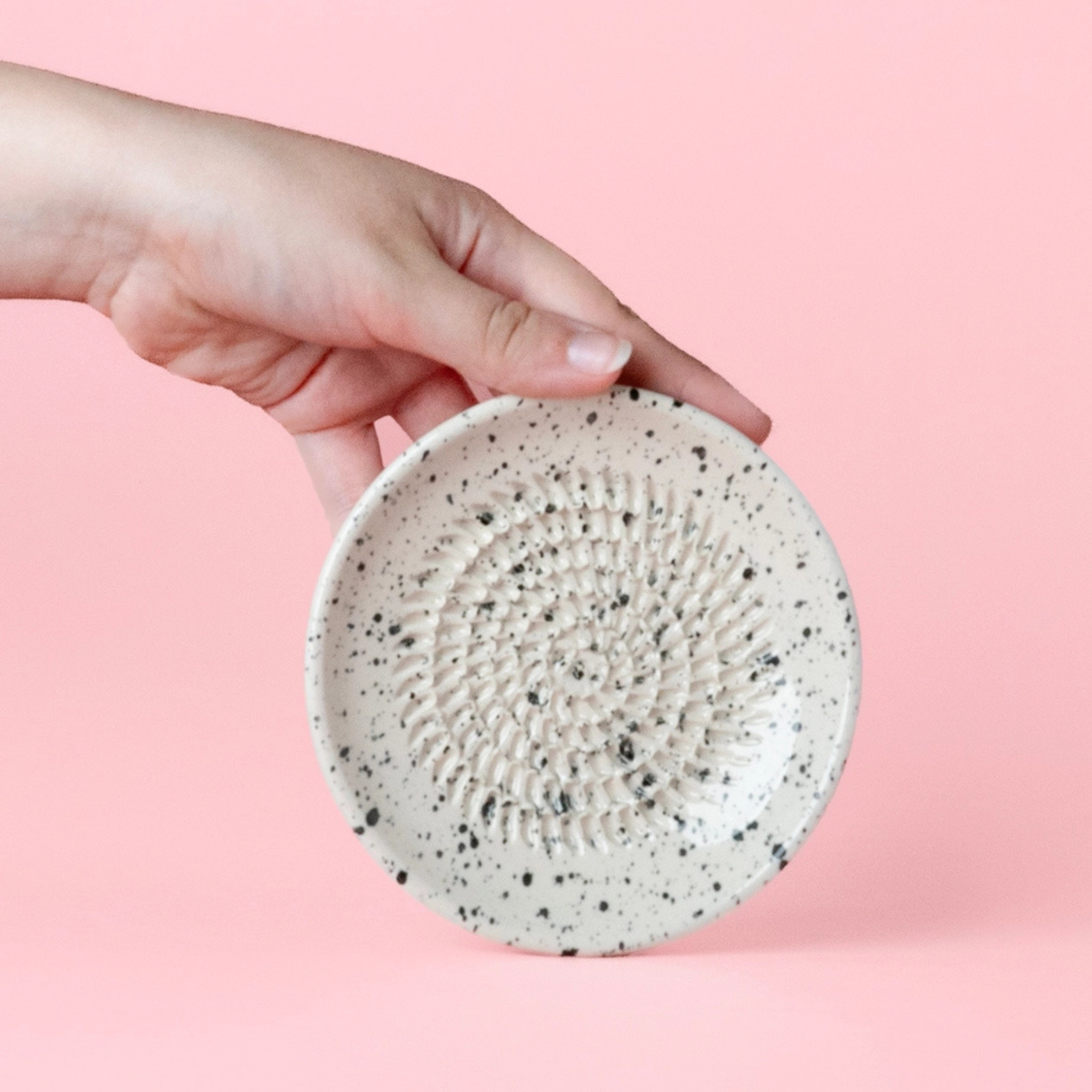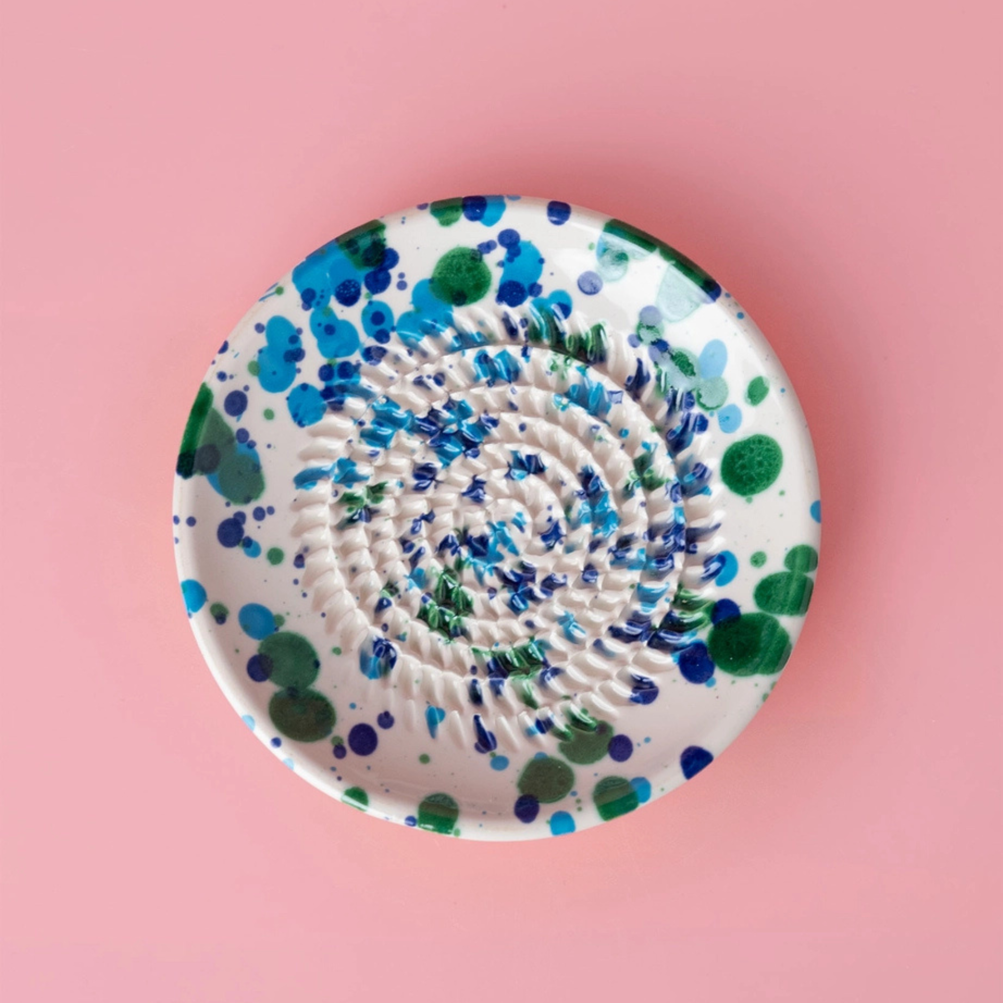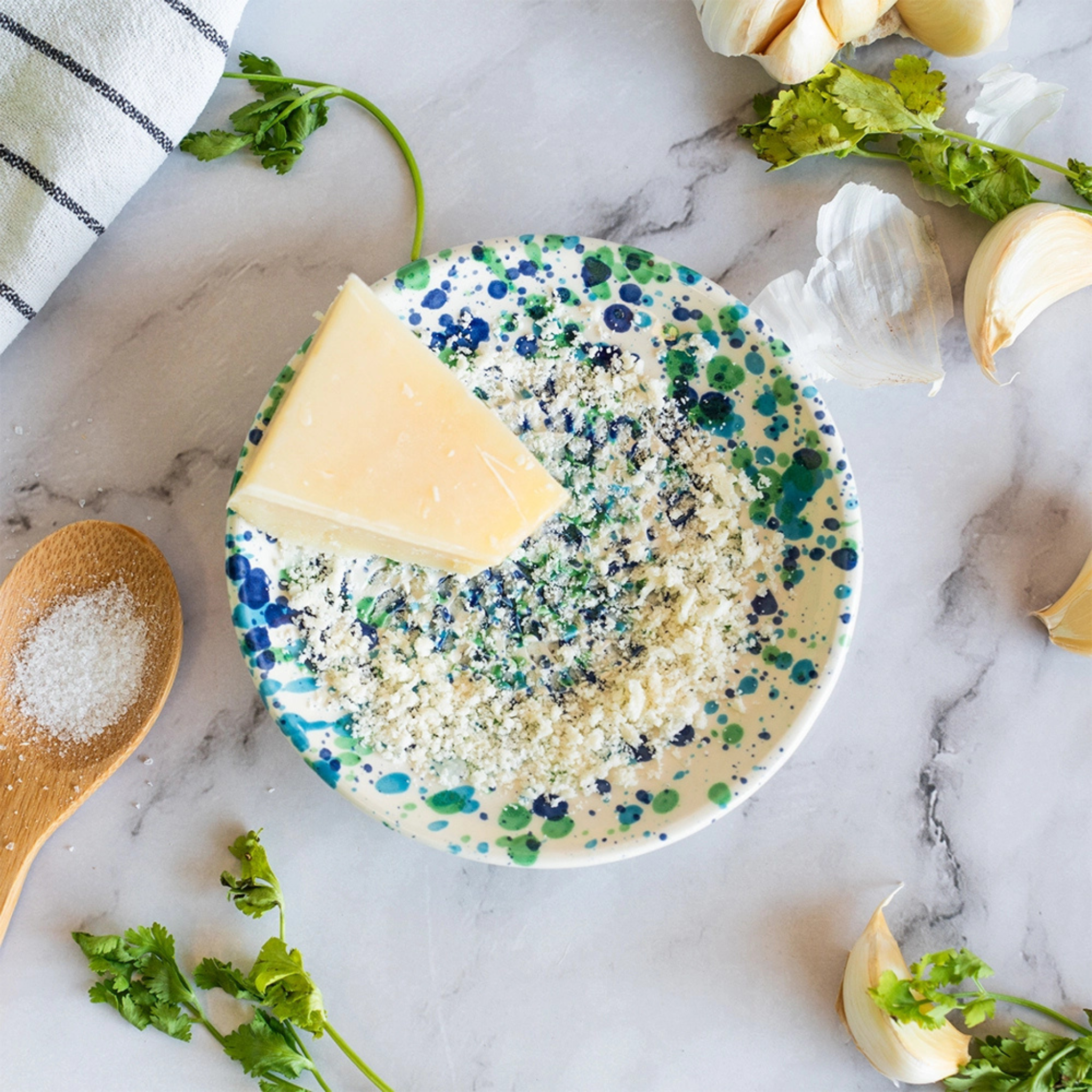 Der kleine Reibeteller (Ø ca. 12,5 cm) ist der perfekte Küchenhelfer für Knoblauch, Tomaten, Parmesan, Muskat oder Ingwer. Einfach die Zutat über die geriffelte Oberfläche reiben und direkt auf dem Teller servieren – ideal für frische Dips, Saucen oder zum Verfeinern von Pasta.