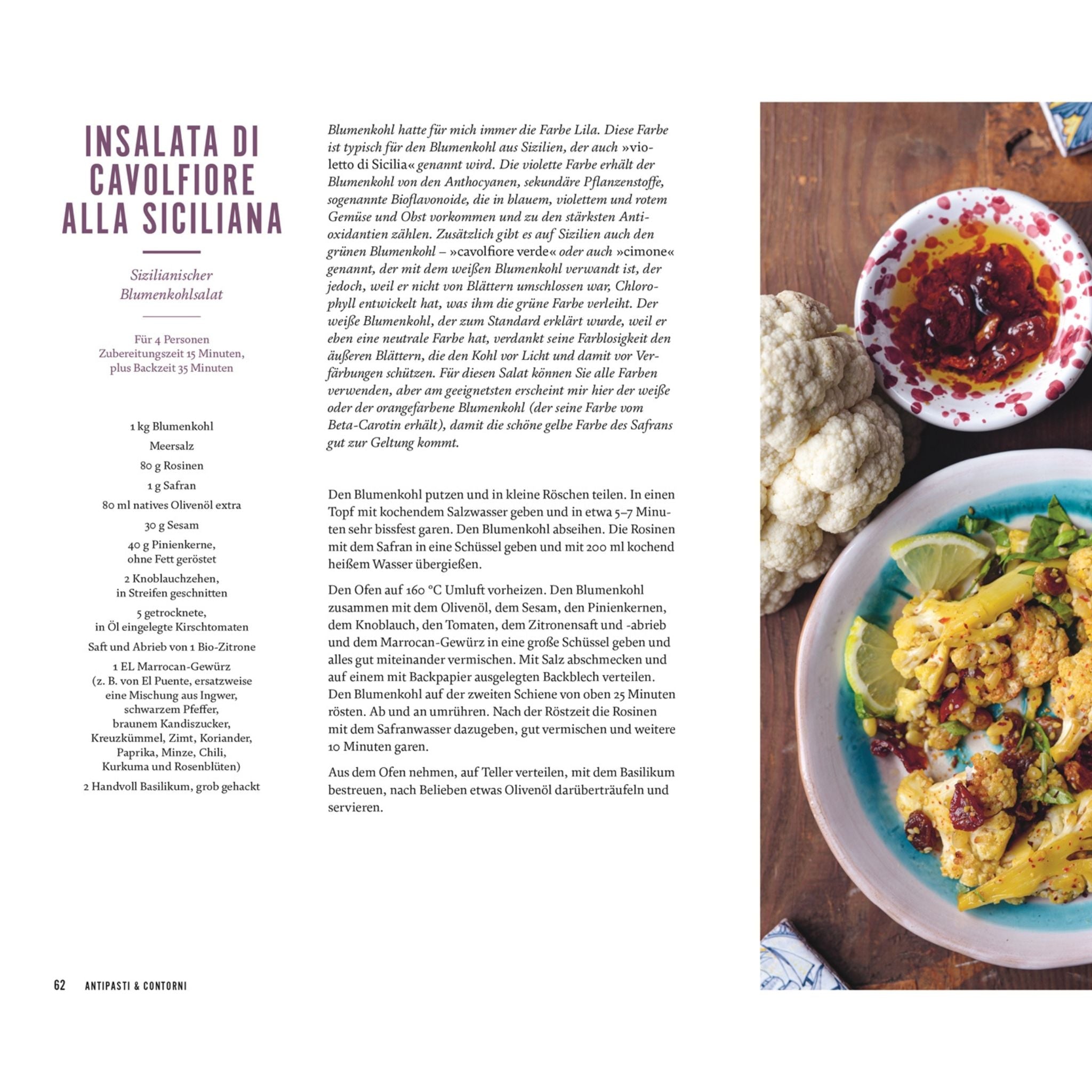 Ob lila-leuchtende Auberginen-Schnitzel, gegrillte Tomaten auf cremigem Bohnenpüree oder eine duftende Parmigiana – hier spielt Gemüse die Hauptrolle. 🍅🥒🍋 Begleitet von stimmungsvollen Fotografien, spannenden Hintergrundinfos zu Produzent:innen und Zutaten sowie einem illustrierten Saisonkalender, bietet das Buch Genuss mit allen Sinnen.