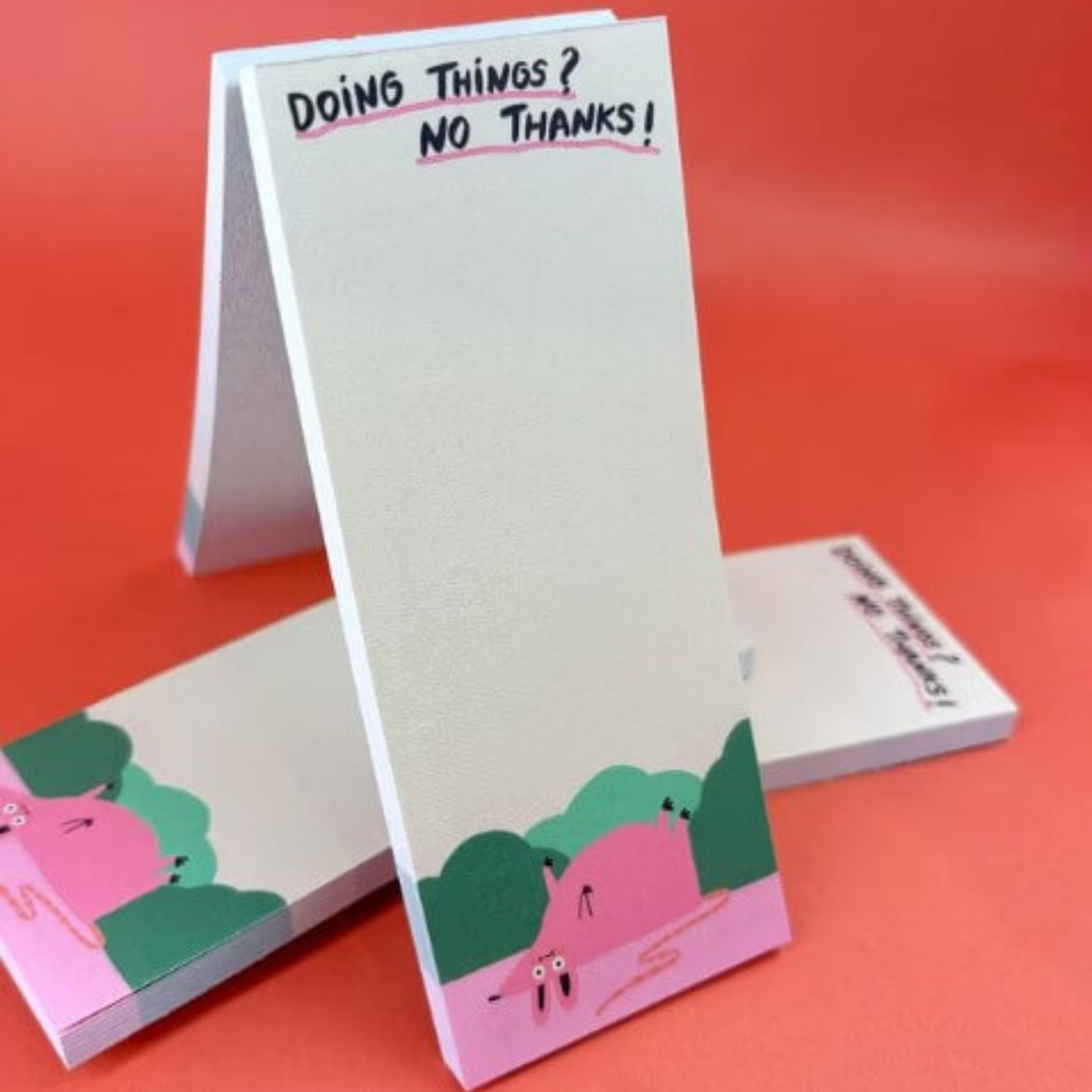 Die liebevoll gestalteten Blöcke bringen Farbe und Humor in deinen Alltag – perfekt für To-do-Listen, kreative Ideen oder als Geschenk für Listenliebhaber:innen mit Sinn für Stil. Ob für den Schreibtisch, die Tasche oder als Mitbringsel – mit Slinga wird Notieren wieder zum Vergnügen!