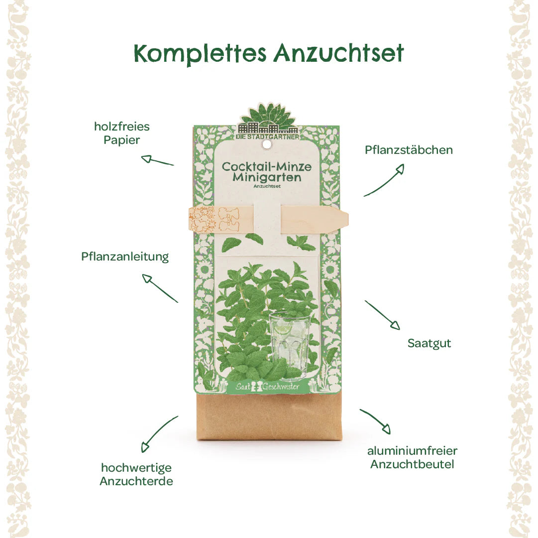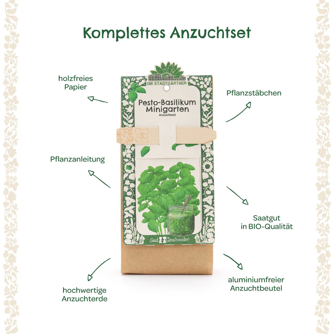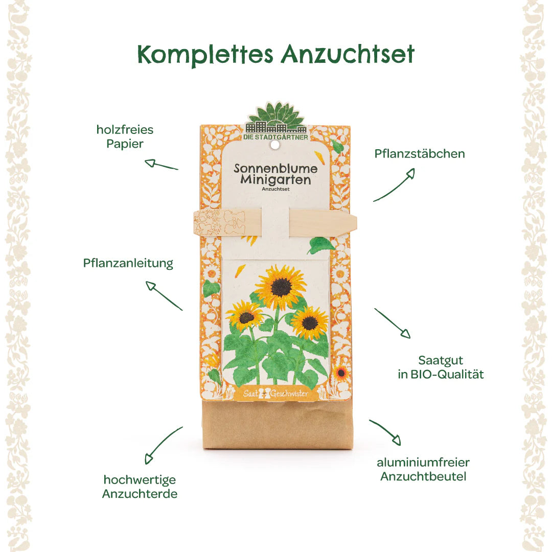• Enthält: Erde, Saatgut, Pflanzstäbchen, bebilderte Anleitung