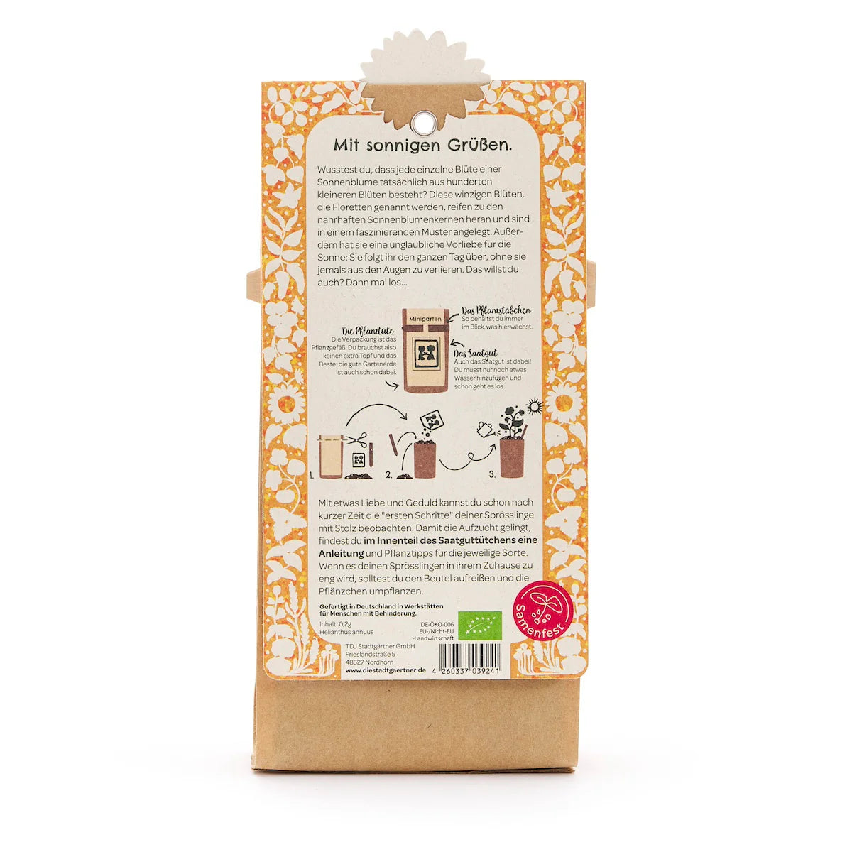 Mit den liebevoll gestalteten Minigarten Anzuchtsets von Die Stadtgärtner holst du dir einen florierenden Mini-Garten direkt nach Hause – ob auf die Fensterbank, den Balkon oder im Büro. Jede Tüte enthält alles, was du brauchst: hochwertige Erde, keimfreudiges (Bio-)Saatgut, ein praktisches Pflanzstäbchen sowie eine anschauliche Anleitung. Und clever: Die wasserfeste Verpackung dient gleich als Pflanztopf – Müll fällt nicht an!