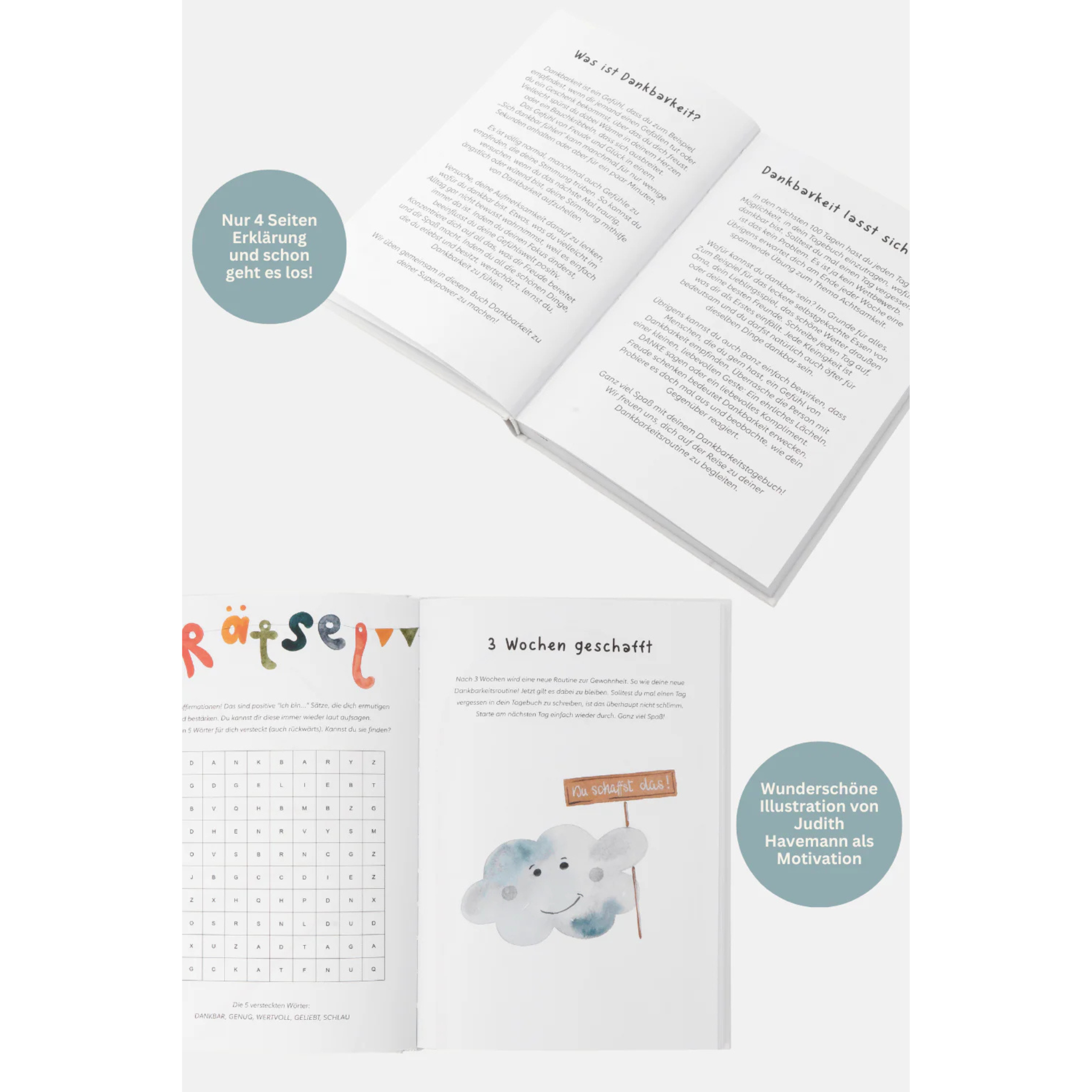 Schön illustriertes Dankbarkeitstagebuch mit spielerischen Übungen für Kinder von The Life Barn.
