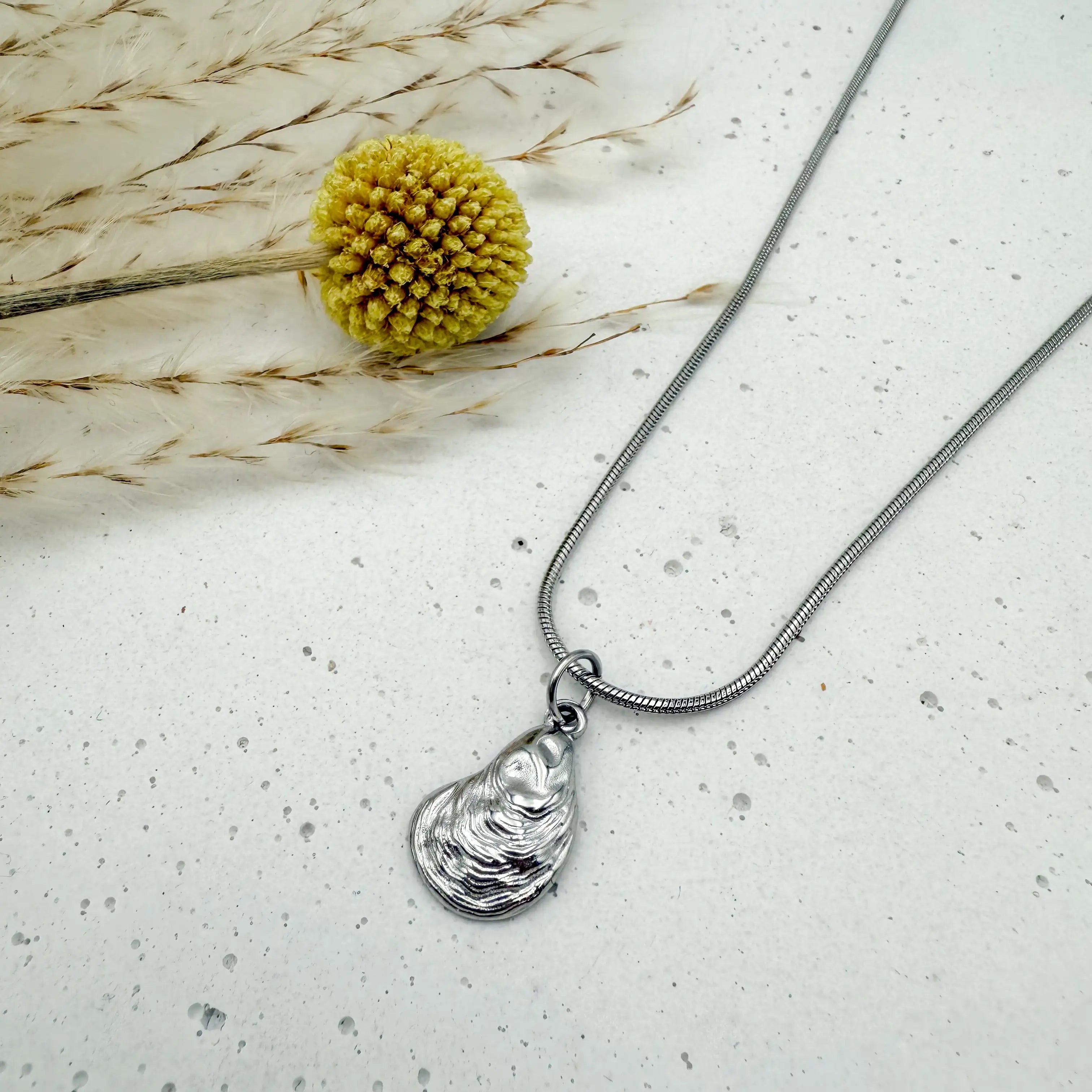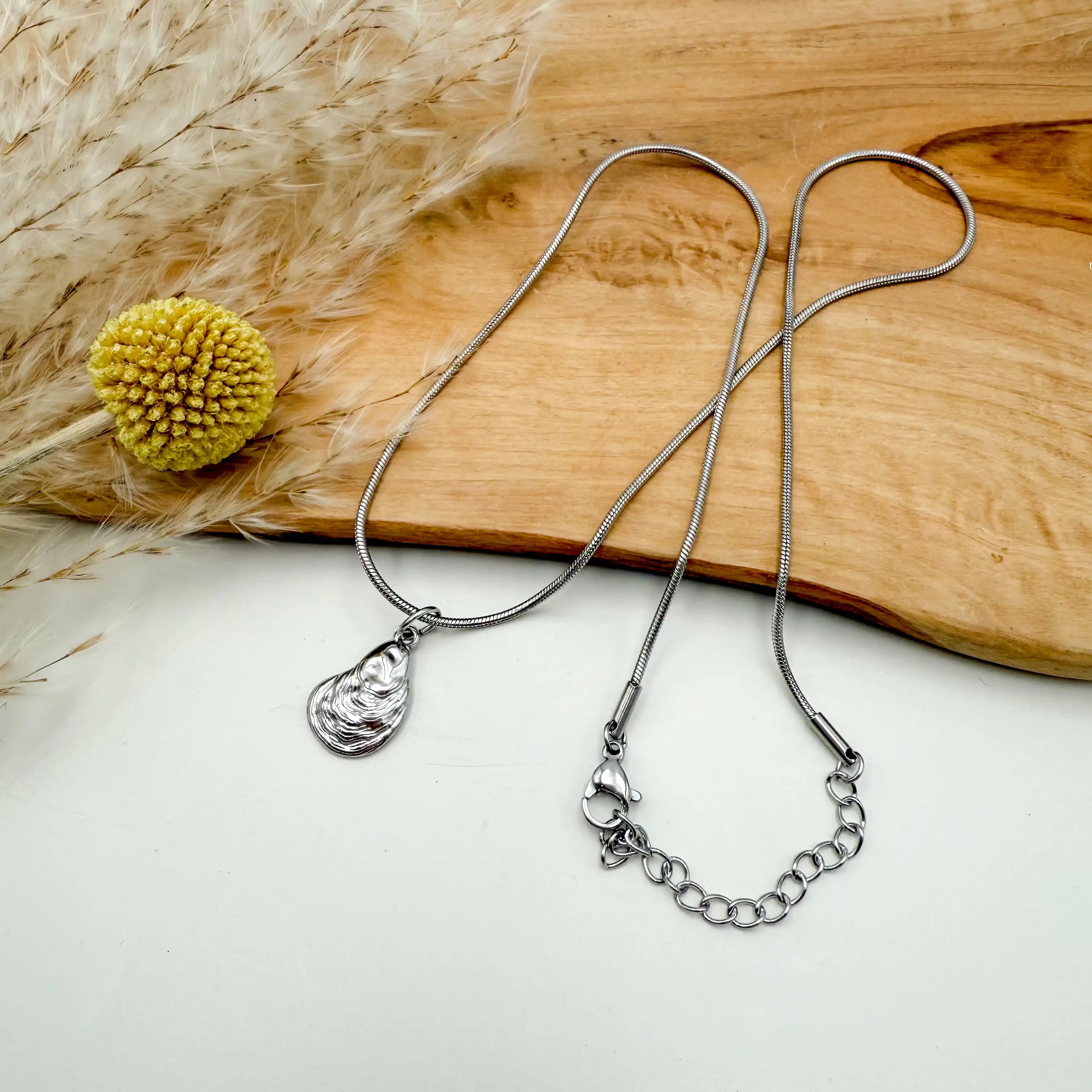 Die Nacara Silber Kette von Vagabundobjects vereint minimalistischen Chic mit maritimer Eleganz: Eine filigrane Schlangenkette trägt einen kleinen, stilisierten Auster-Anhänger aus gleichem hochwertigem Edelstahl – ein subtiler Blickfang, der jedes Outfit edel abrundet. ✨🐚💛