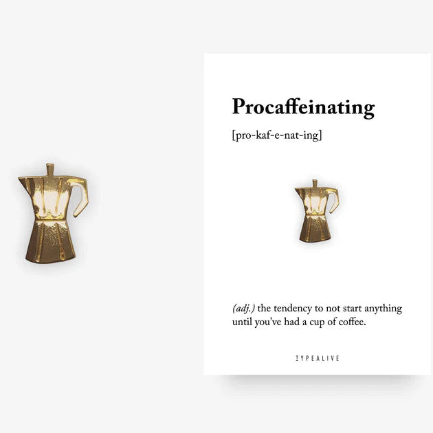Pins von typealive sind aus Messing, geprägt, gold plattiert und werden durch einen Schmetterlingsverschluss mit Schutzkappe fixiert, die verhindert, dass du dich pikst. Die lokale Manufakturproduktion macht jeden Pin zu einem einzigartigen Einzelstück. Der Pin kommt mit einer passend illustrierten Karte. Die Karte ist gelocht und hält den Pin in Position.