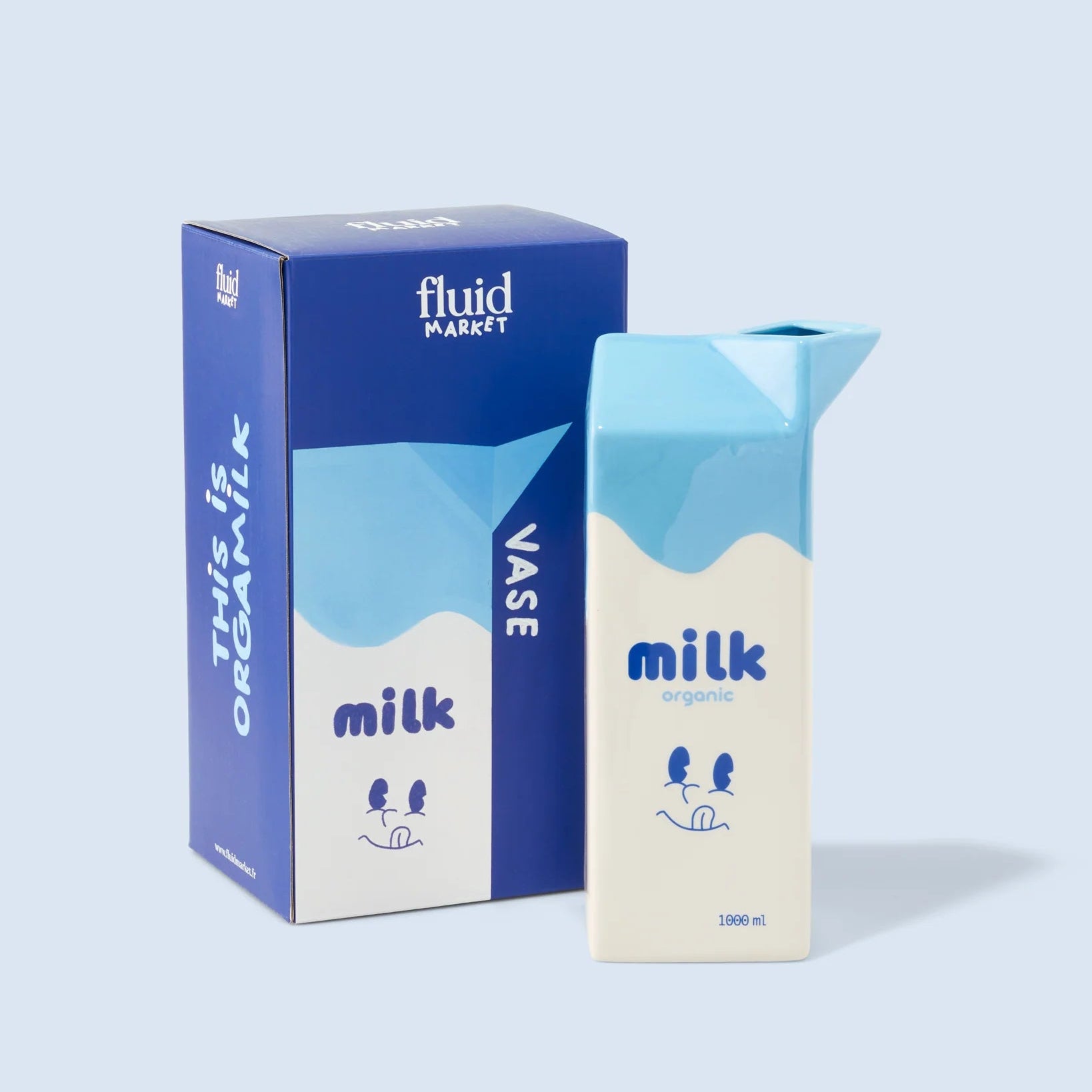Nach  dem erfolgreichen Design der ikonischen Saftflasche von Fluid Market war klar – diese Milch Vase durfte nicht fehlen. Die Milk Vase ist der augenzwinkernde Cousin im Fluid-Market-Universum: verspielt, charmant und absolut nicht langweilig. Sie bringt Humor ins Regal, Leichtigkeit auf den Tisch und macht aus einem Alltagsobjekt ein echtes Design-Statement.
