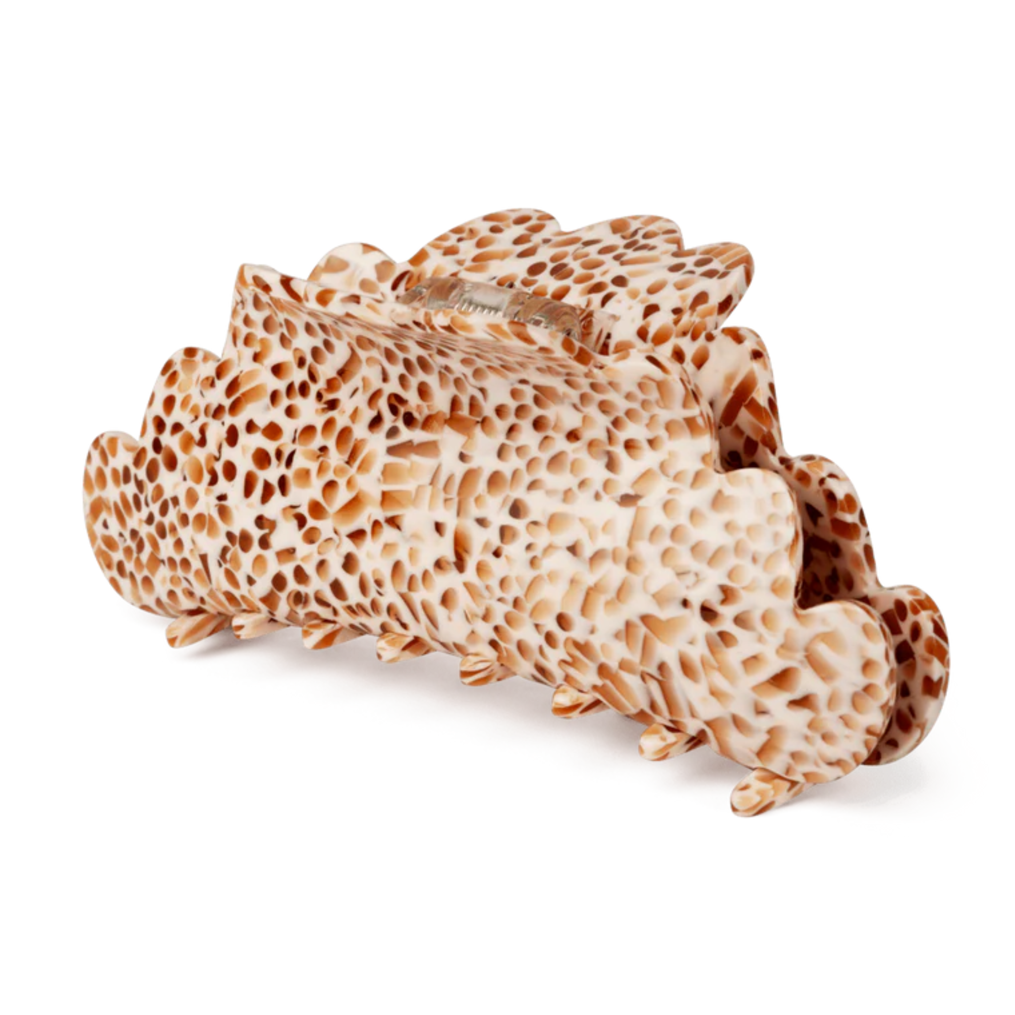 Simone Mind Big ist eine klassische und funktionelle Haarspange von der dänischen Marke SUI AVA in einem schönen Braunton mit dekorativem Muster.