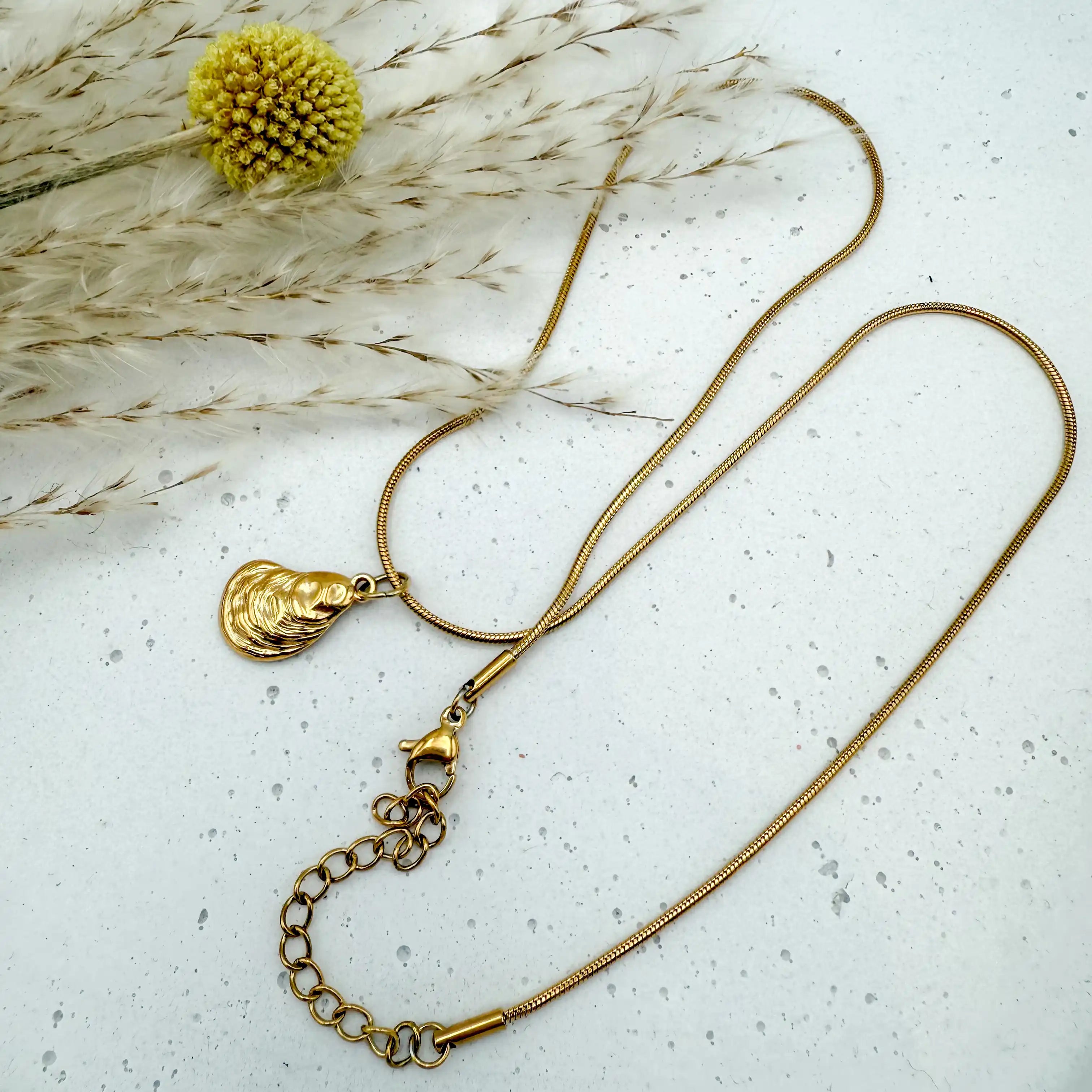 ✨ Nacara Gold – Zarte Schlangenkette mit Auster-Anhänger