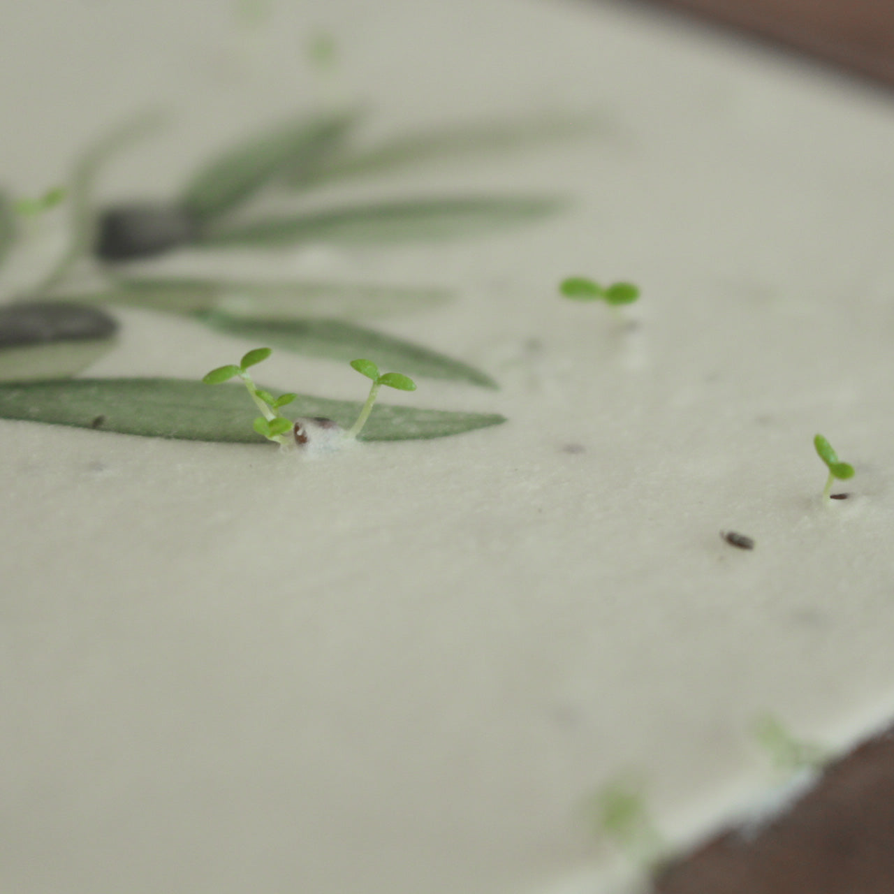 So funktioniert’s: Karte zerreißen, in Wasser über Nacht einweichen, durchrühren, auf Erde gießen, hauchdünn mit Erde bedecken, mit Sprühflasche dauerhaft feucht halten – und bald schon sprießen bunte Blüten. 🌸