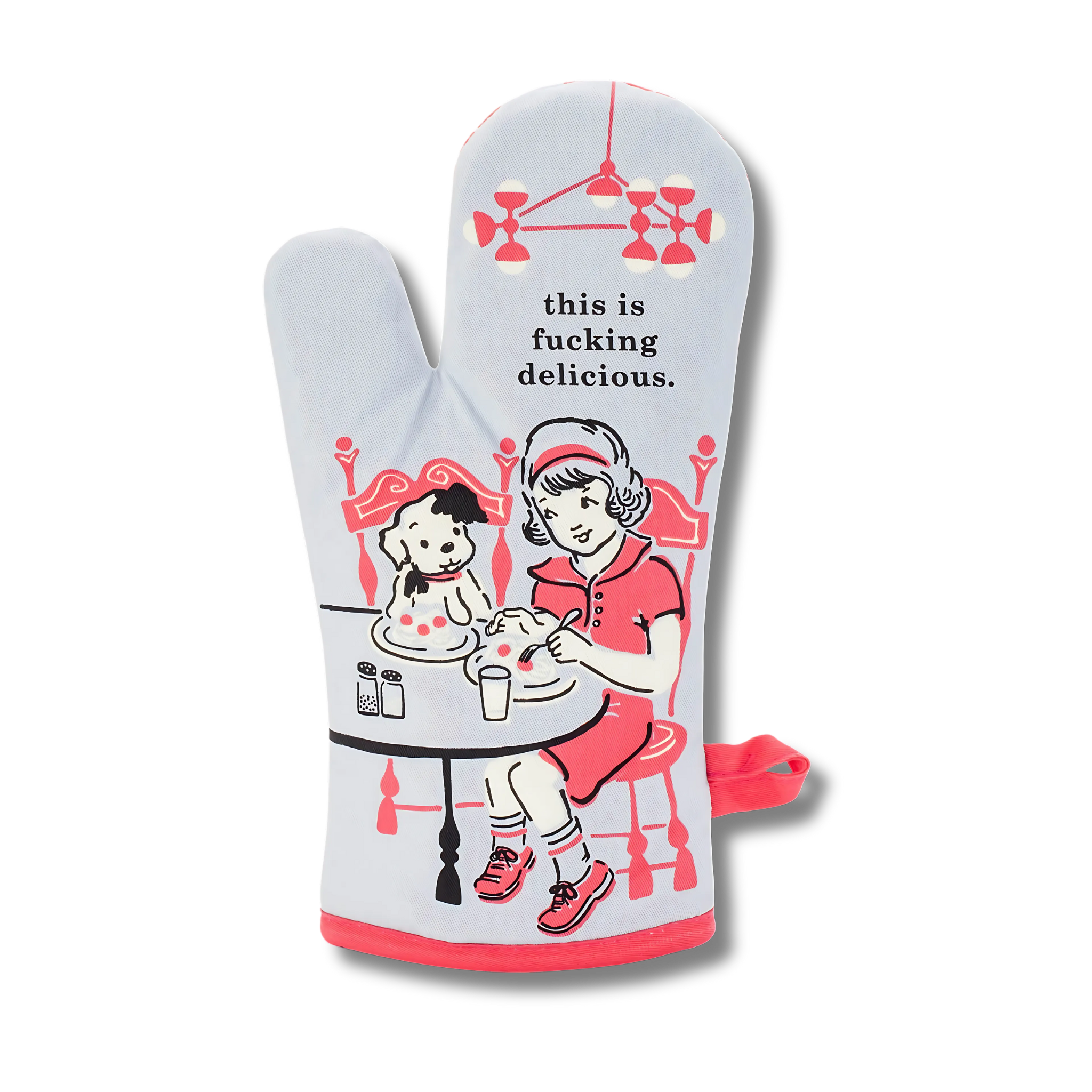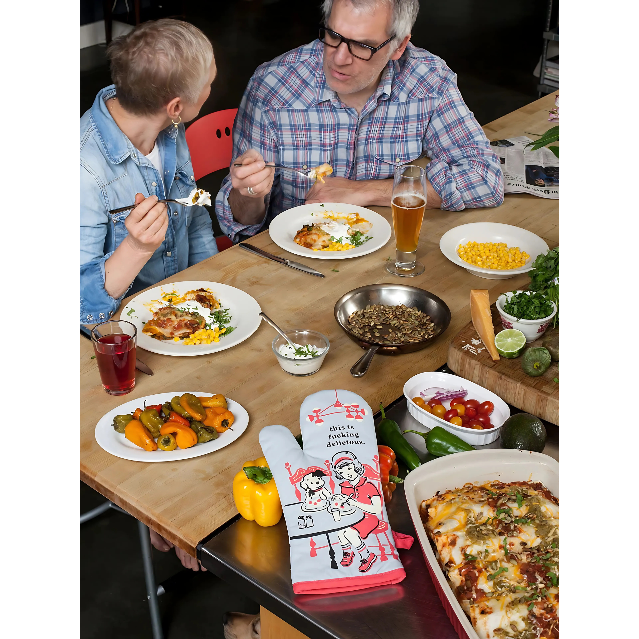Der Ofenhandschuh von Blue Q hält deine Hände nicht nur geschützt, sondern sehen dabei auch noch stylisch aus.