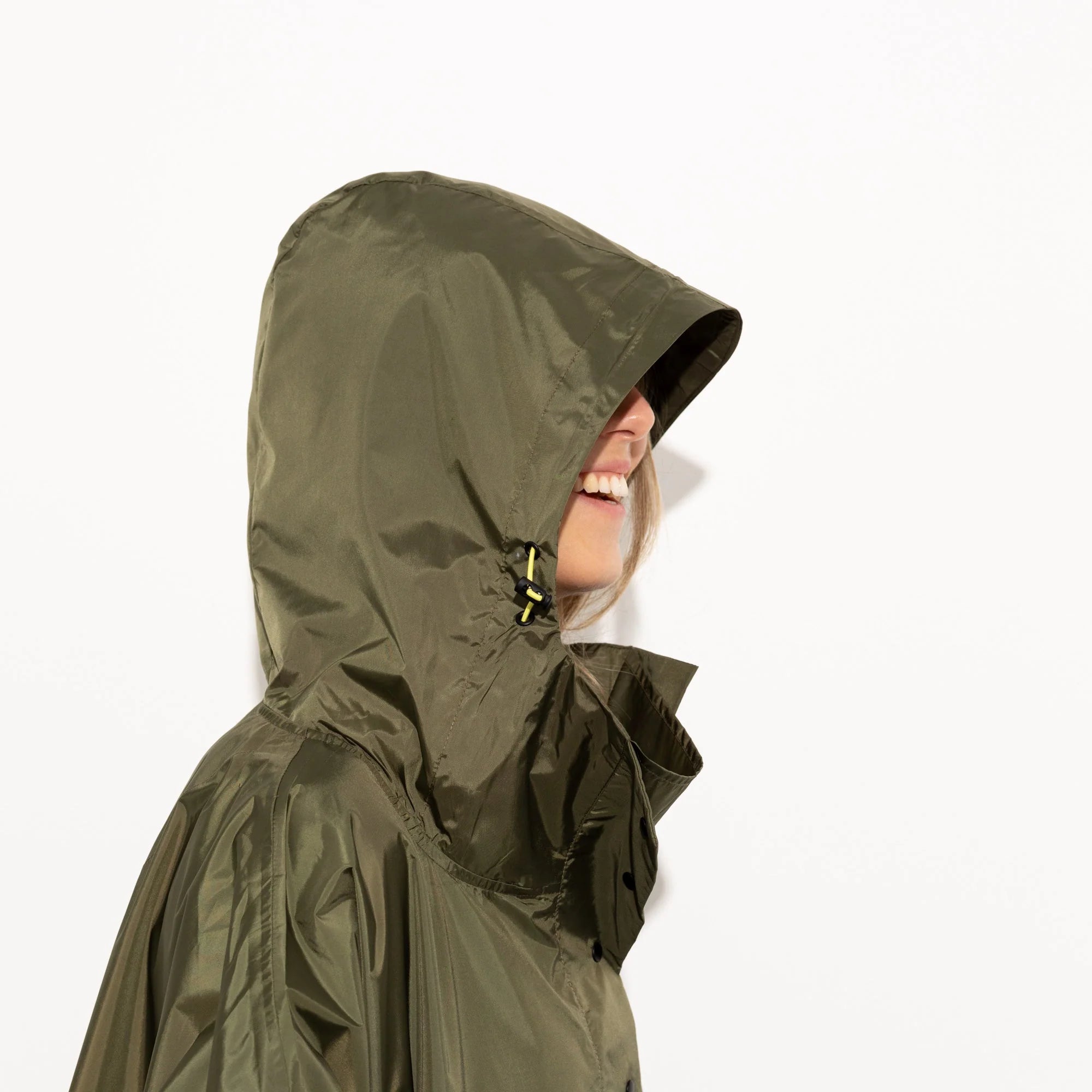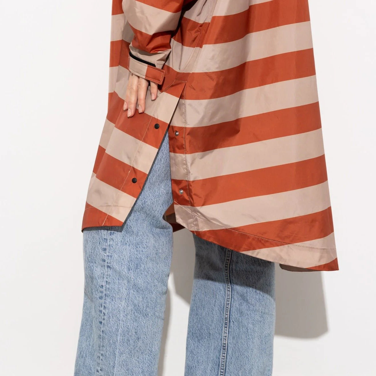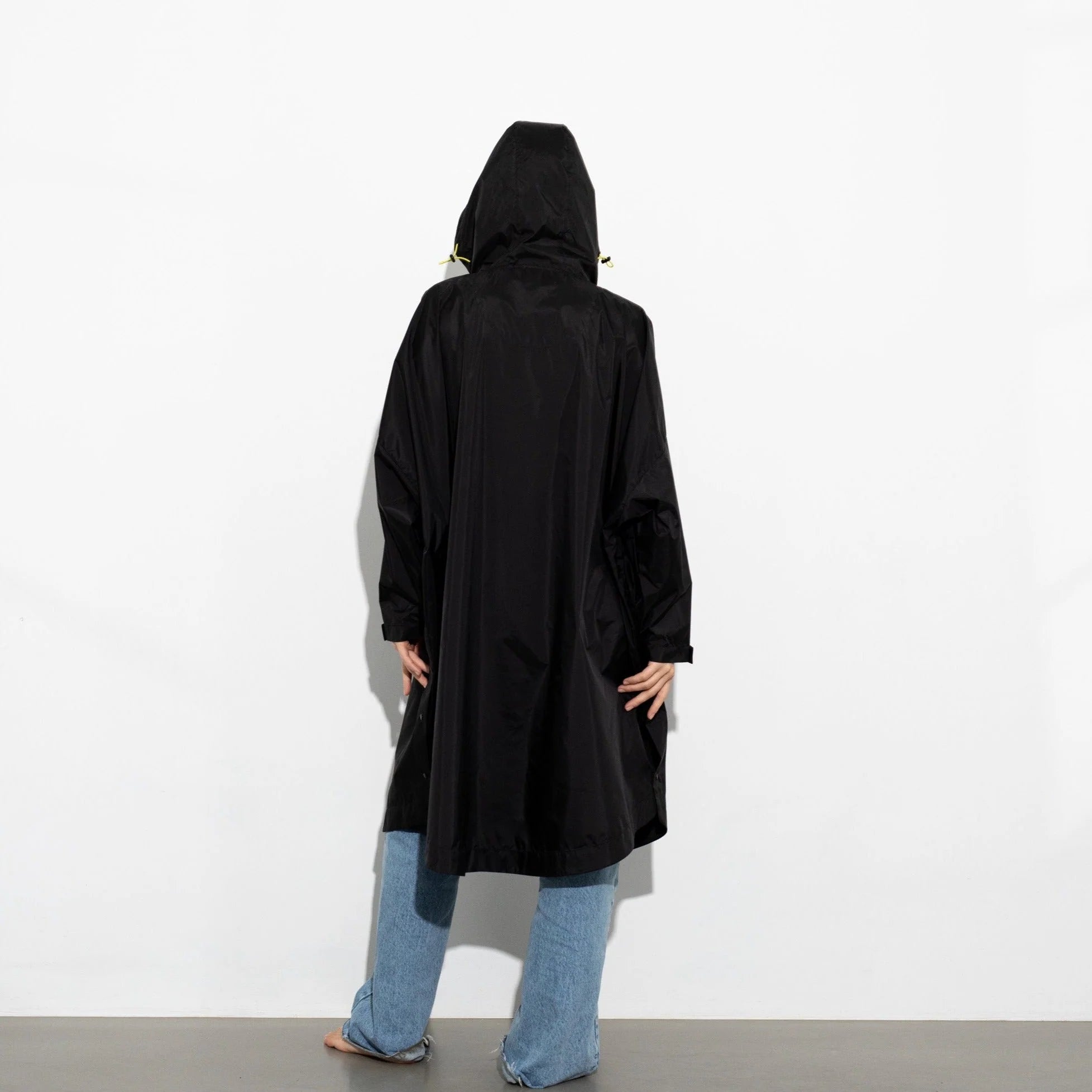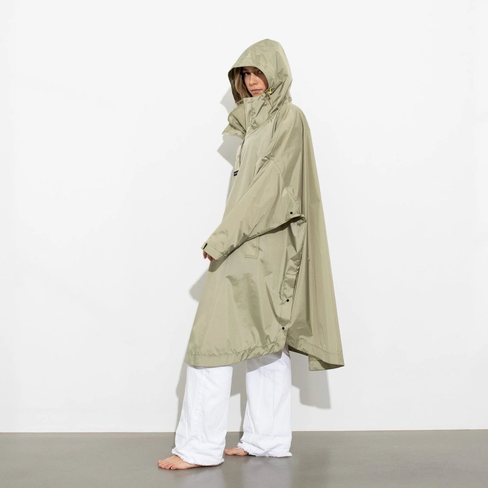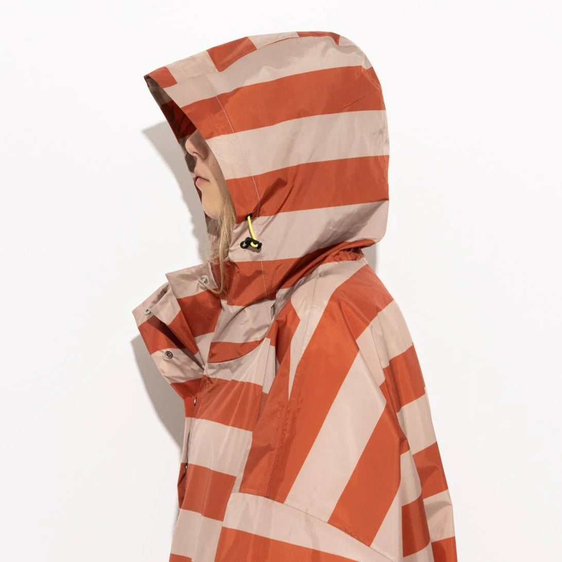 Seine oversize Passform sorgt nicht nur für Bewegungsfreiheit, sondern macht den Raincoat auch perfekt für dein Fahrrad. Dank des abgerundeten Saums mit Knöpfen bist du rundum geschützt. Die Kapuze mit elastischem Band und der Regenschutzeinsatz mit Knopfleiste am Hals halten dich trocken, während die verstellbaren Ärmelmanschetten und seitlichen Taschen zusätzlichen Komfort bieten.