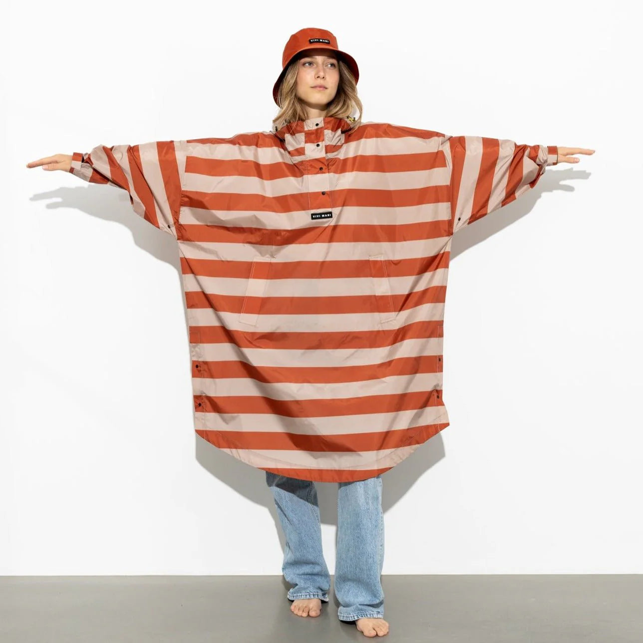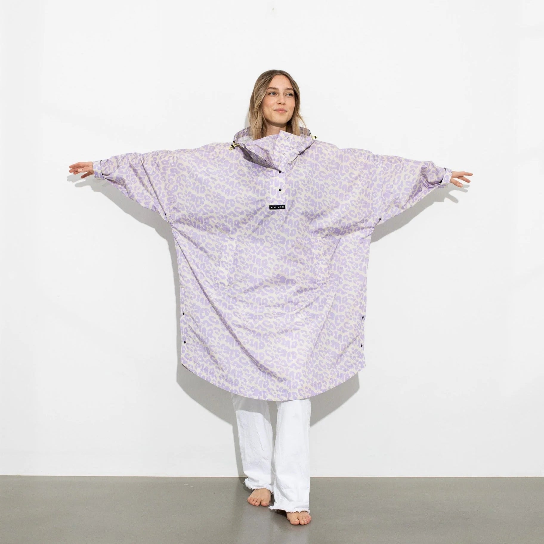 Und das Beste: Jeder Raincoat kommt mit einem passenden VIVI MARI Coverbag im Produktdesign – praktisch für unterwegs und perfekt zum Verstauen.