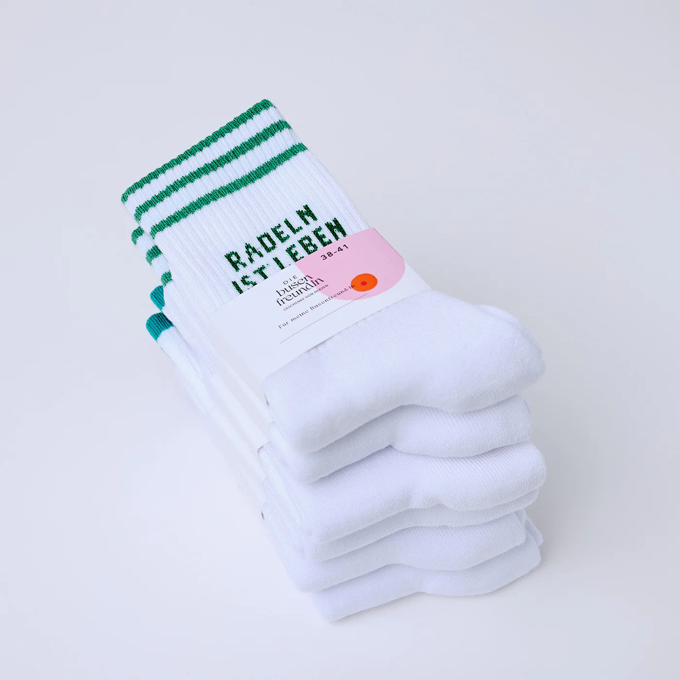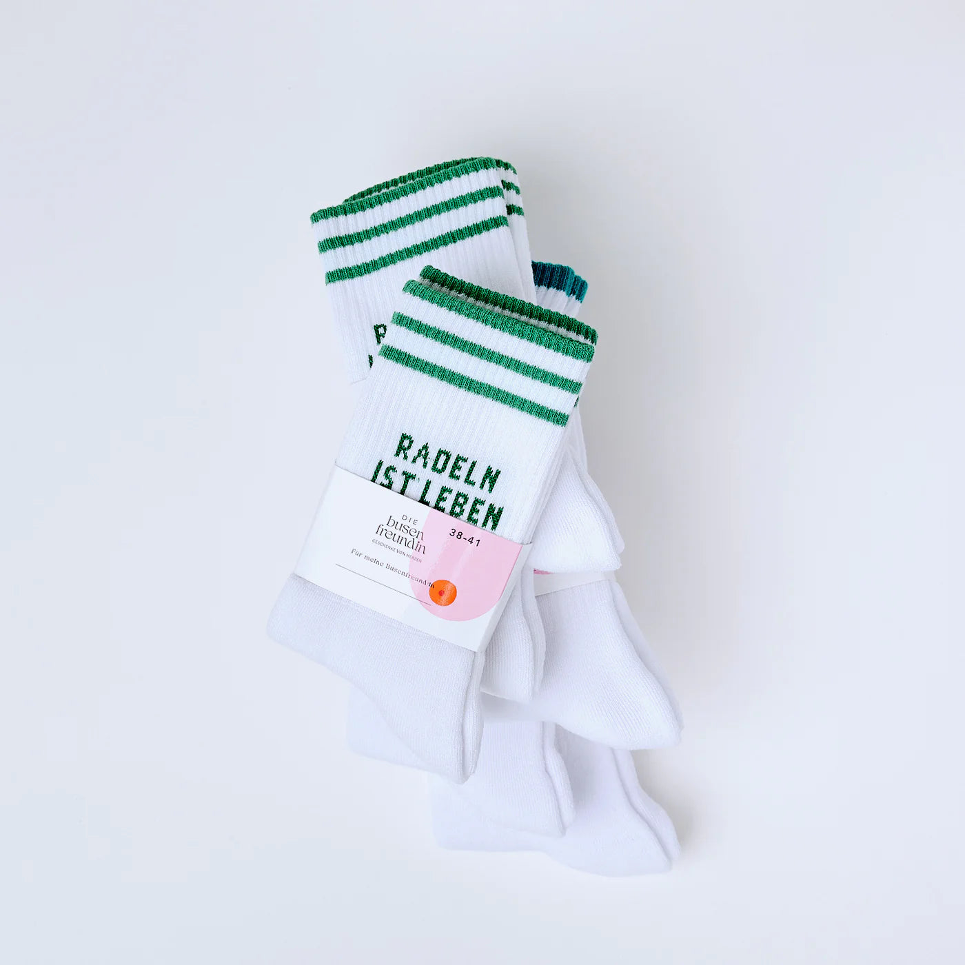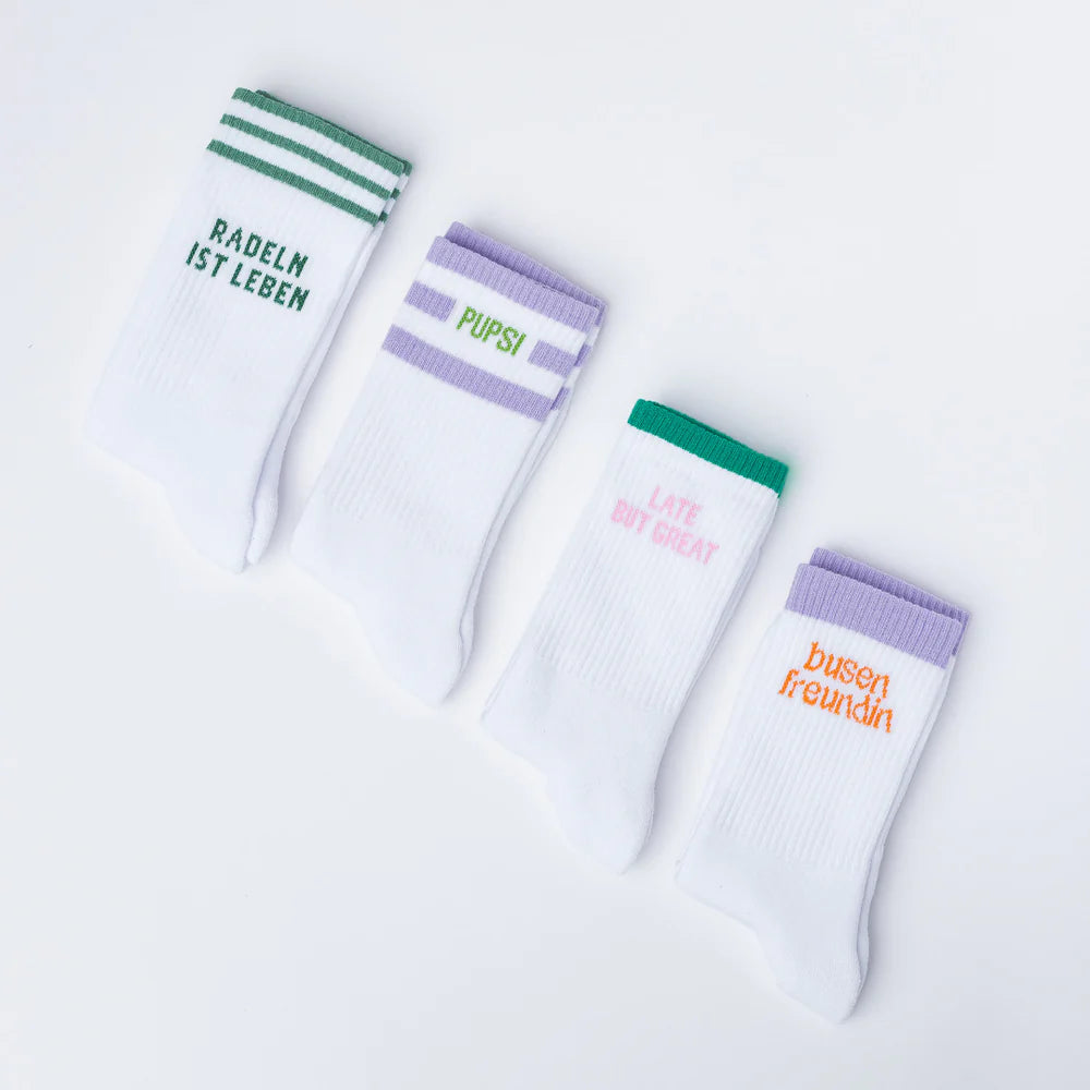 Du und deine Busenfreund:innen radeln für ihr Leben gern? Bring Farbe und Persönlichkeit an deine Füße mit den Radeln ist Leben Socken von Die Busenfreundin! Diese bunten Socken sind mehr als nur ein Accessoire: Sie vereinen Komfort und Qualität und sind wahre Statement Socken.