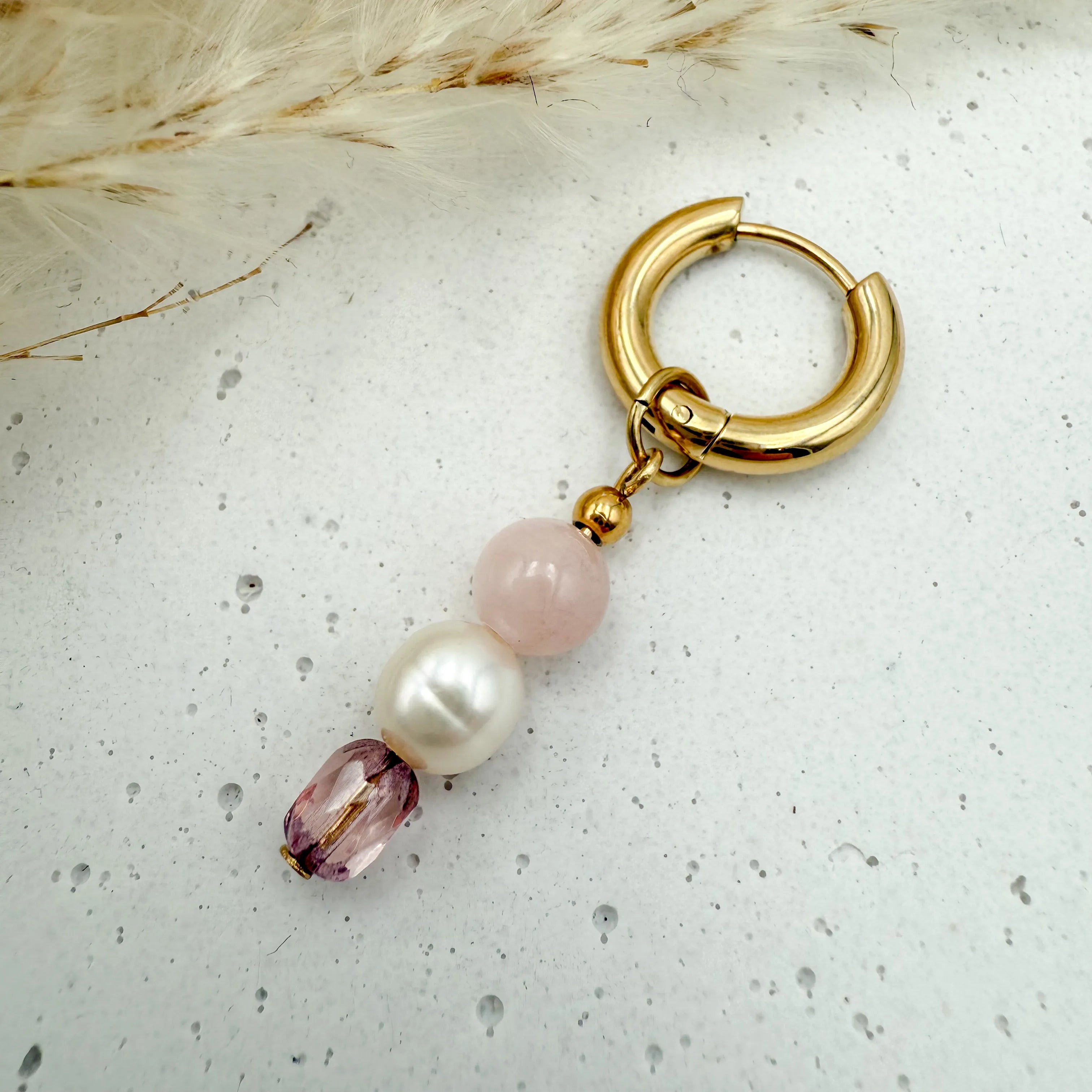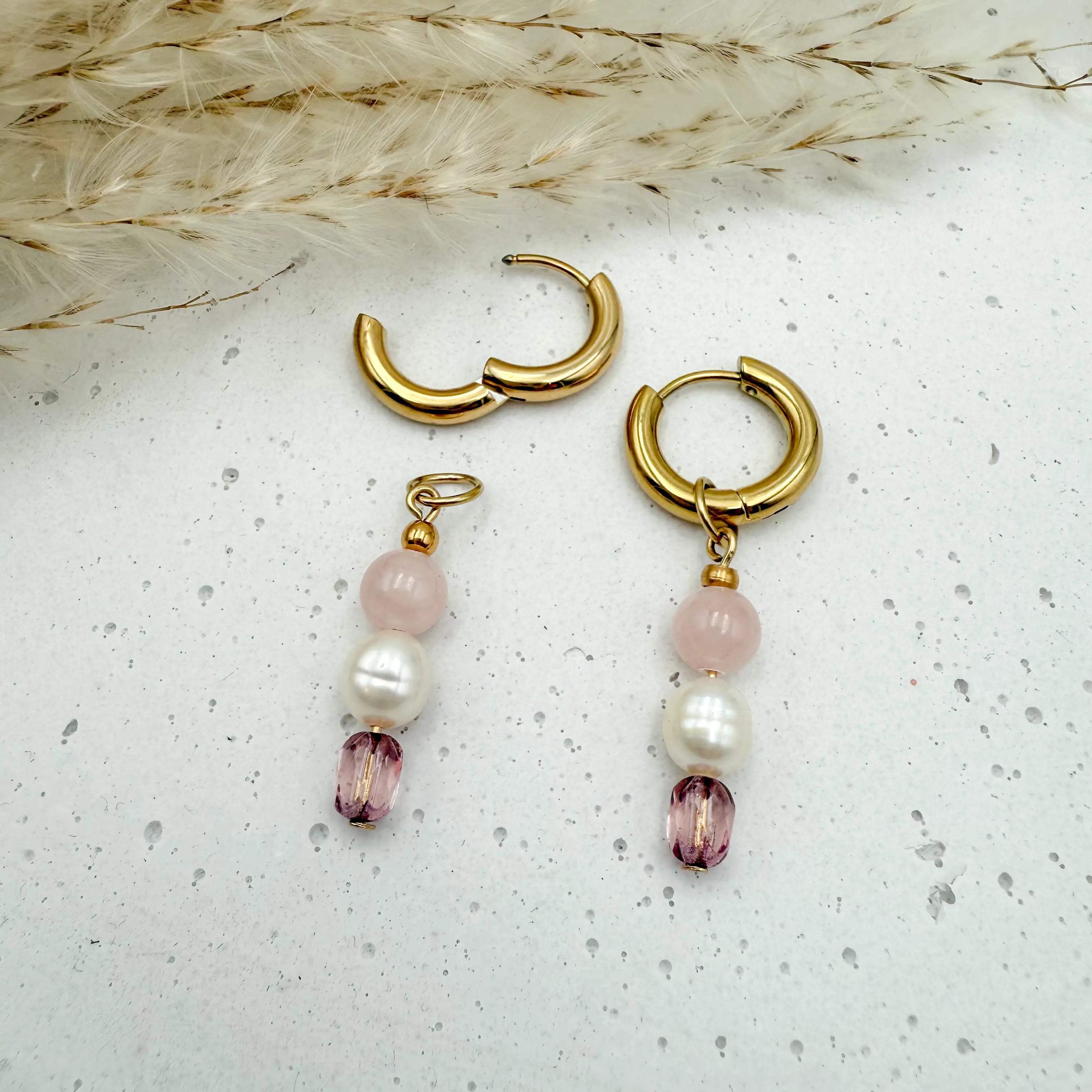 - Anhänger: Edelstahl 18K vergoldet, Natursteine, Süßwasserperlen