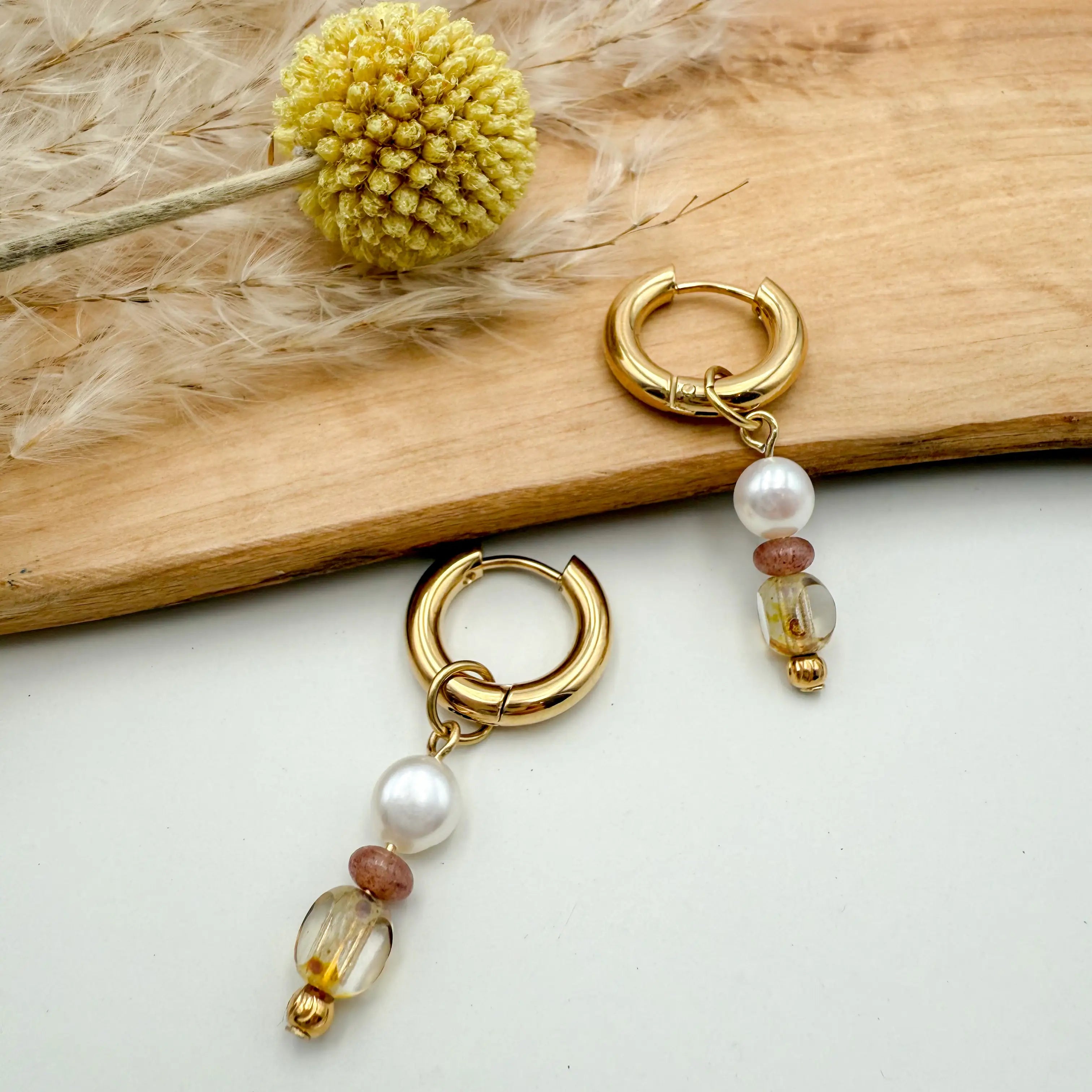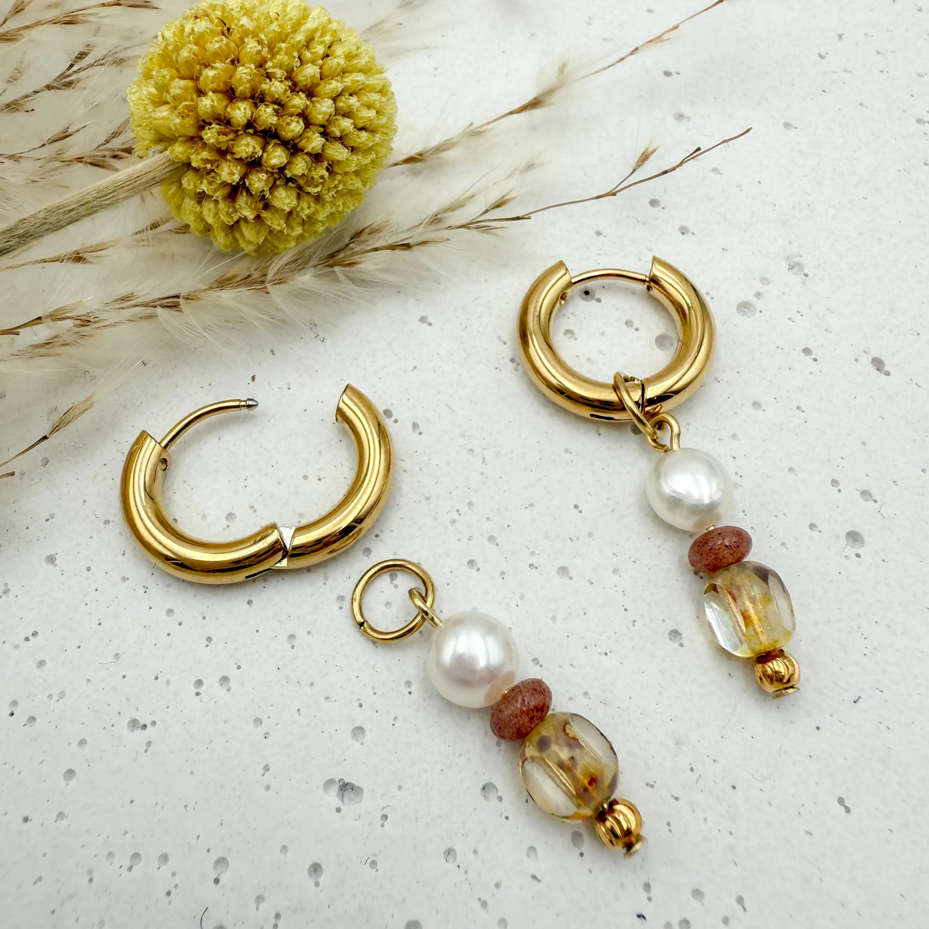 • Anhänger: Edelstahl 18K vergoldet, Natursteine, Süßwasserperlen