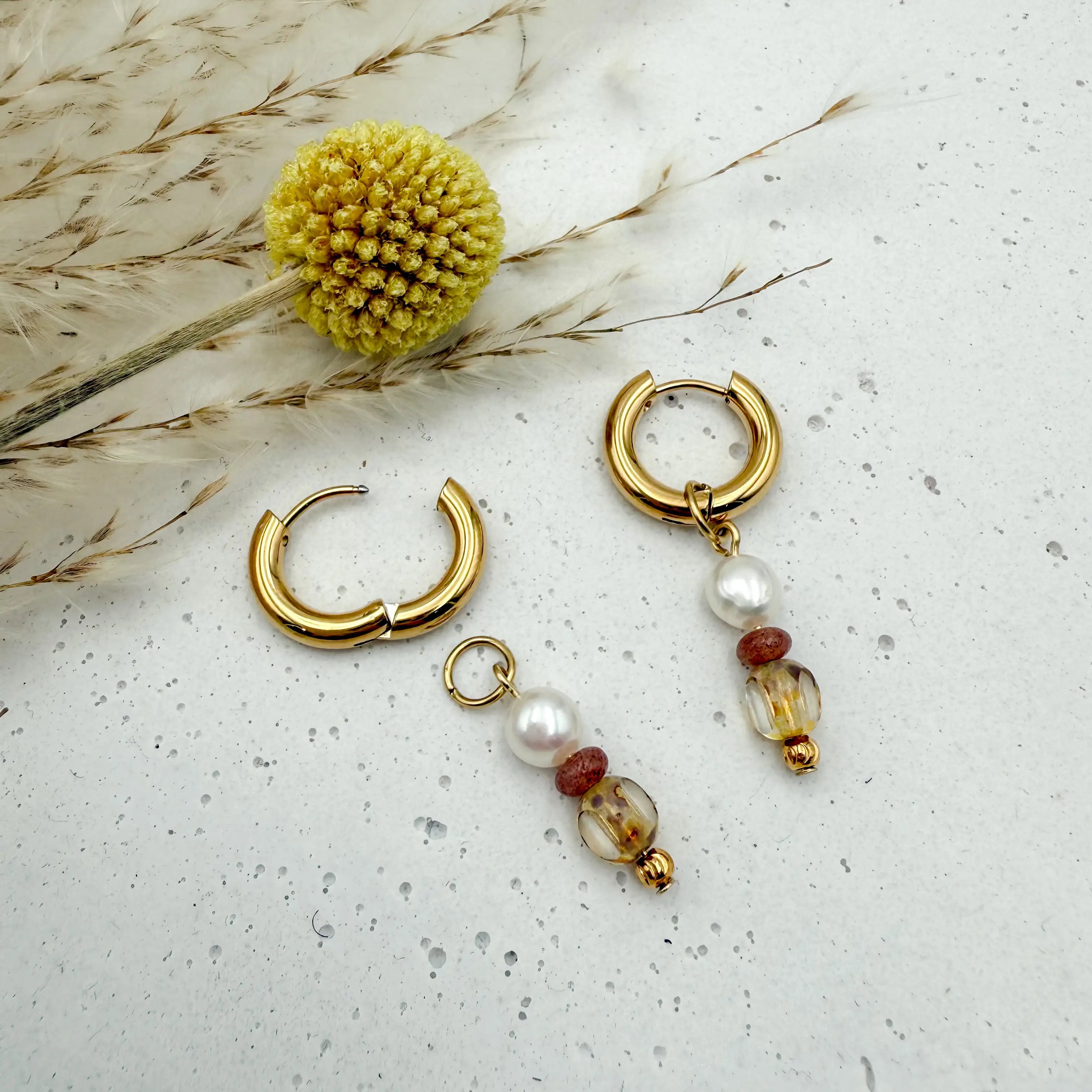 Bitte beachte: Jedes Ohrring Paar unterscheidet sich in Musterung oder Farbe des Natursteins und der Süßwasserperlen, zudem können die Ohrringe von den Bilder in unserem Onlineshop abweichen. Jeder Ohrring ist daher ein Unikat.