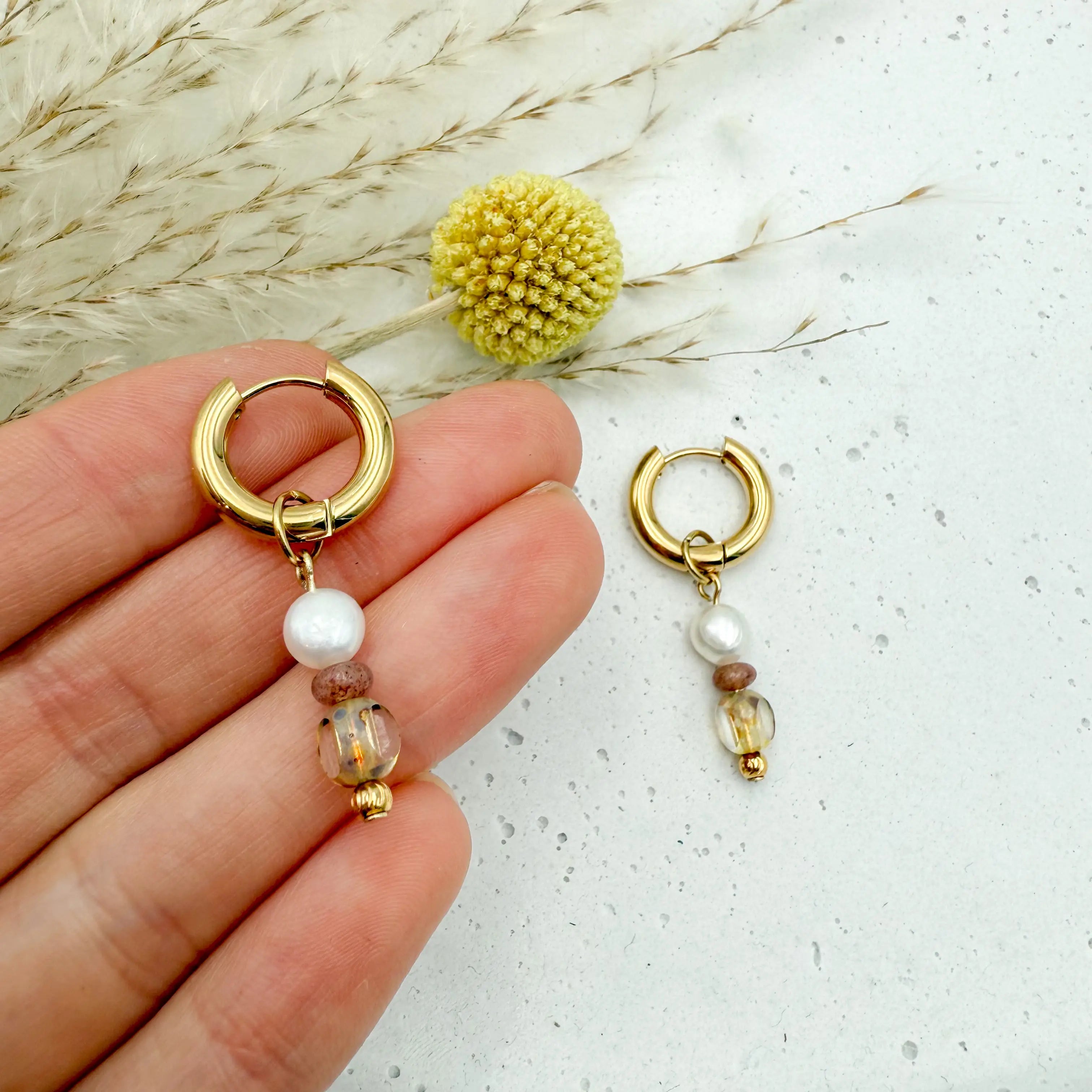 Sowohl Naturstein als auch Süßwasserperlen sind echte Naturprodukte. Darum können Farbe, Form und Musterung leicht vom Foto abweichen – und genau das macht deine Alysé Gold Ohrringe zu einem einzigartigen Unikat, das es nur einmal gibt. 🌿💎