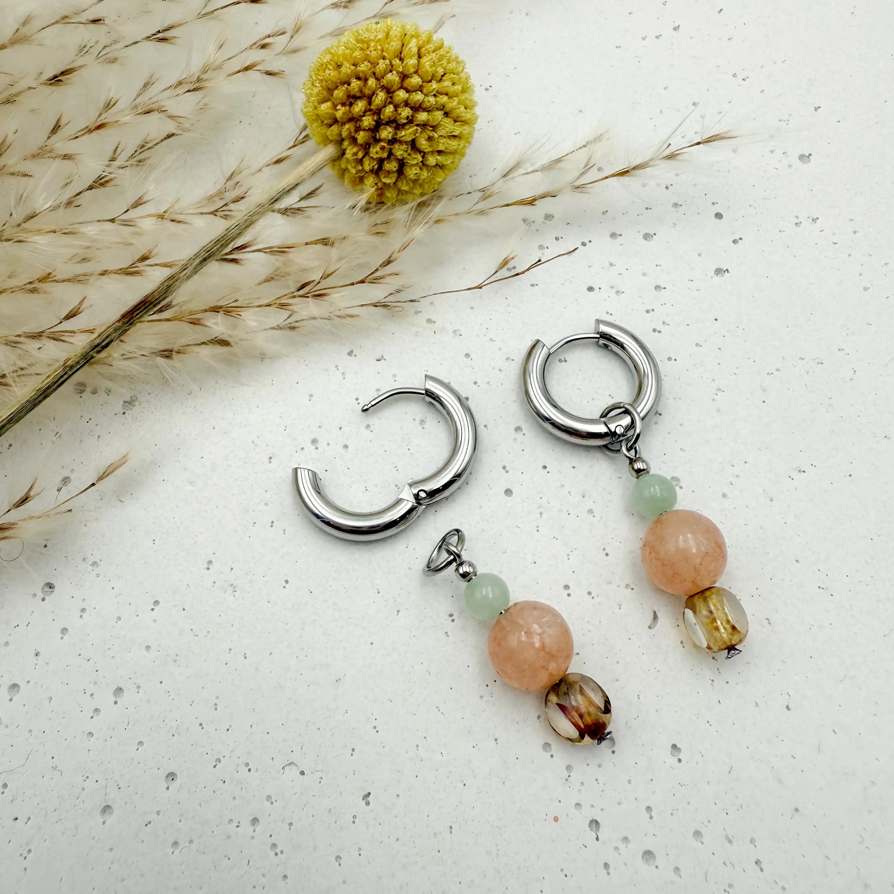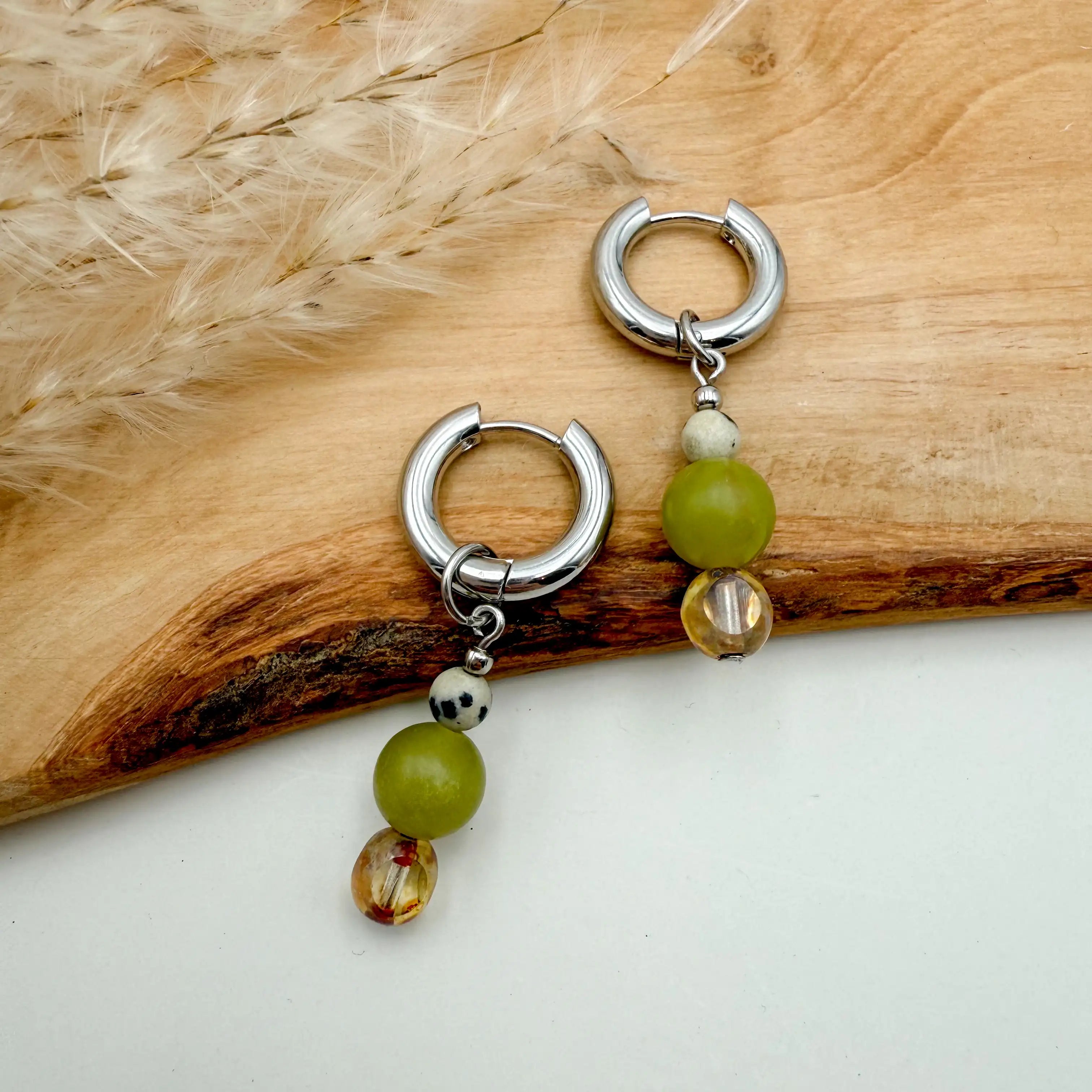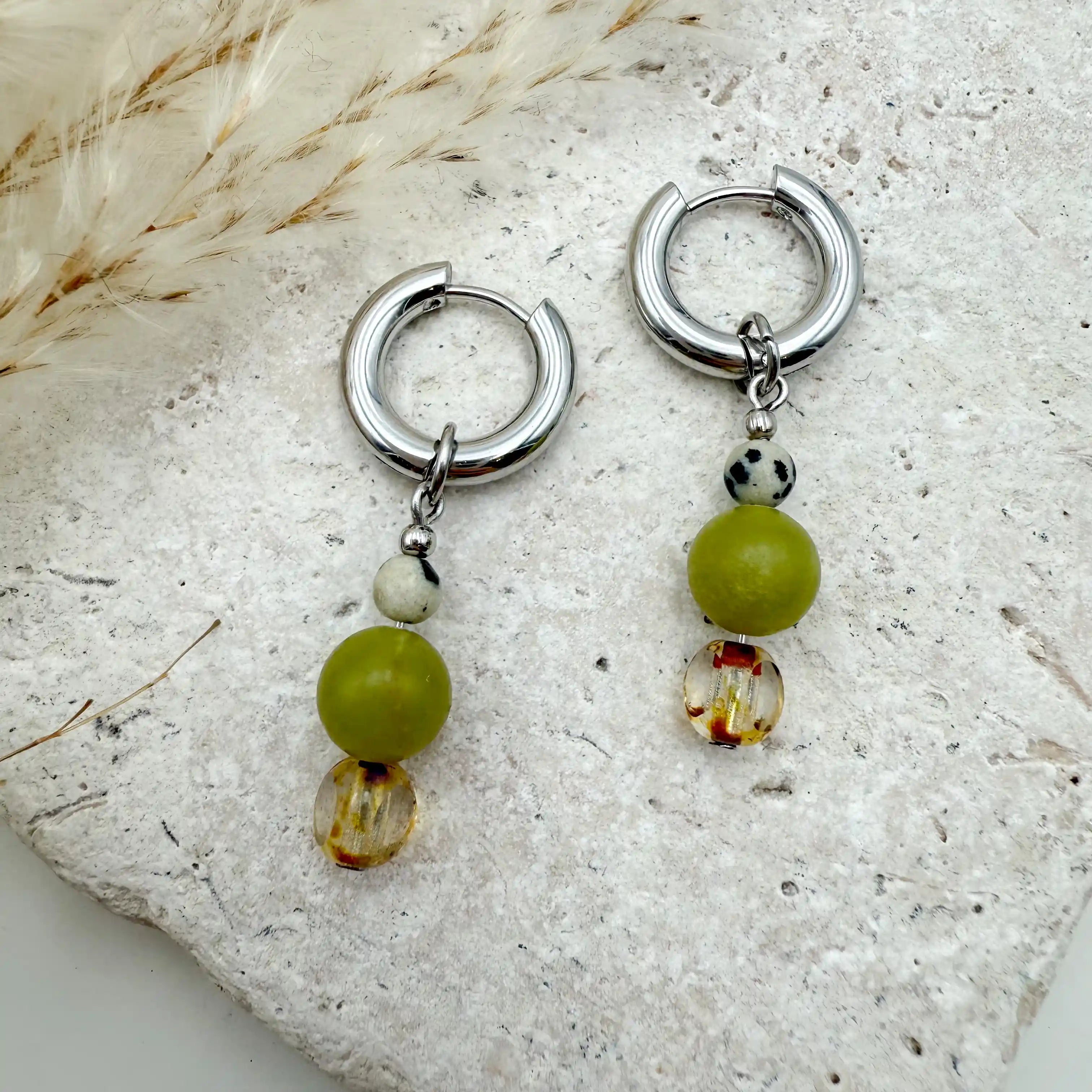 Bitte beachte: Jedes Ohrring Paar unterscheidet sich in Musterung oder Farbe des Natursteins, zudem können die Ohrringe von den Bilder in unserem Onlineshop abweichen. Jeder Ohrring ist daher ein Unikat.