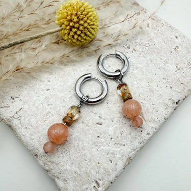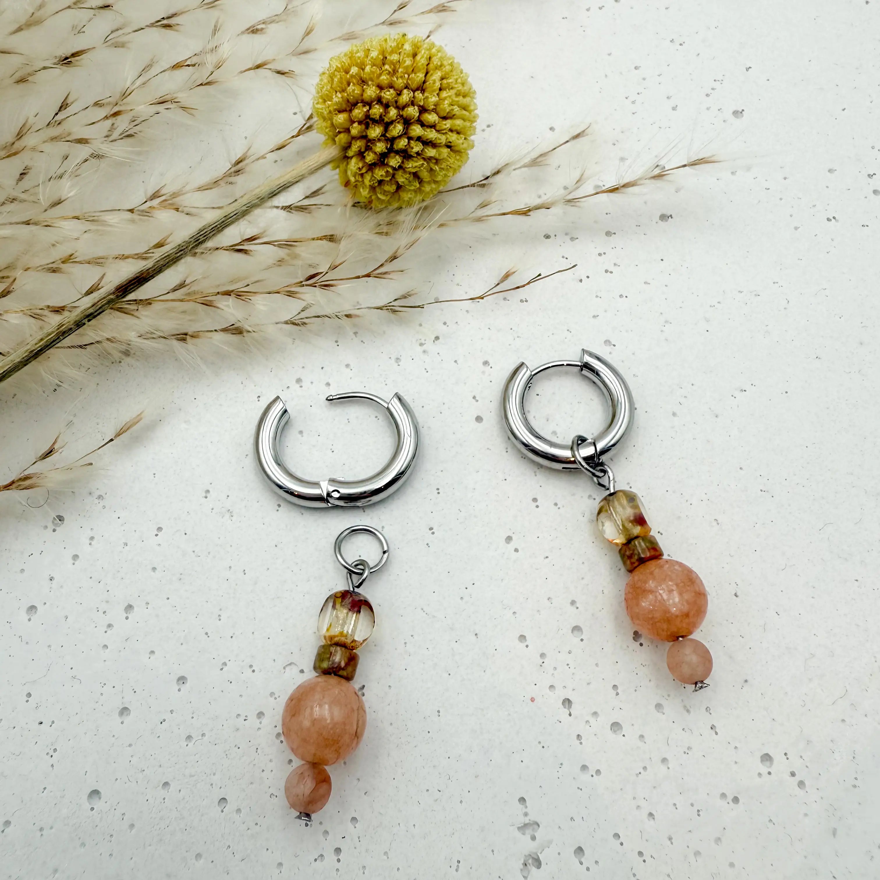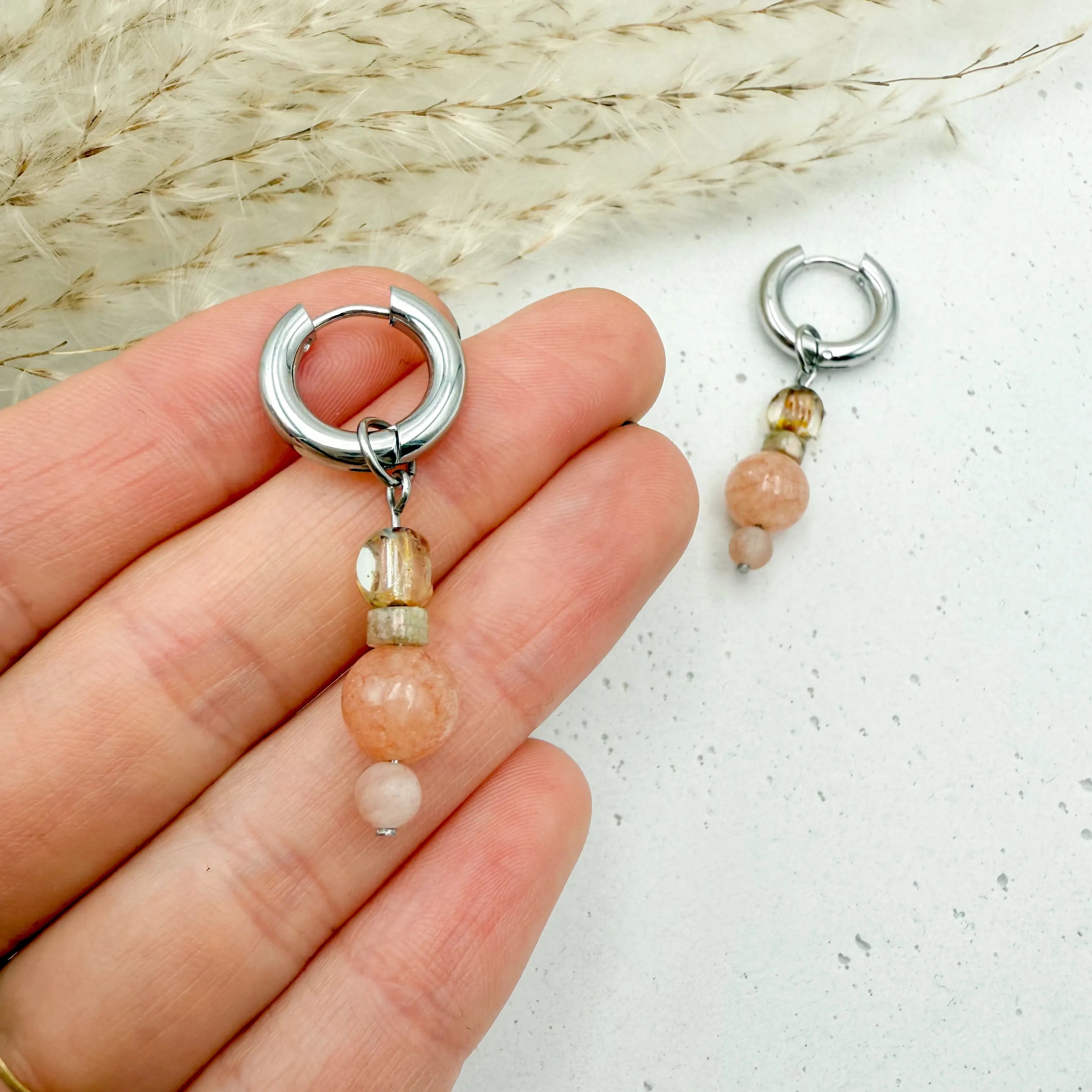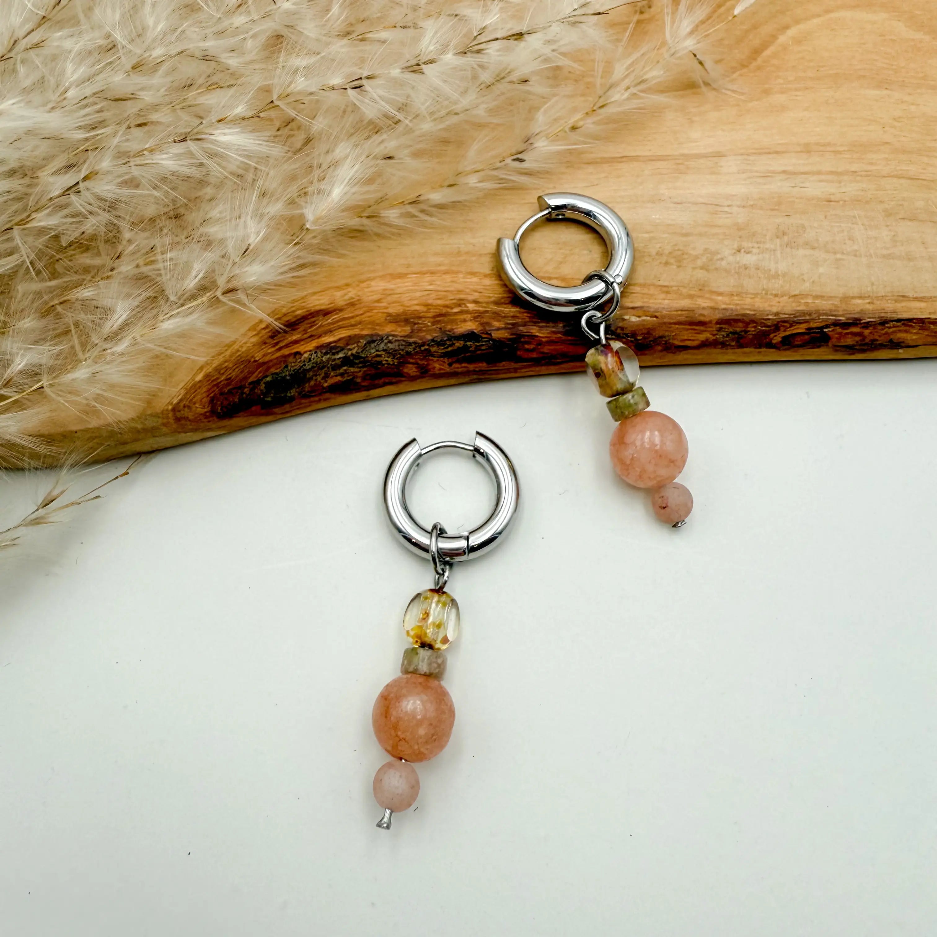 Die Naely Silber Ohrringe von Vagabundobjects vereinen minimalistisches Design mit natürlicher Farbvielfalt. Feine Natursteine in zarten Orange-, Rosa- und erdigen Tönen treffen auf hochwertigen glänzenden Edelstahl – für ein modernes, leichtes Design, das jeden Look veredelt.✨