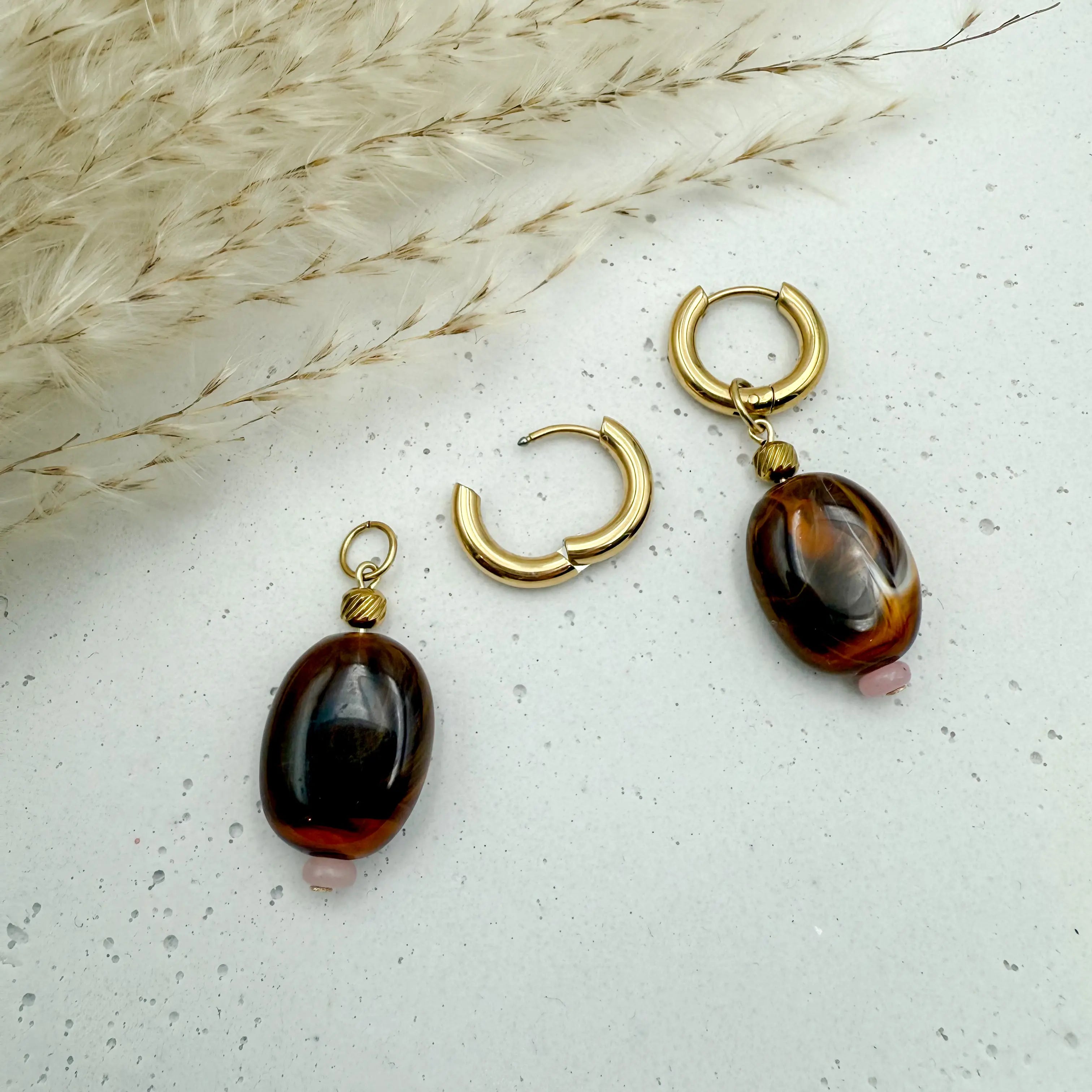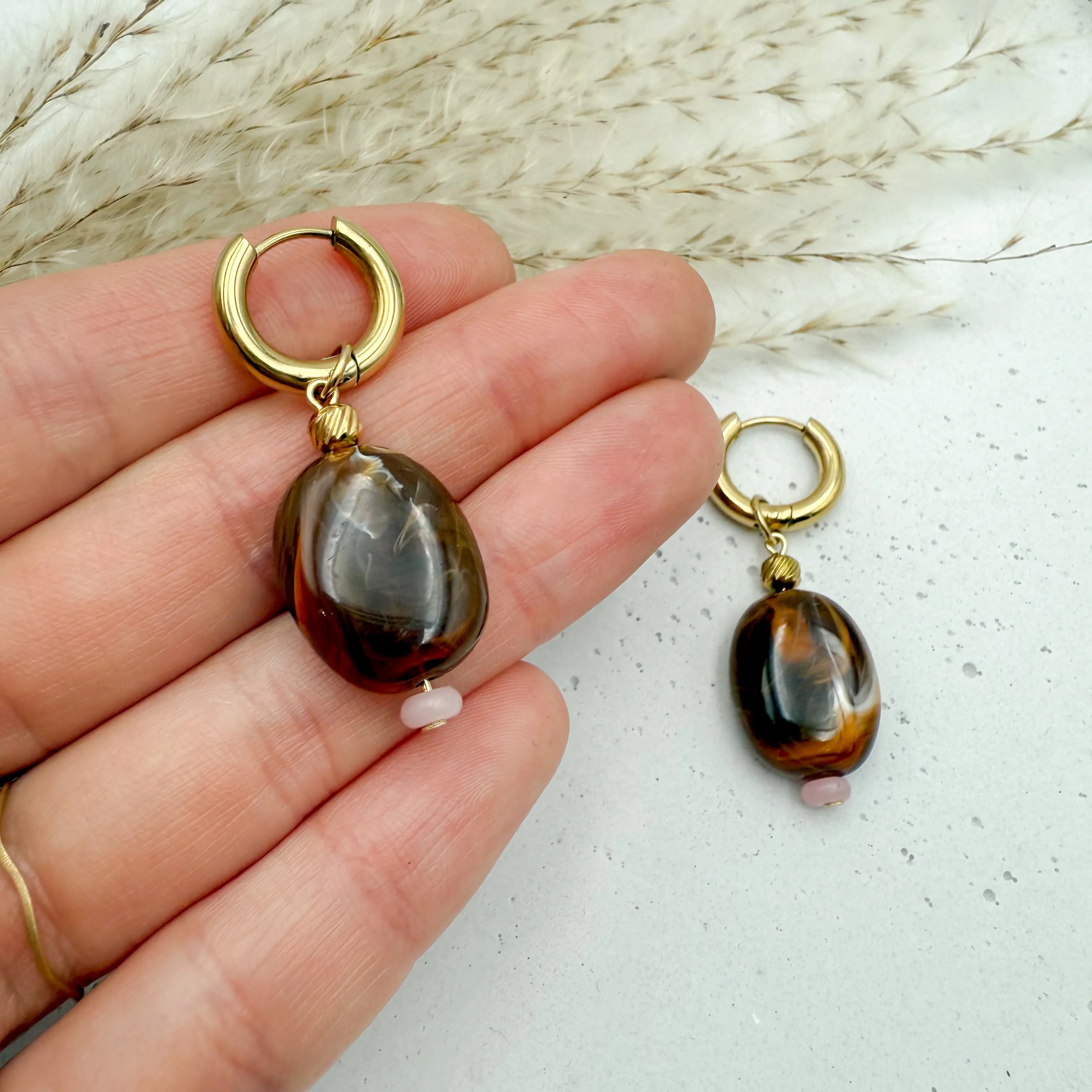 Da Natursteine echte Naturprodukte sind, kann jeder Stein in Farbe, Form und Maserung leicht abweichen. Das macht jedes Paar Orise Gold zu einem einzigartigen Unikat, das deinen persönlichen Stil unterstreicht. 🍃✨