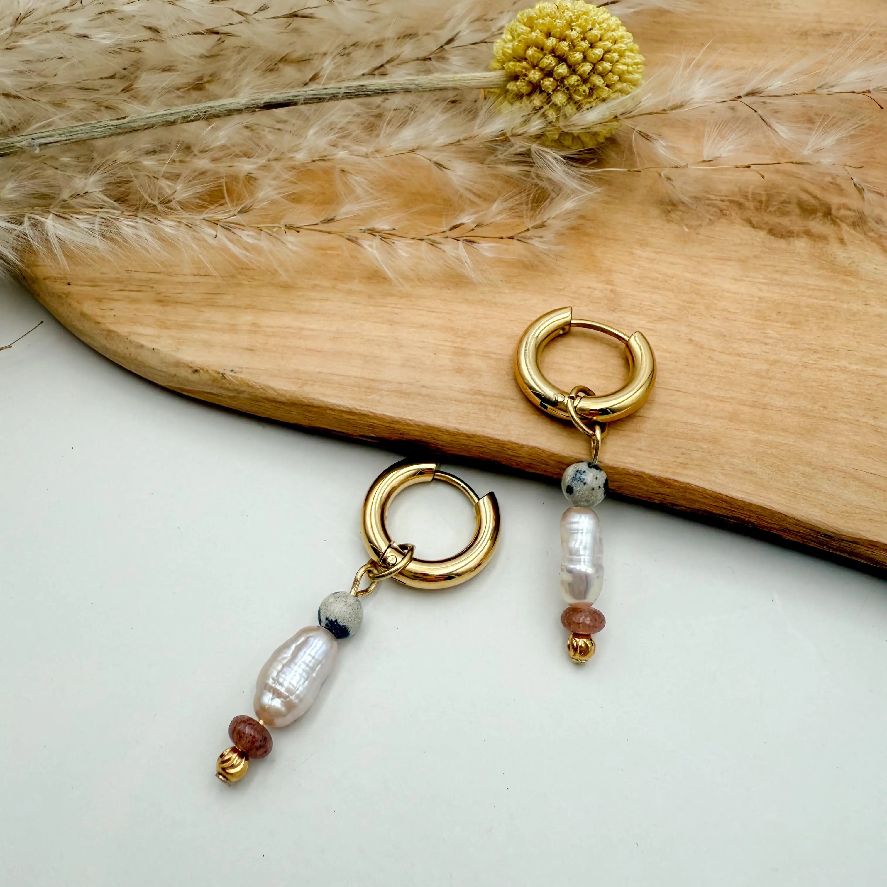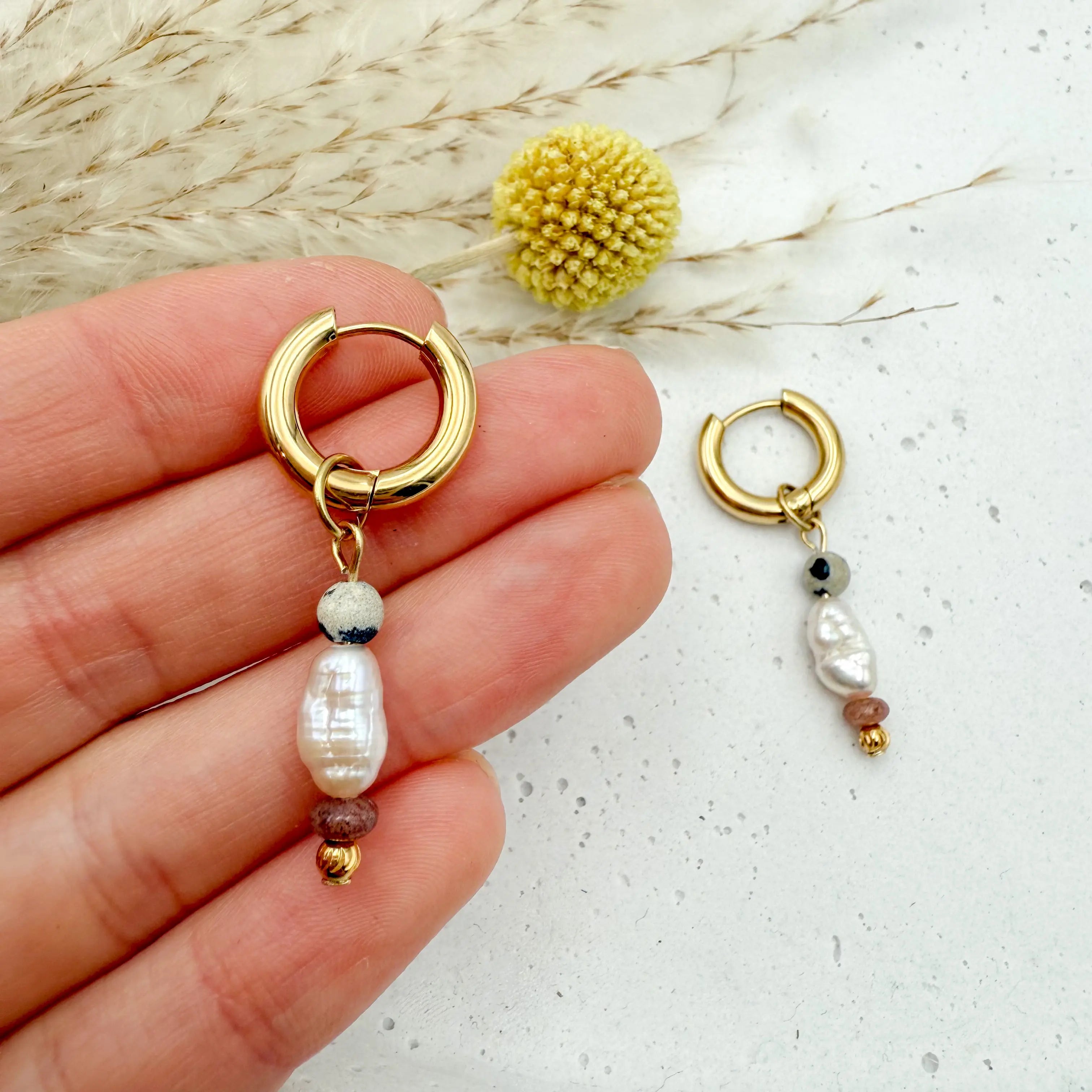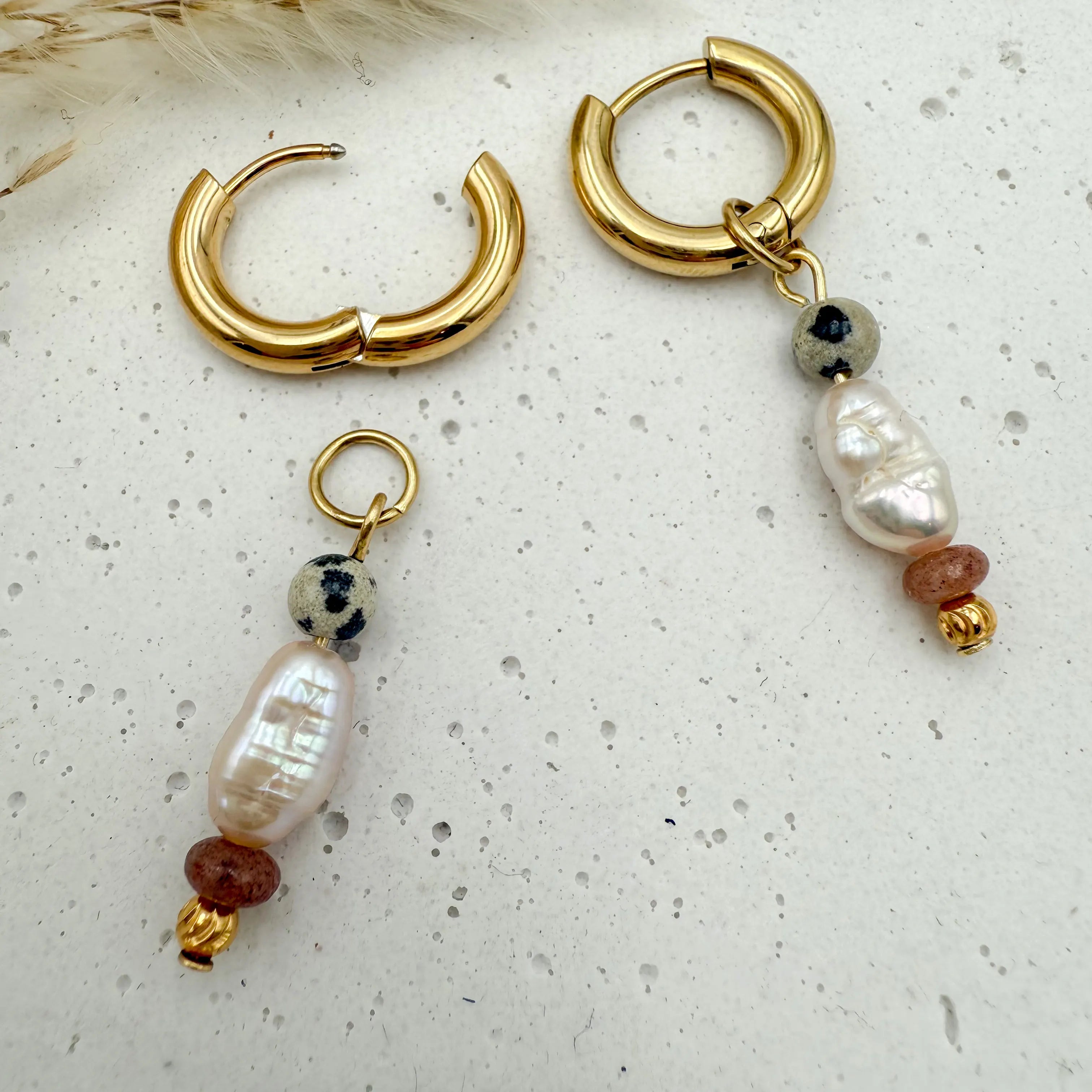 Die verwendeten Natursteine und Süßwasserperlen sind echte Naturprodukte – daher können Farben, Maserung und Form leicht vom Foto abweichen. Genau das macht jedes Paar Savia Gold zu einem echten Unikat, so besonders wie du selbst. 🤍✨
