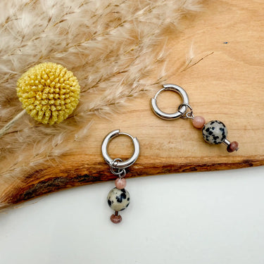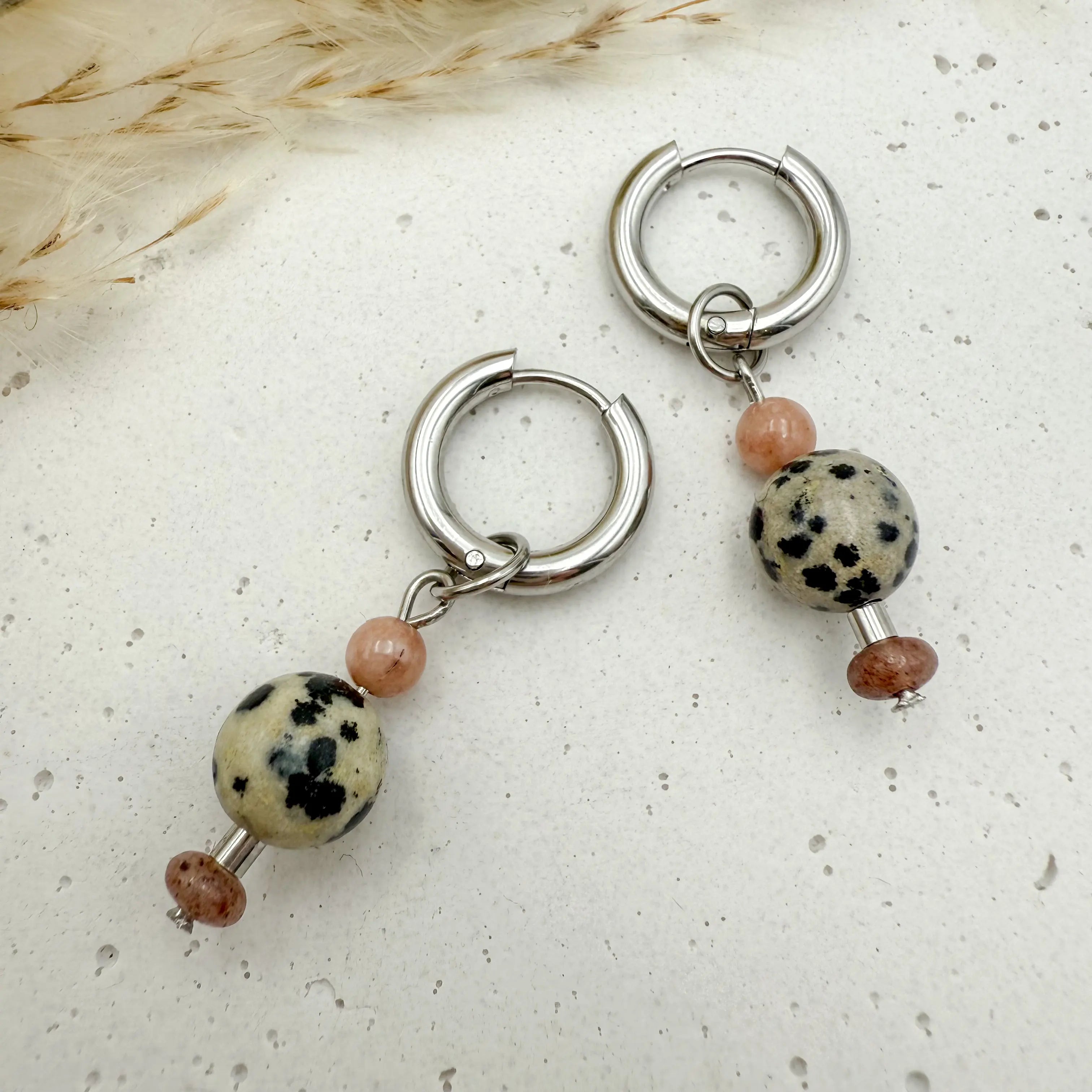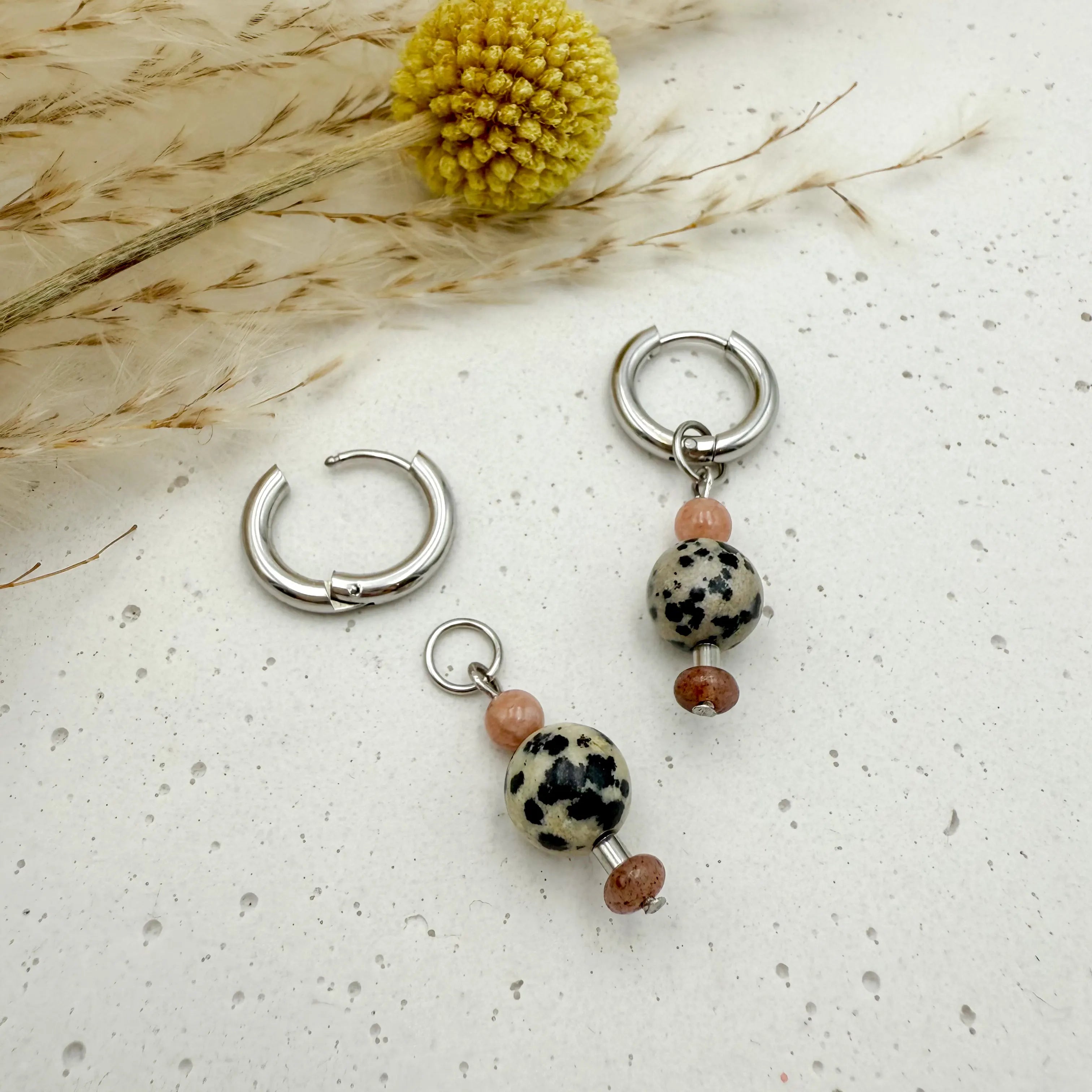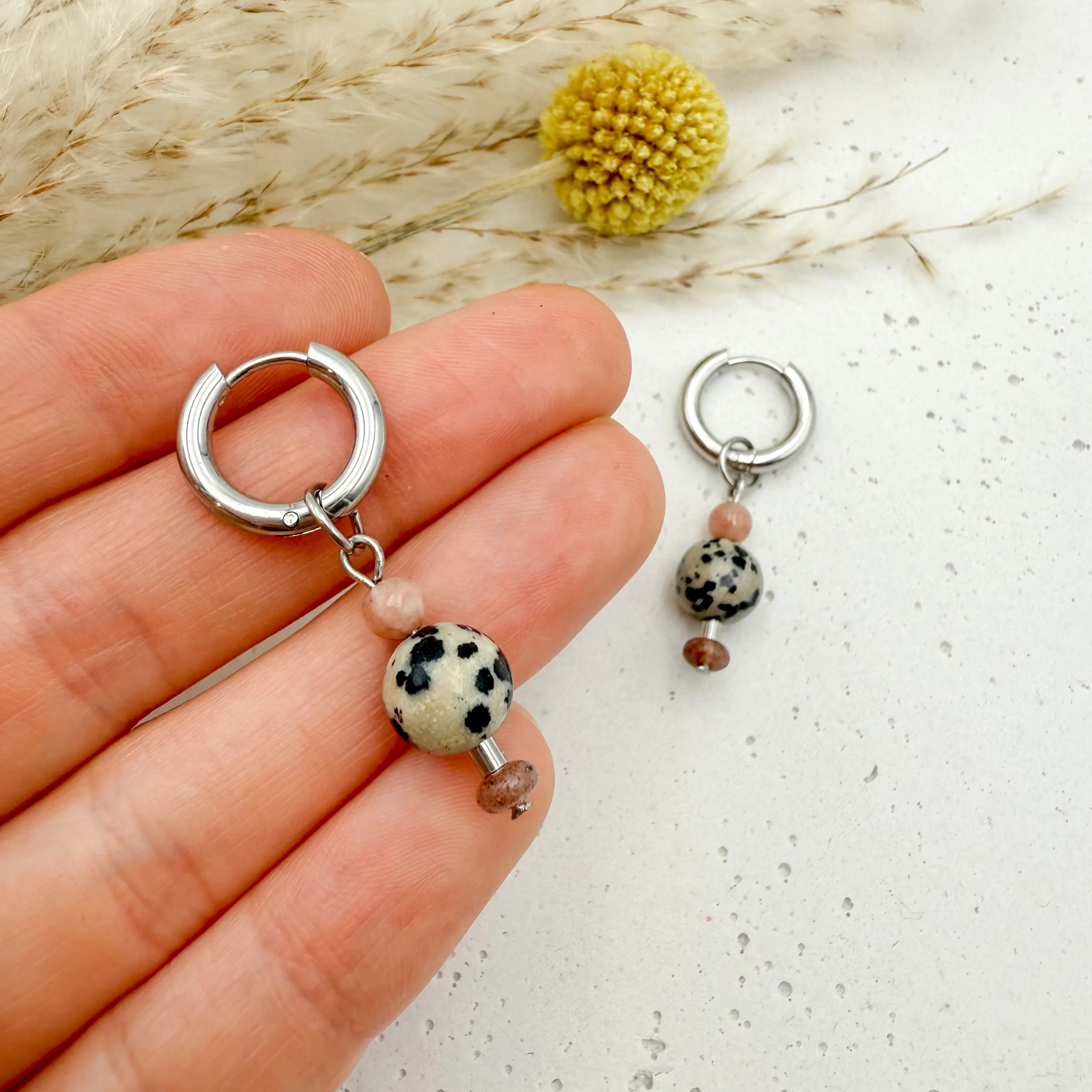 Die elegante Silber-Creole sorgt für einen modernen Look, während die hängenden Natursteine ein sanftes Farbspiel erzeugen – ideal für jeden Tag oder besondere Momente.