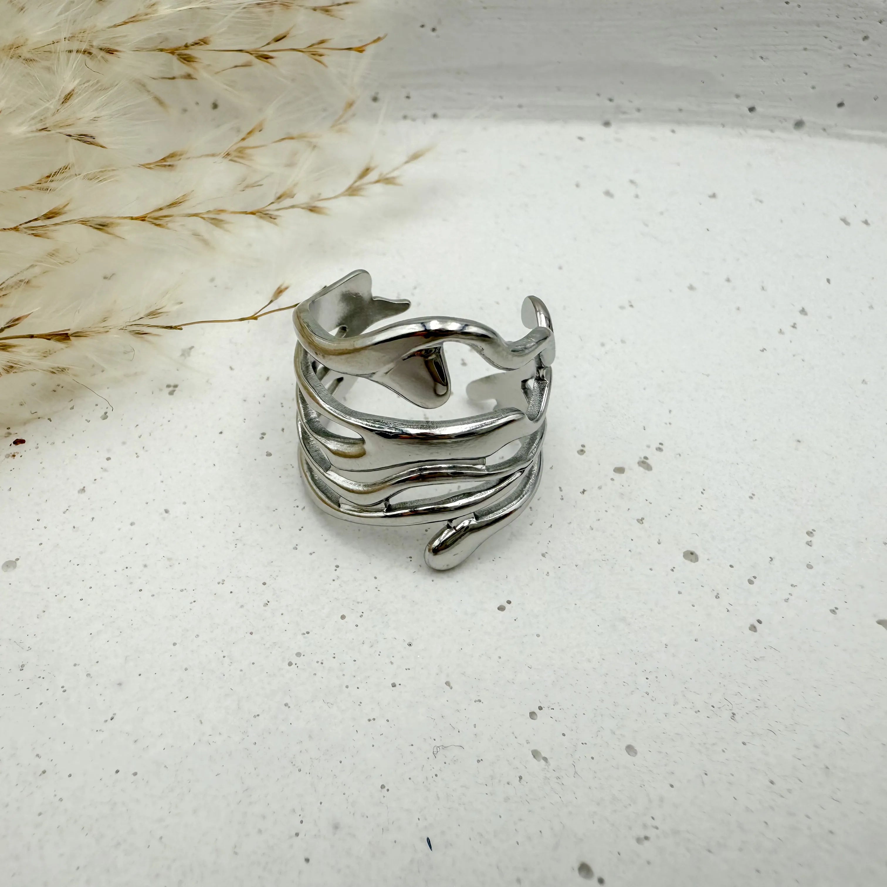 Edelstahl ist das perfekte Material für silberfarbenen Schmuck. Er ist robust, langlebig und pflegeleicht. Unsere silbernen Ringe behalten ihren Glanz und ihre Form – auch bei regelmäßigem Tragen. So wird aus einem Ring ein verlässlicher Begleiter im Alltag.
