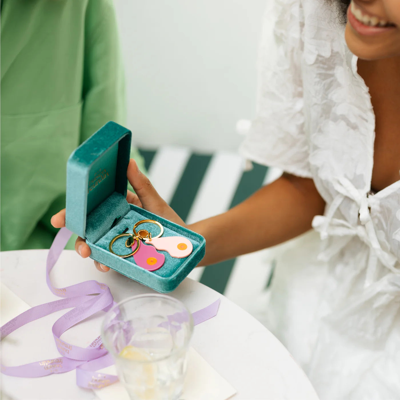 Das Schlüsselanhänger-Set Busenfreundin mit wunderschöner Schmuckbox ist das perfekte Accessoire für dich und deine Busenfreundin.