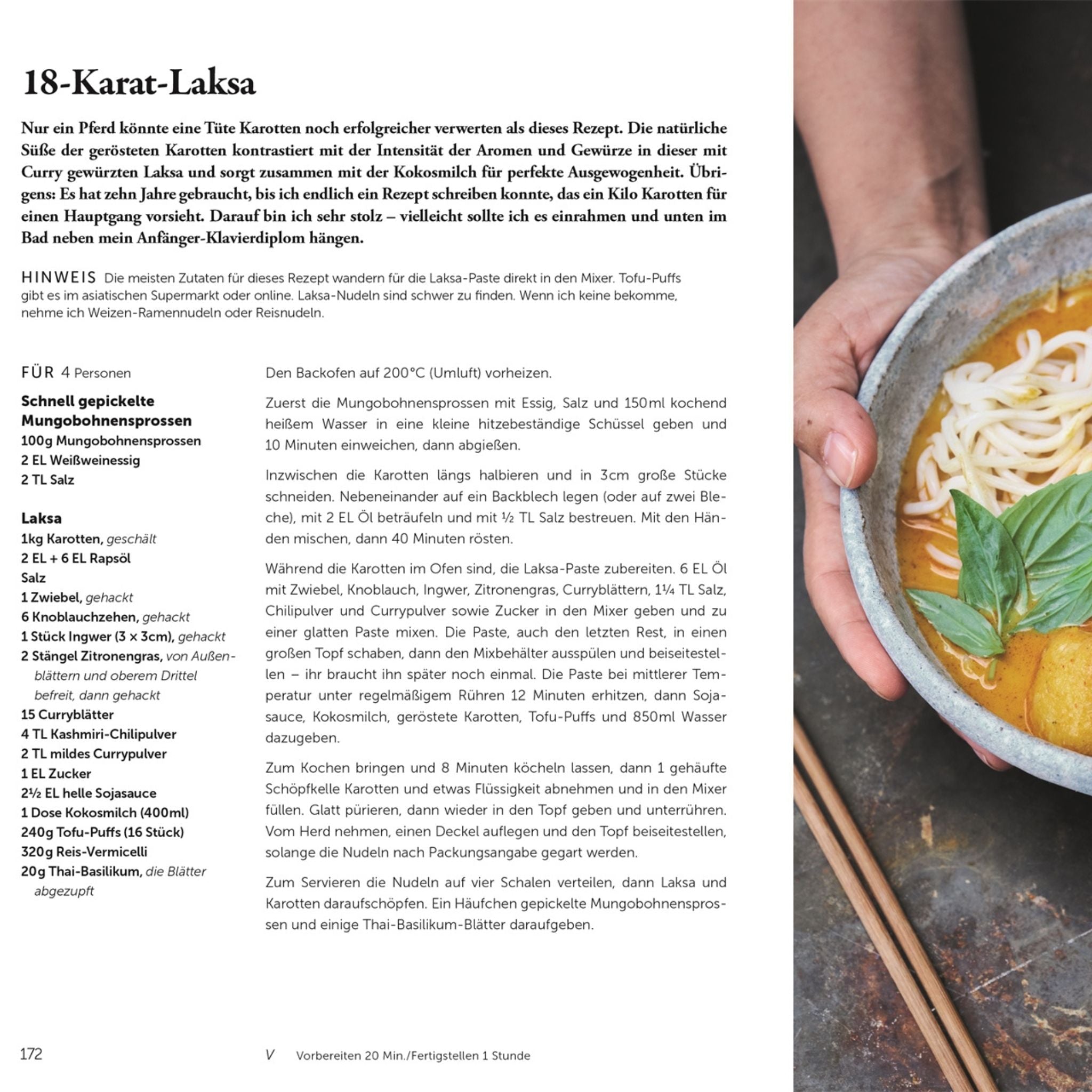Meera Sodha verbindet ihre Leidenschaft für gemüsebasierte Wohlfühlküche mit alltagsnahen Rezepten, die einfach umzusetzen sind und dennoch voller Aromen stecken. Ob Kimchi-Tomaten-Spaghetti 🍝, gebratene Auberginen in Satay-Sauce 🍆 oder Butter-Paneer aus dem Ofen 🧀 – jedes Gericht ist eine Einladung zum Genießen und Teilen.