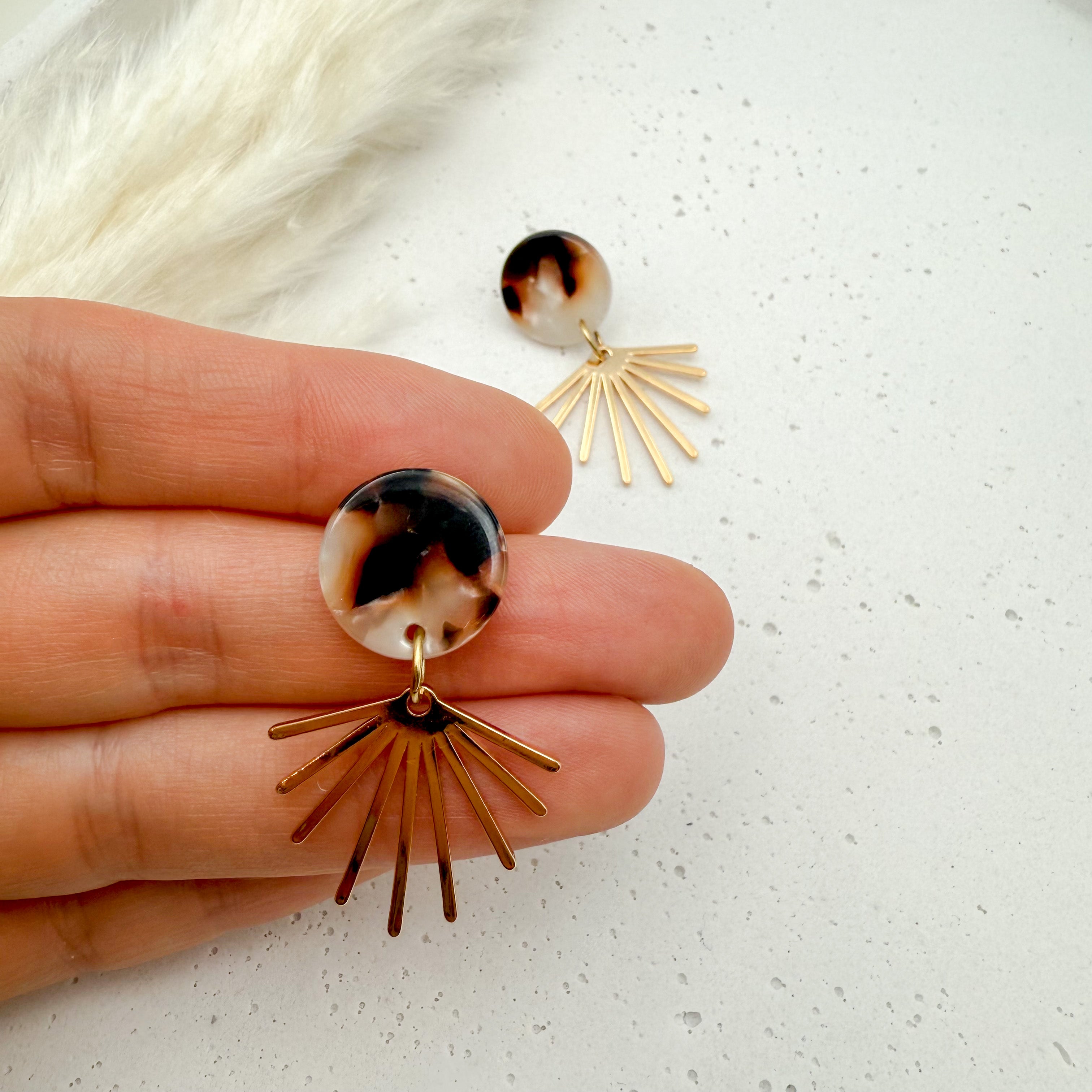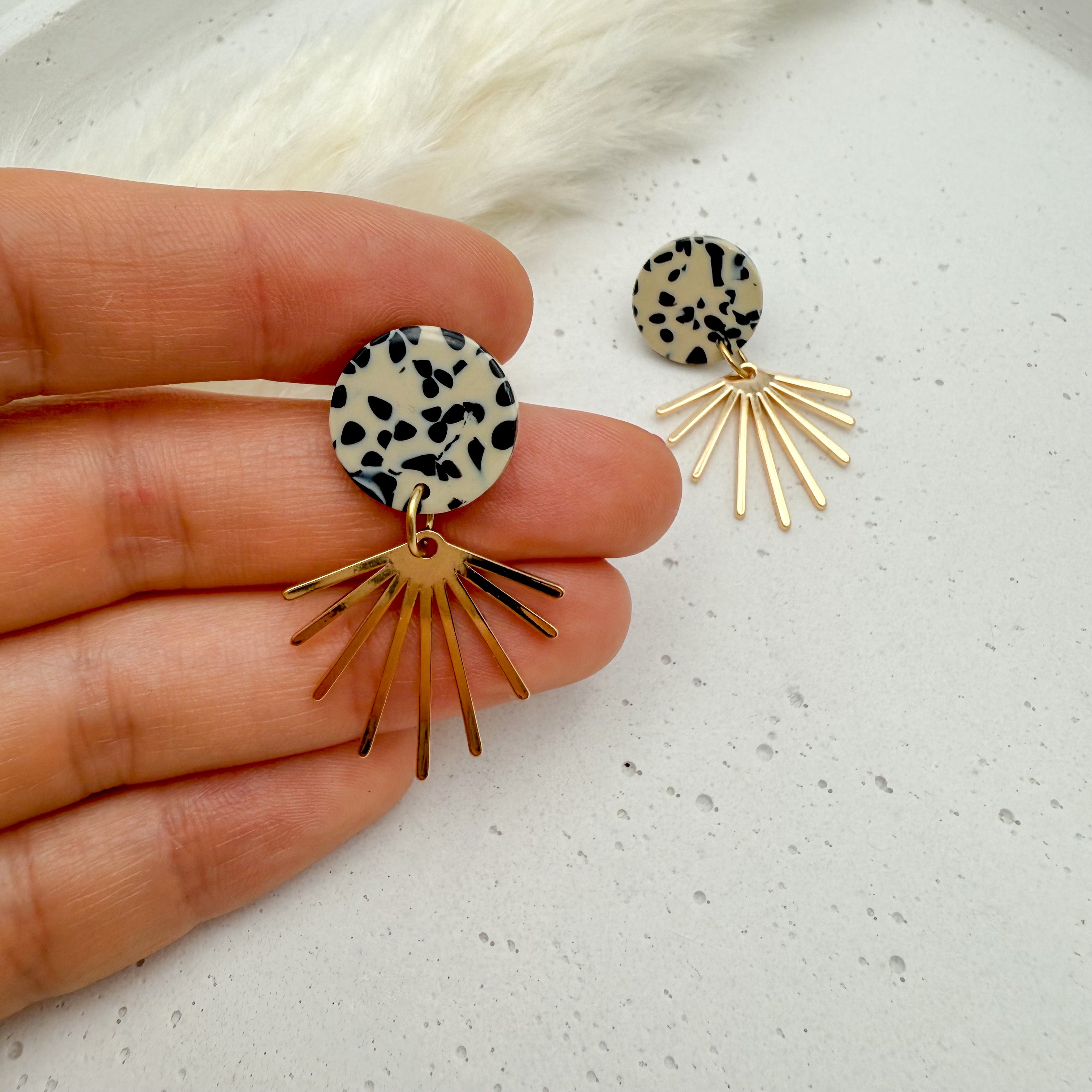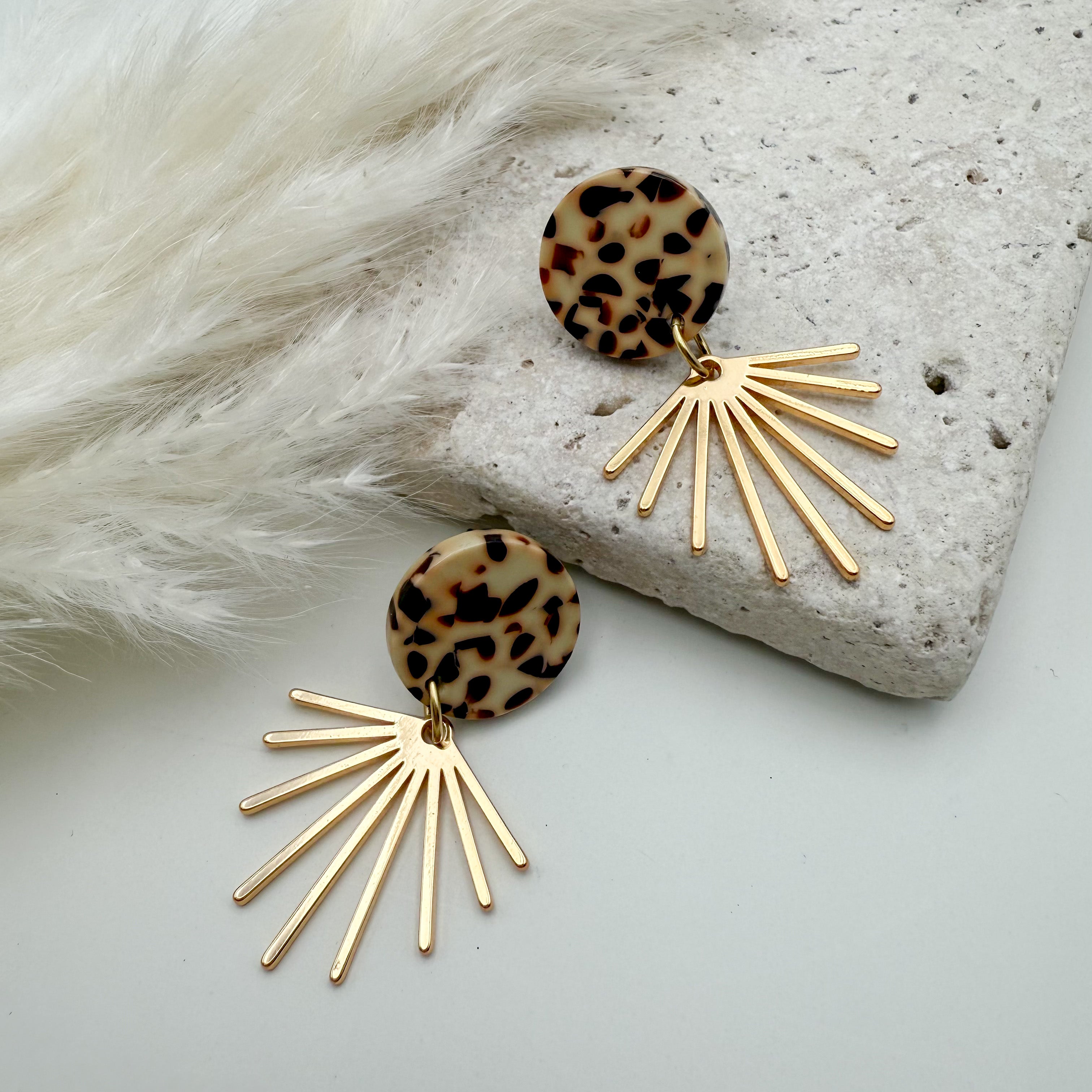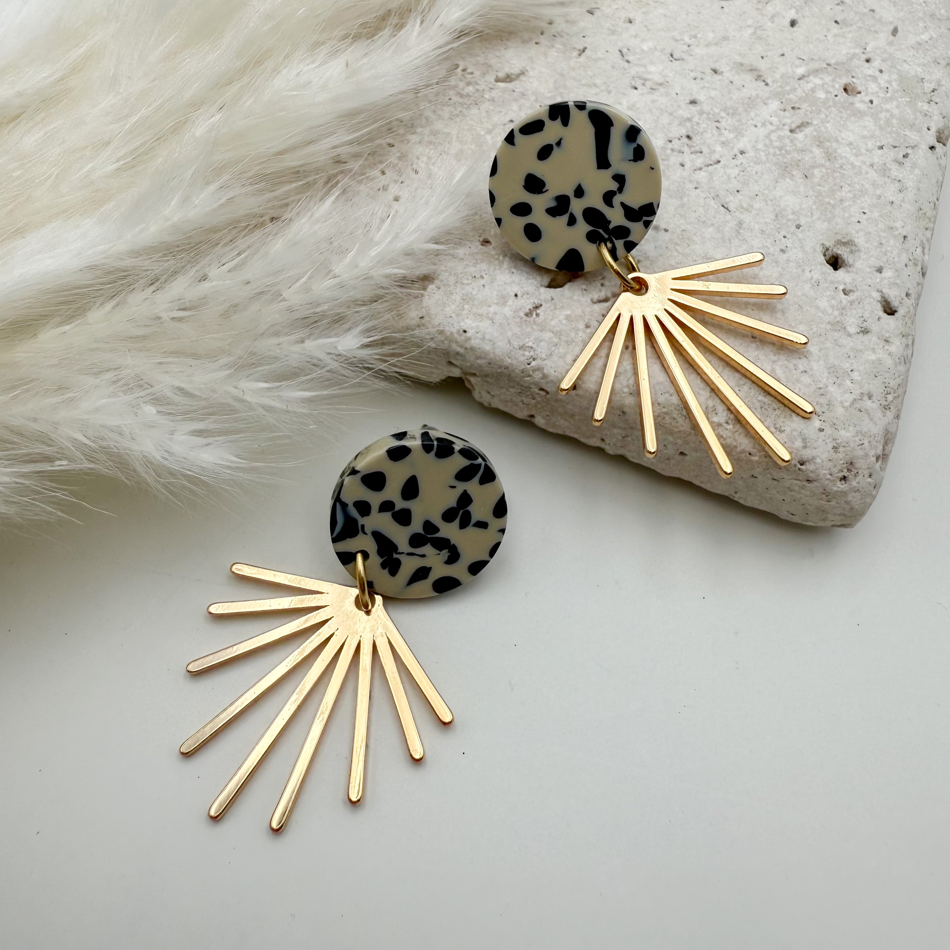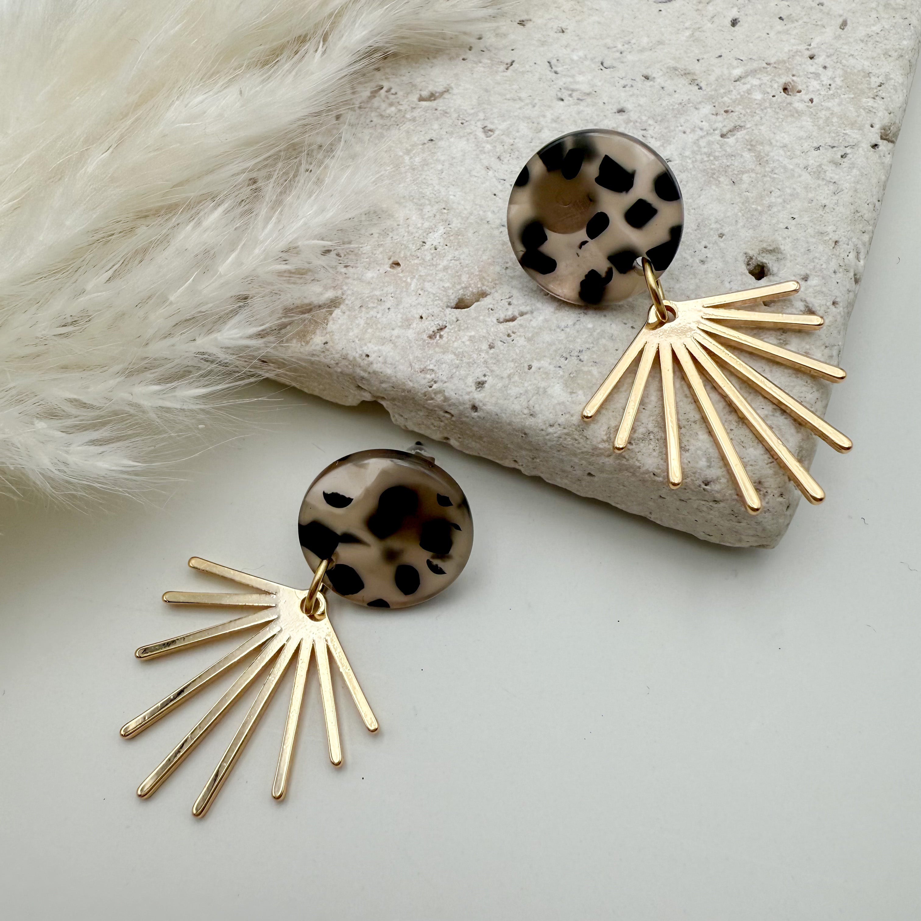 Stilvolle Ohrstecker Indi mit Kopfteil aus Acetat oder Polymer Clay & Anhänger aus vergoldetem Messing von Vagabundobjects.