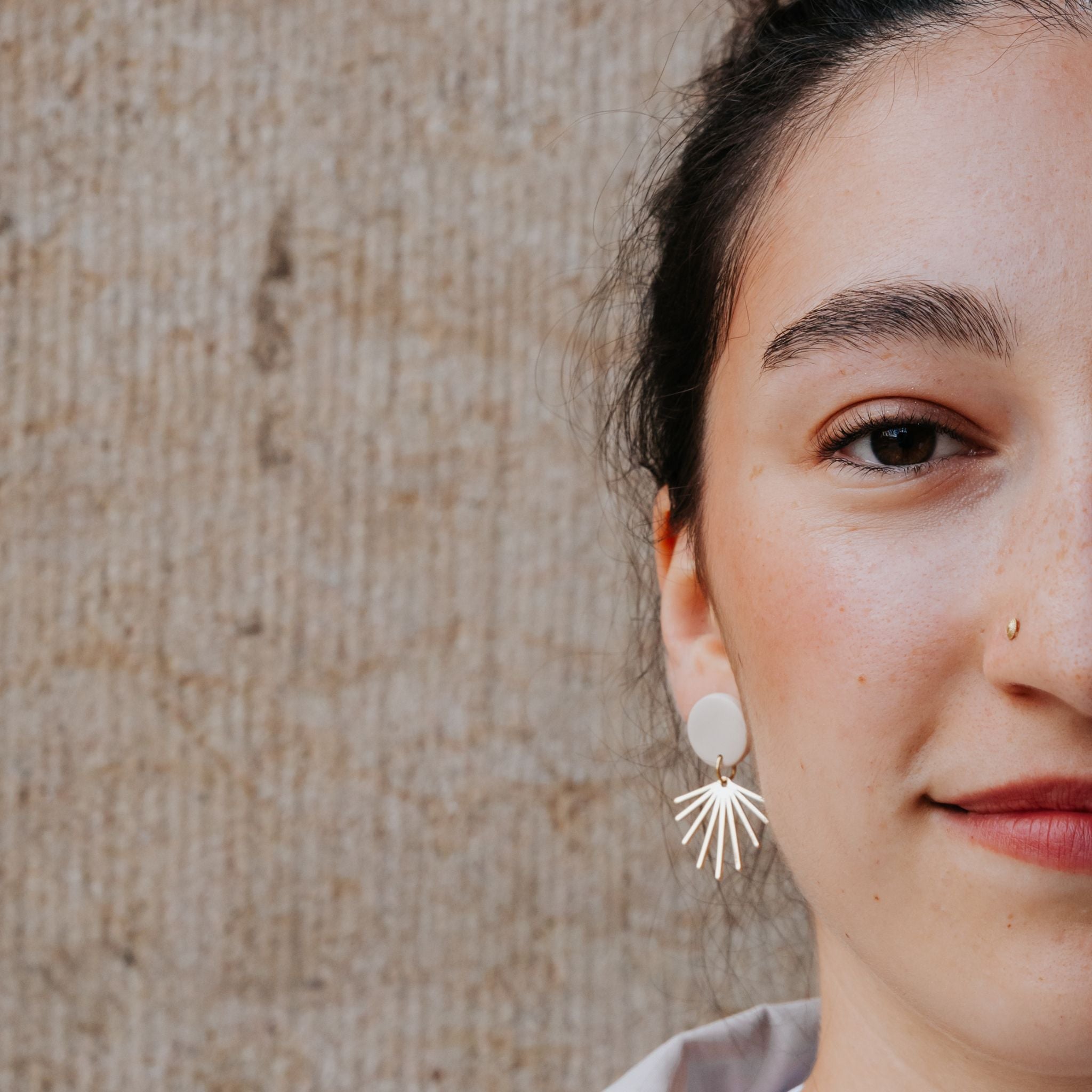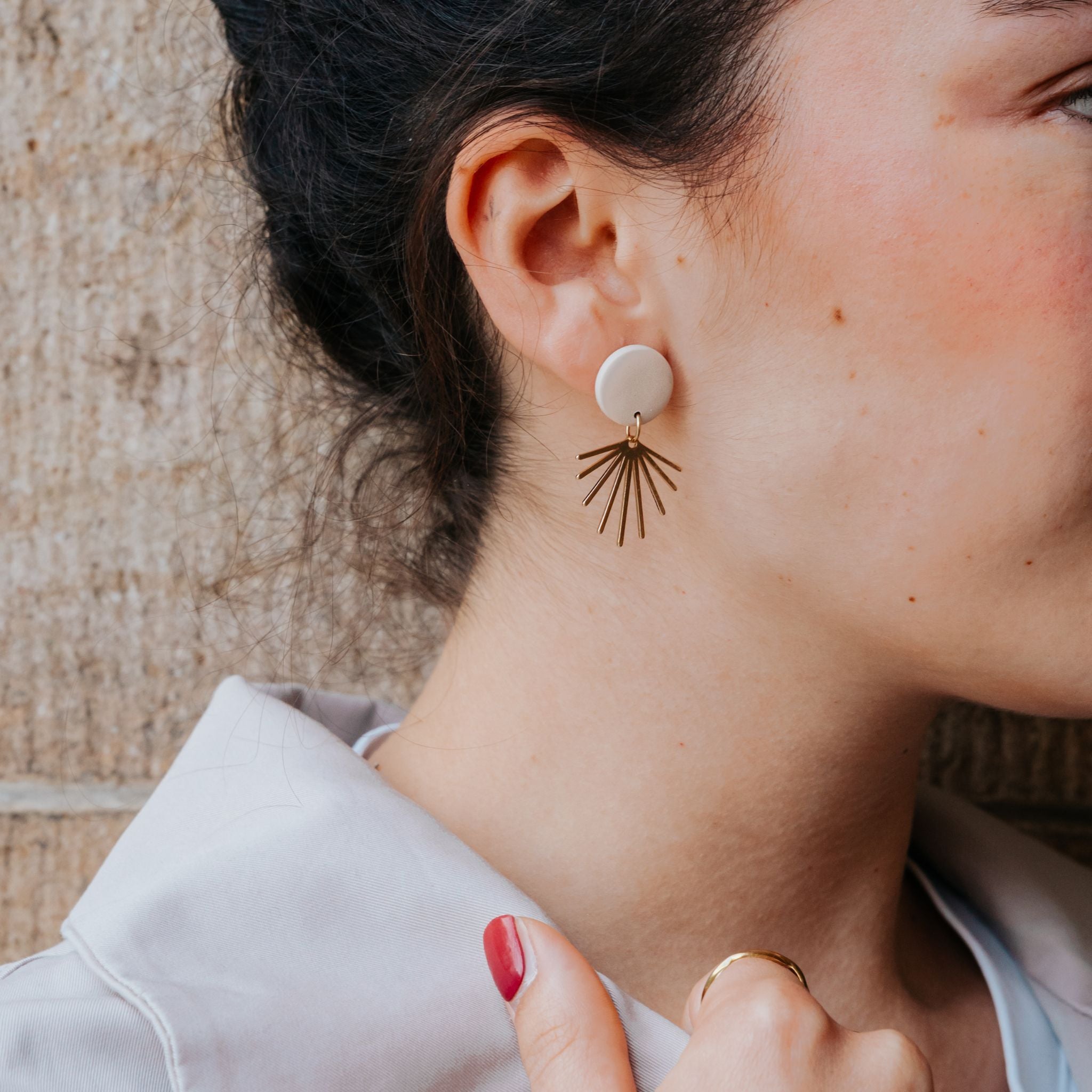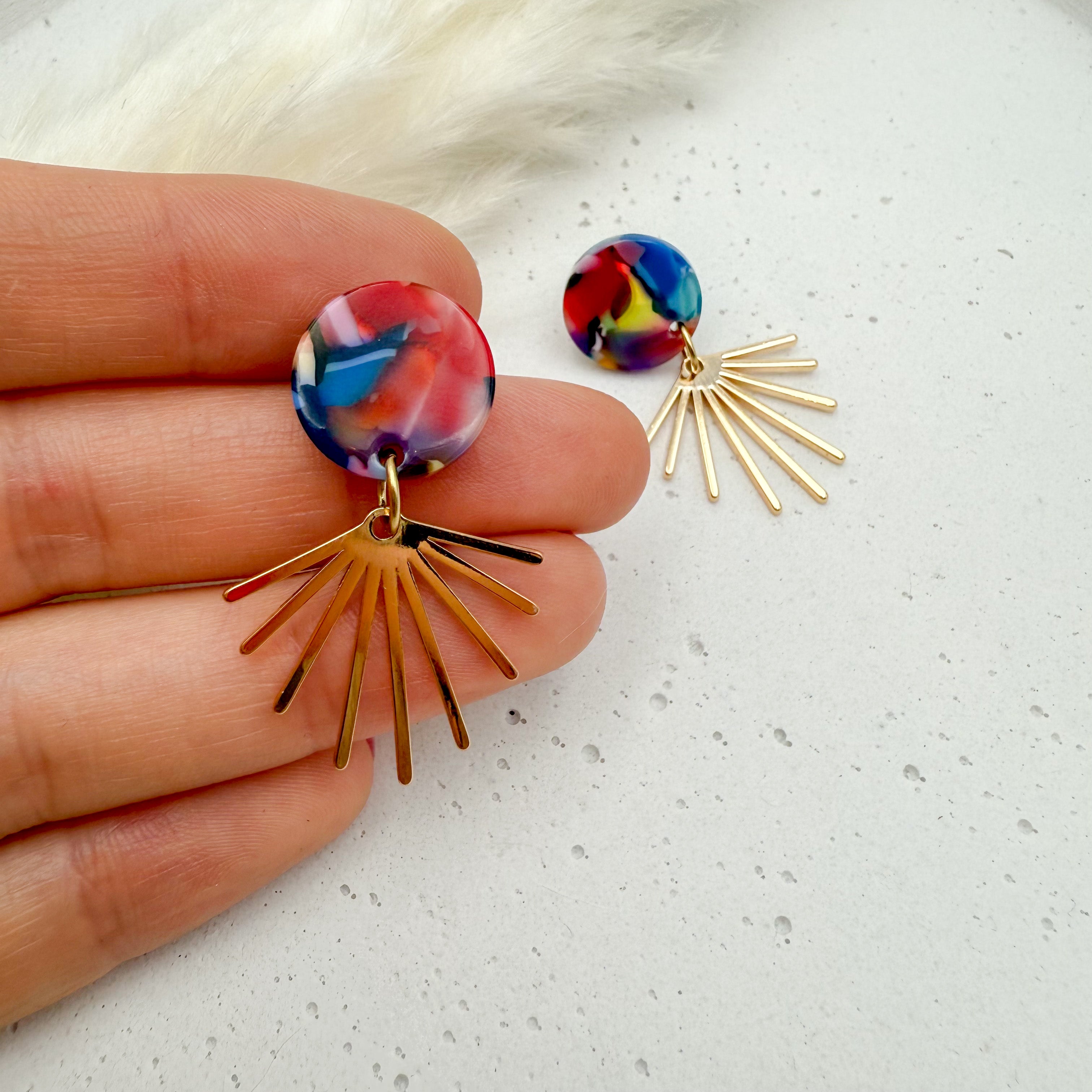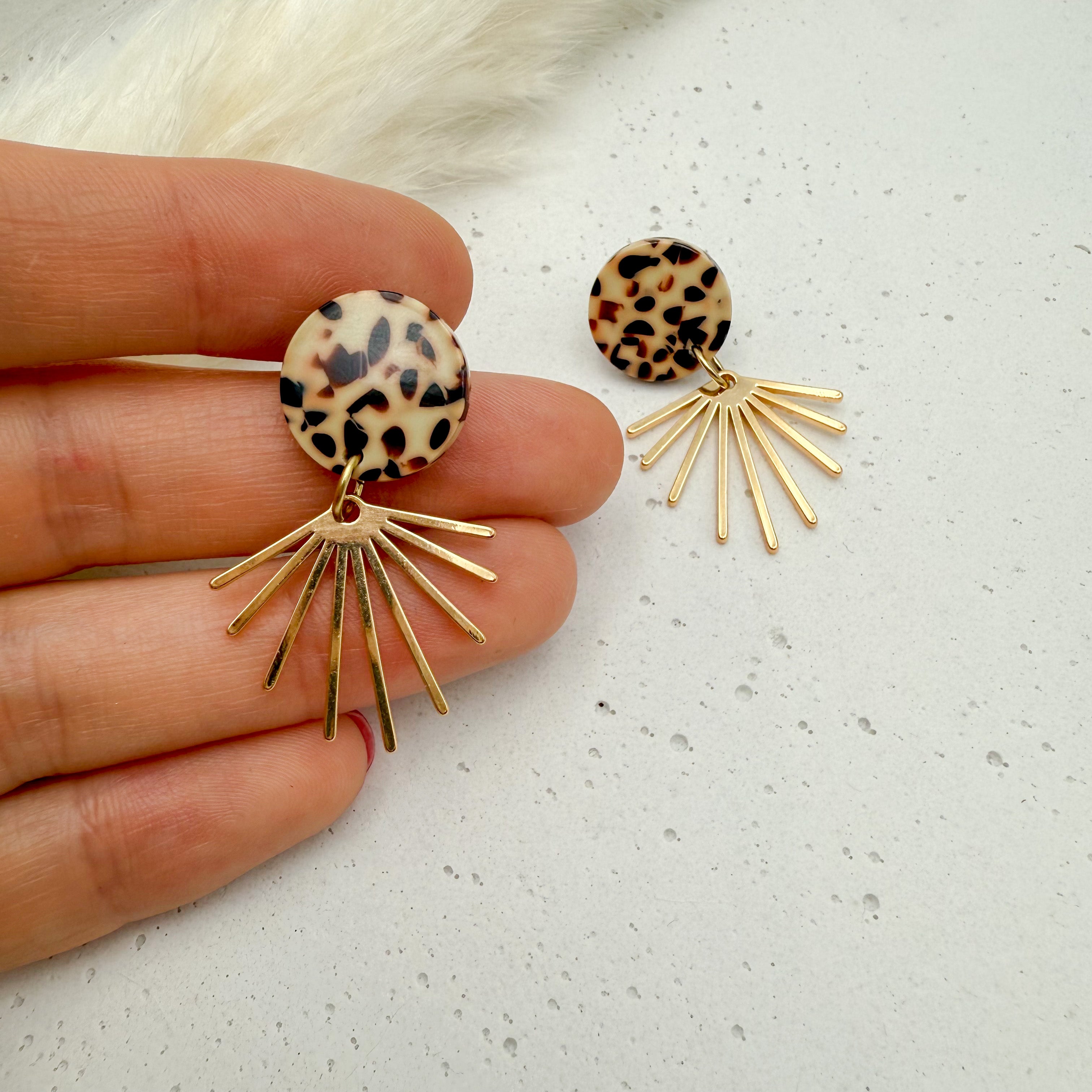 Stilvolle Ohrstecker Indi mit Kopfteil aus Acetat oder Polymer Clay & Anhänger aus vergoldetem Messing von Vagabundobjects.