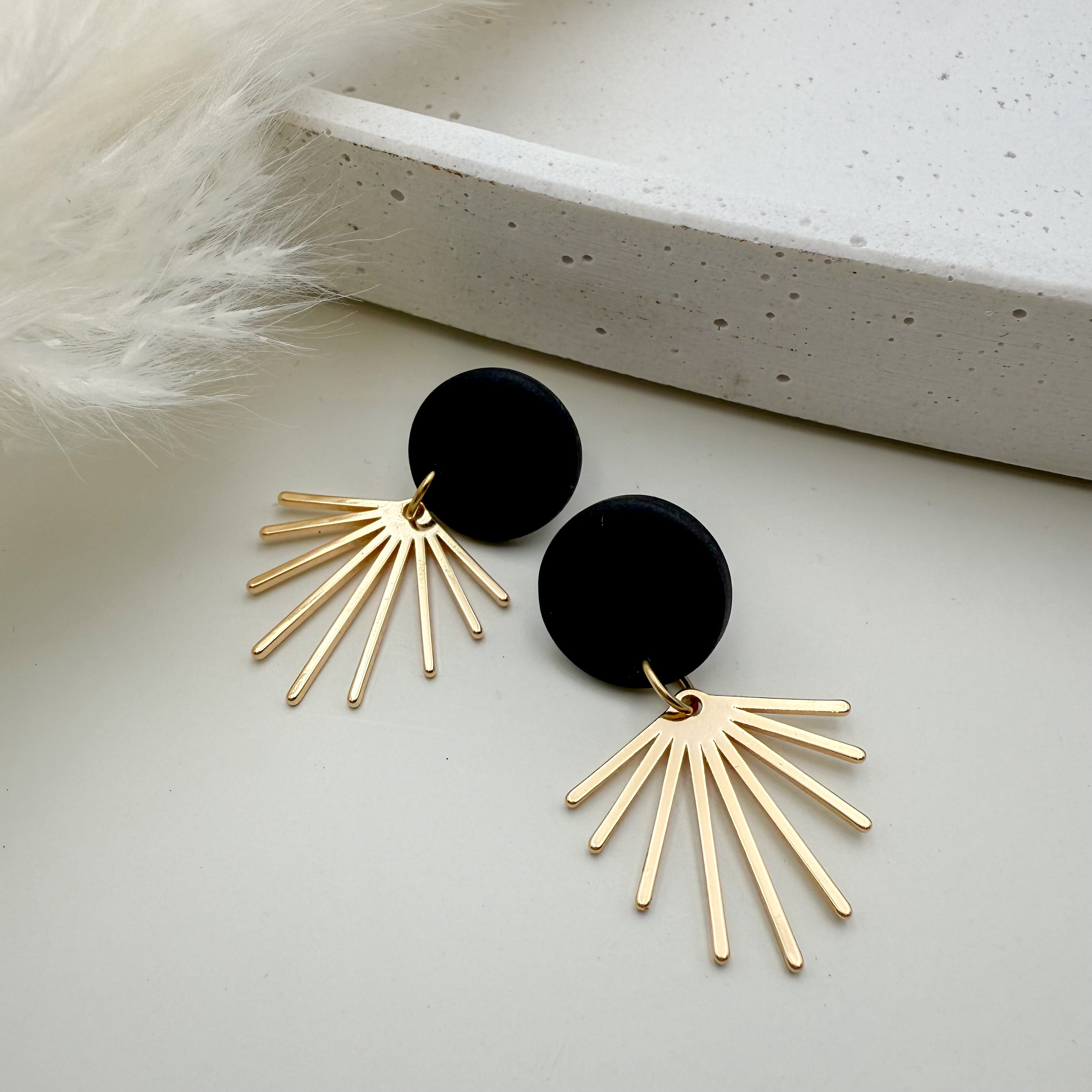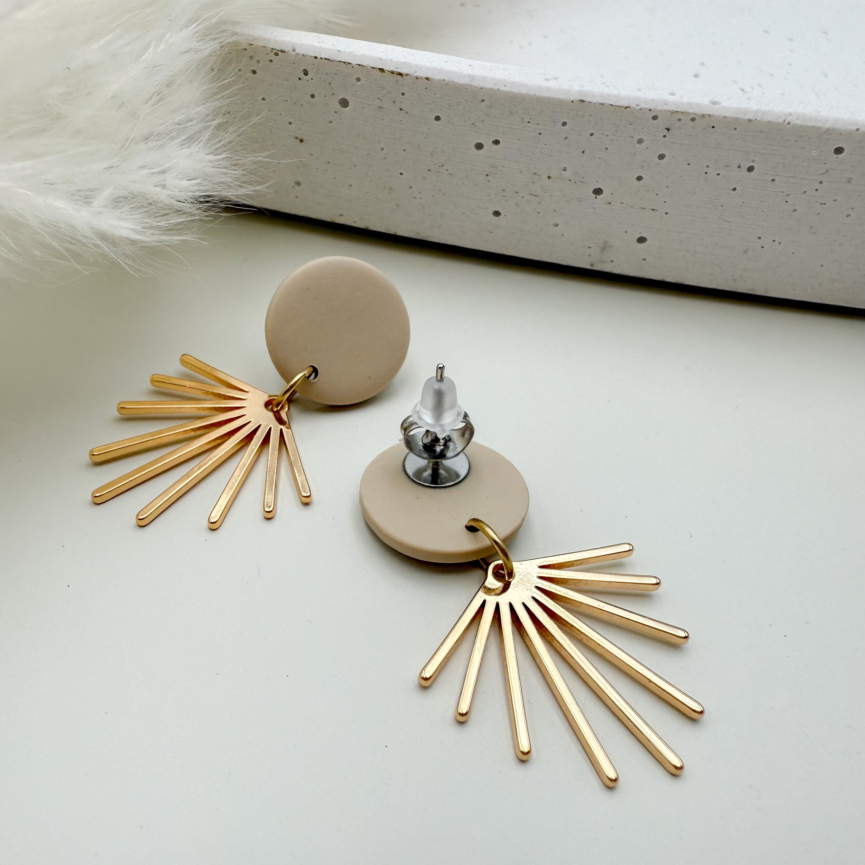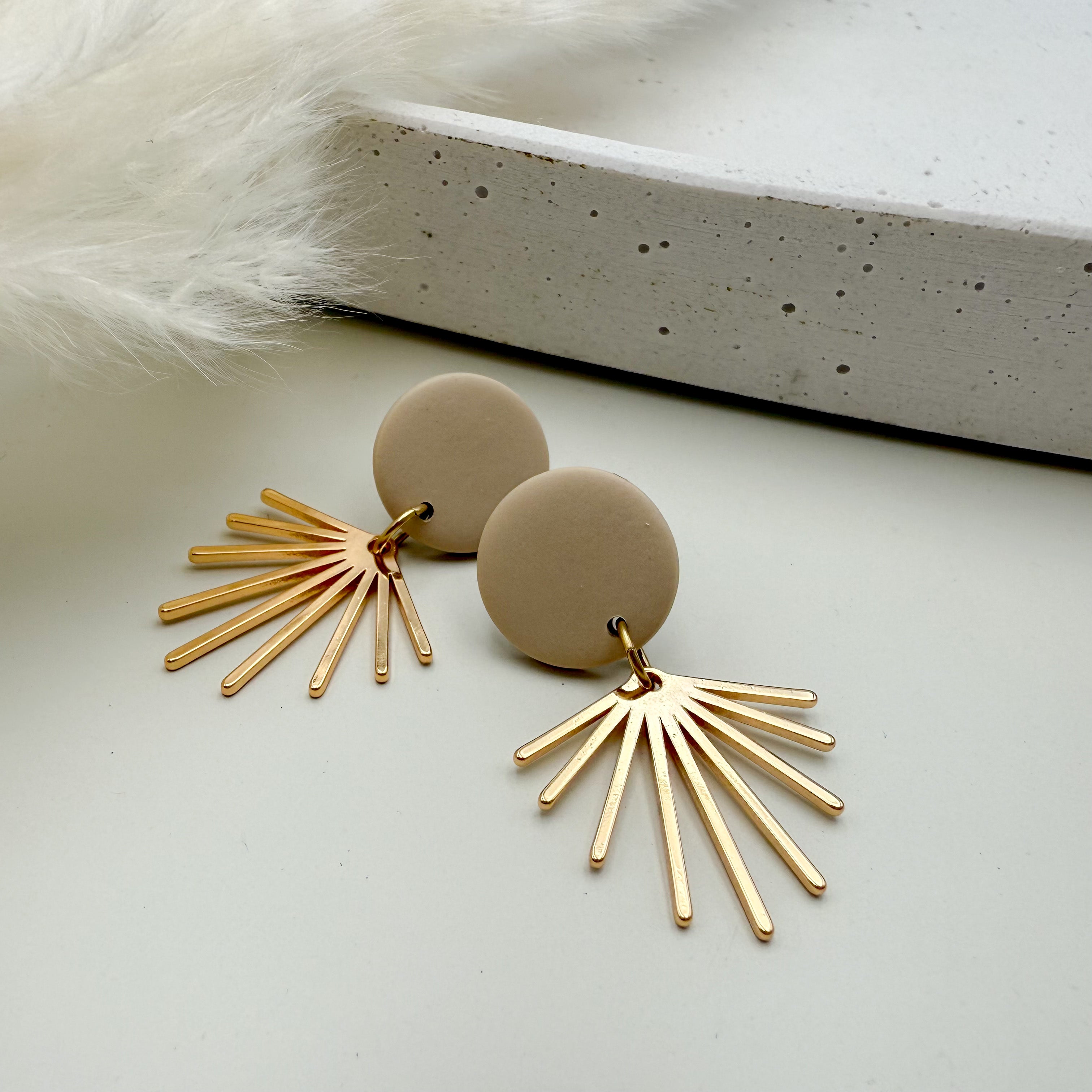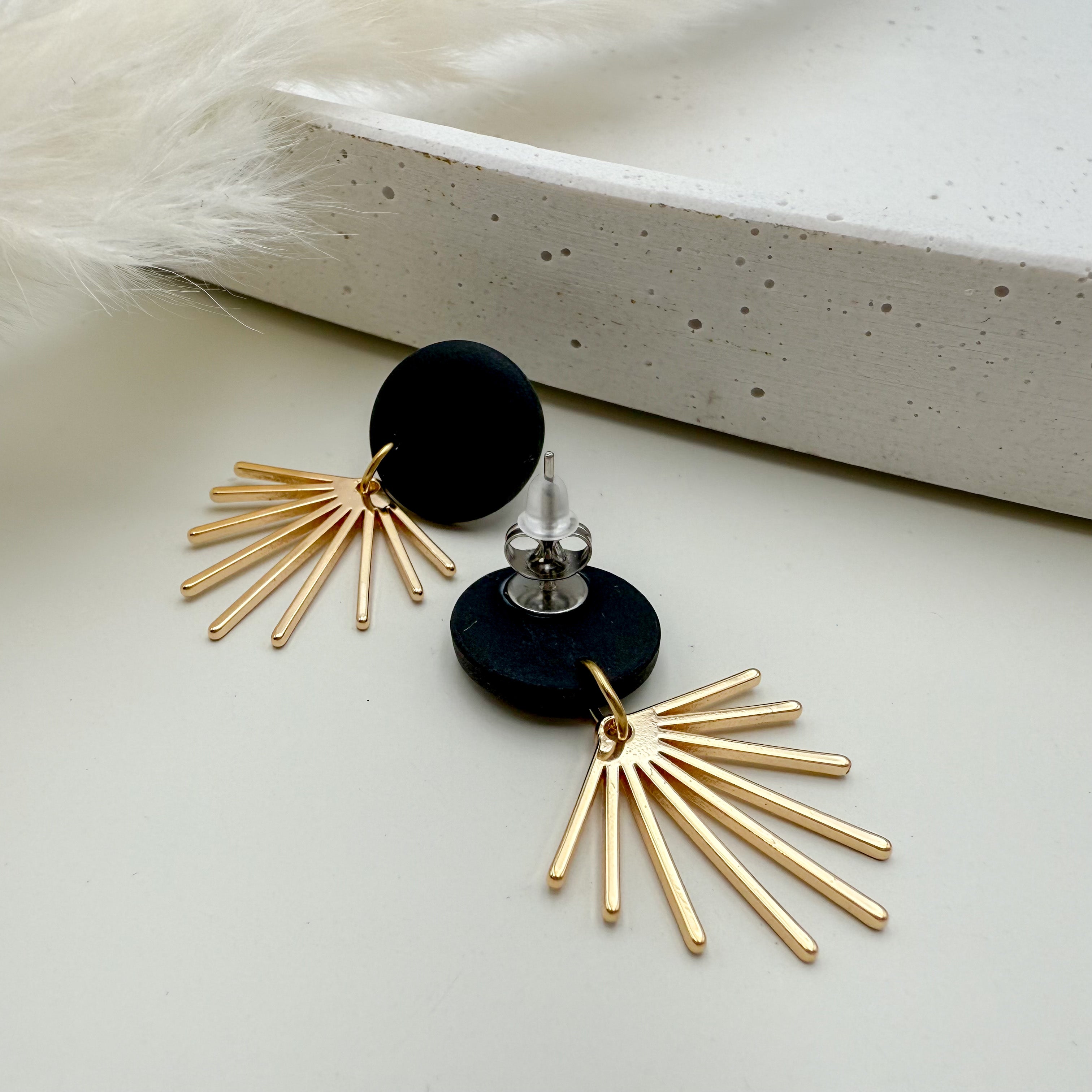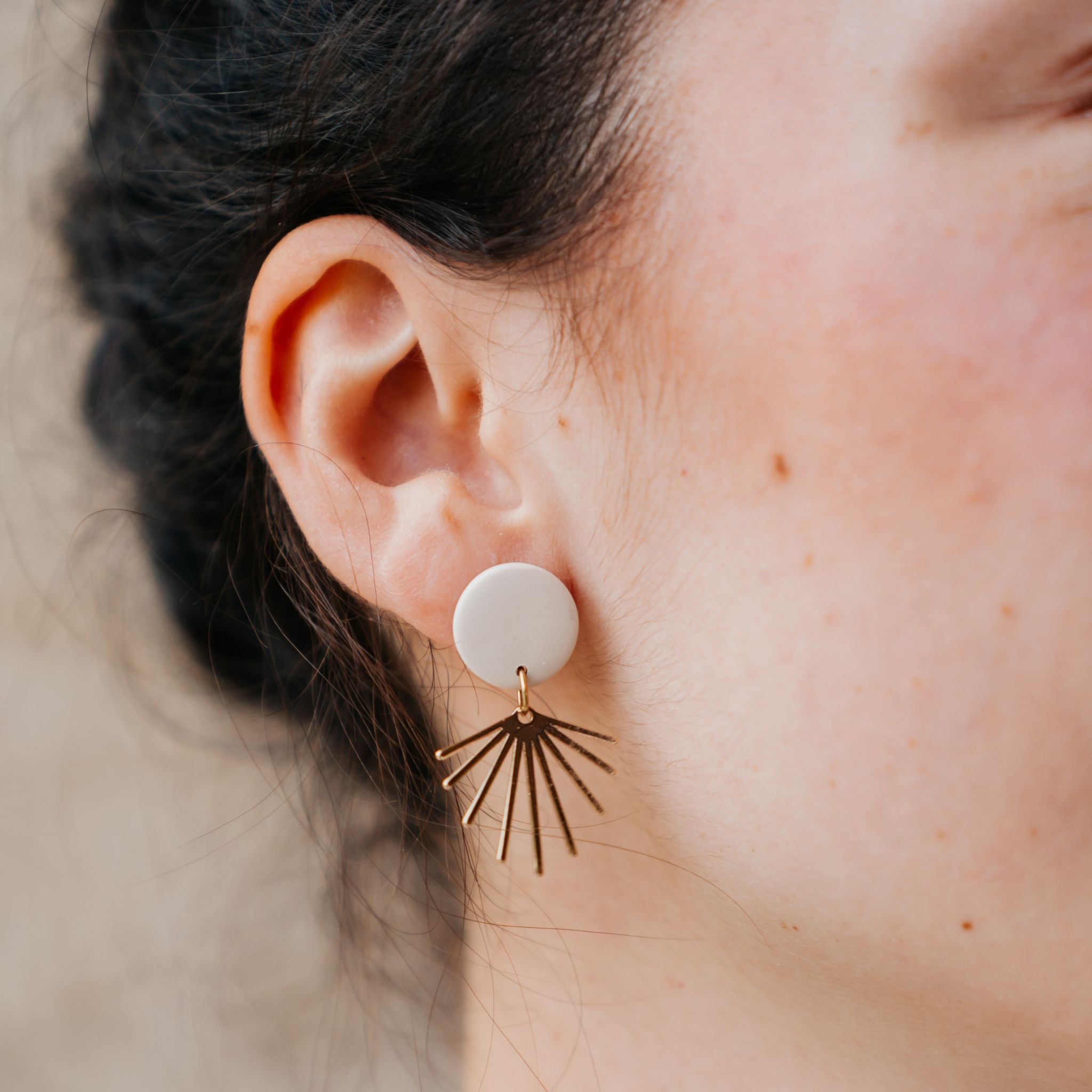 Stilvolle Ohrstecker Indi mit Kopfteil aus Acetat oder Polymer Clay & Anhänger aus vergoldetem Messing von Vagabundobjects.