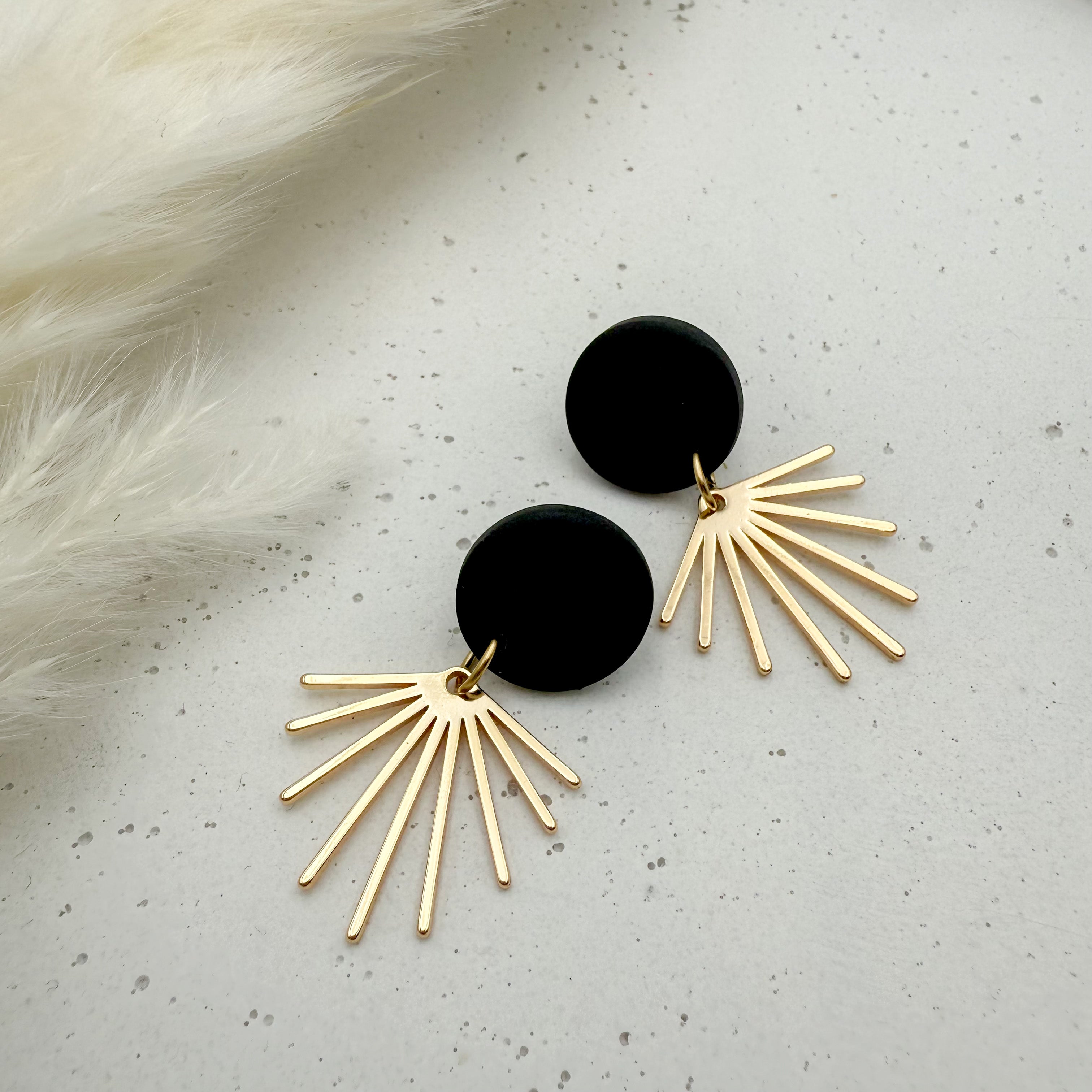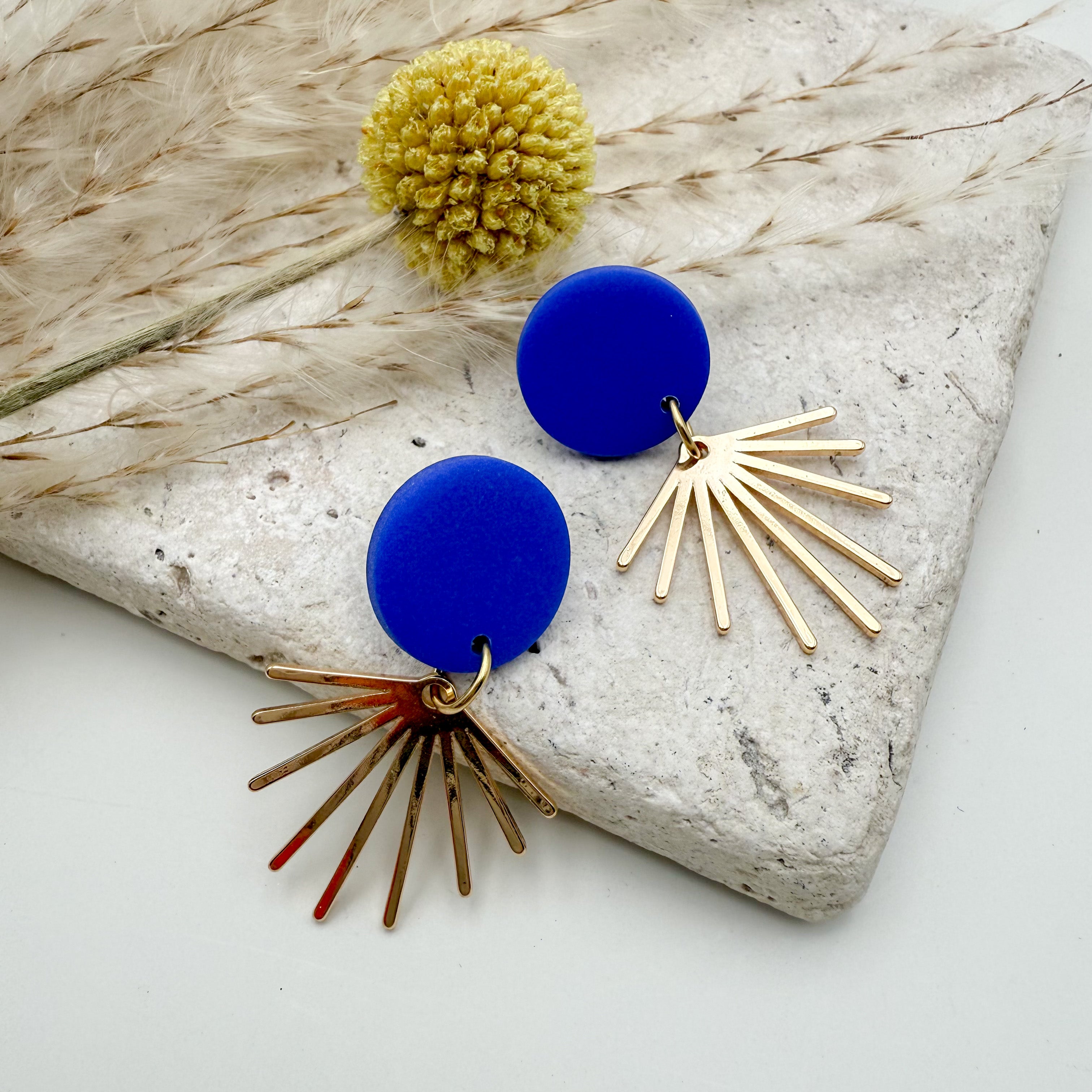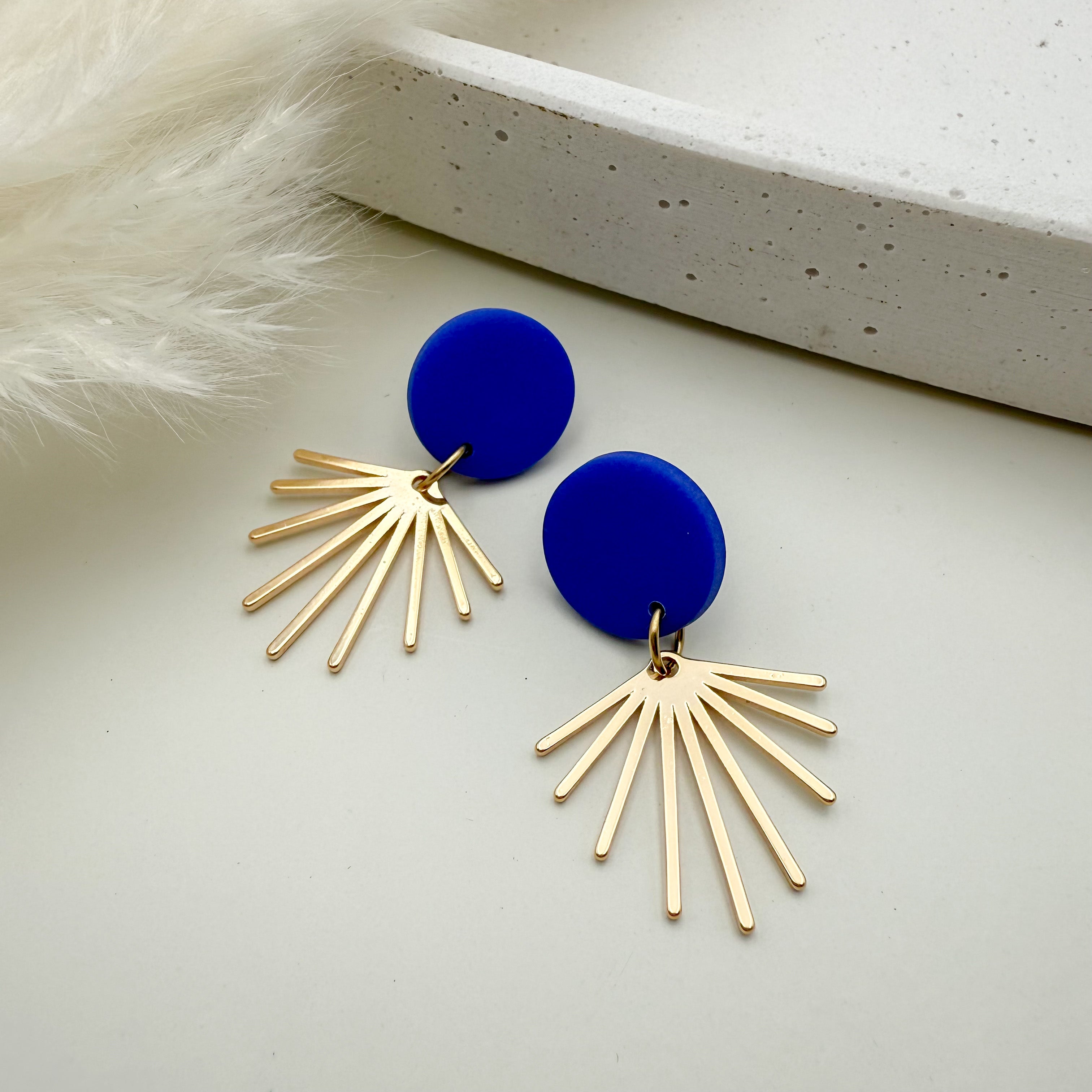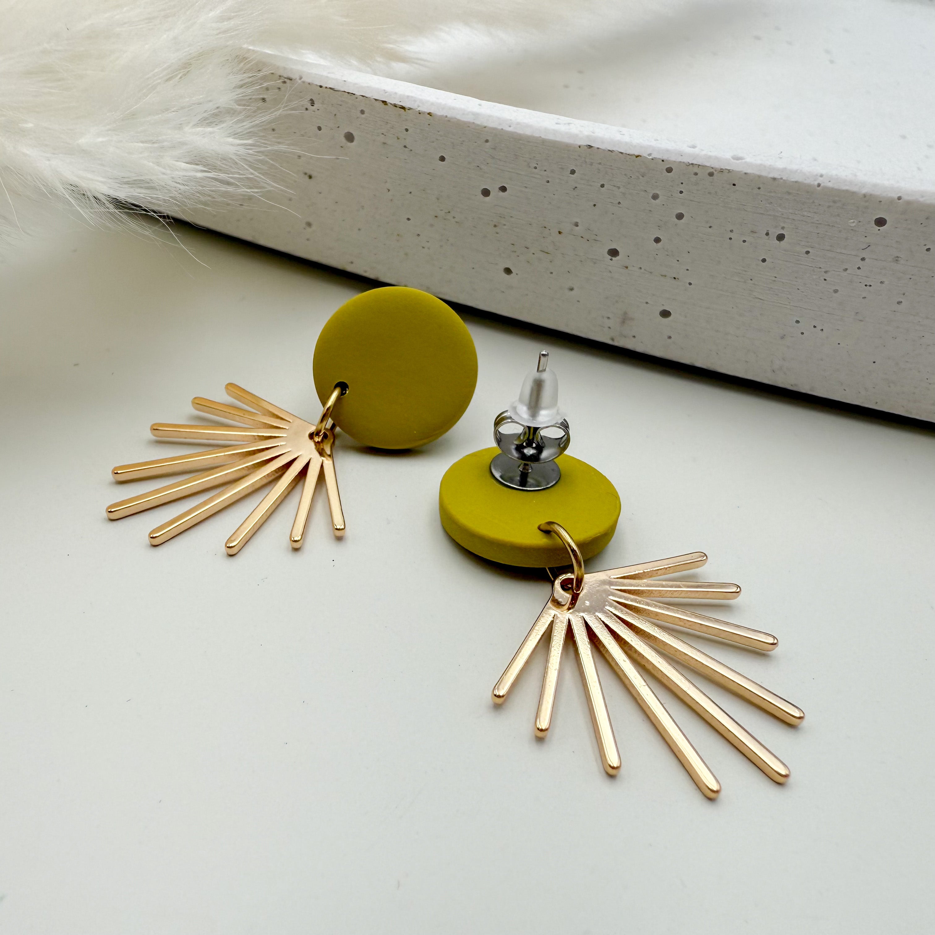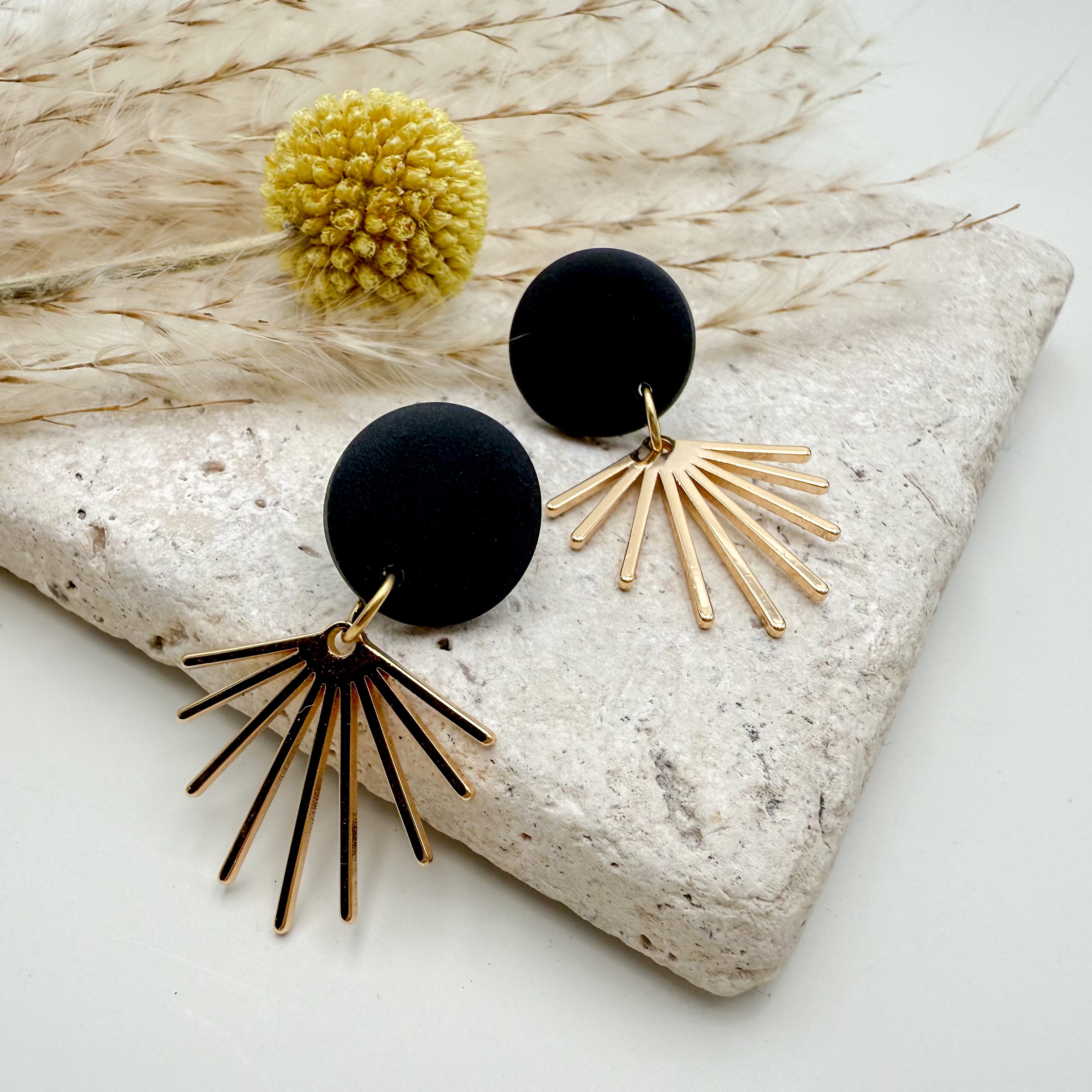 Stilvolle Ohrstecker Indi mit Kopfteil aus Acetat oder Polymer Clay & Anhänger aus vergoldetem Messing von Vagabundobjects.