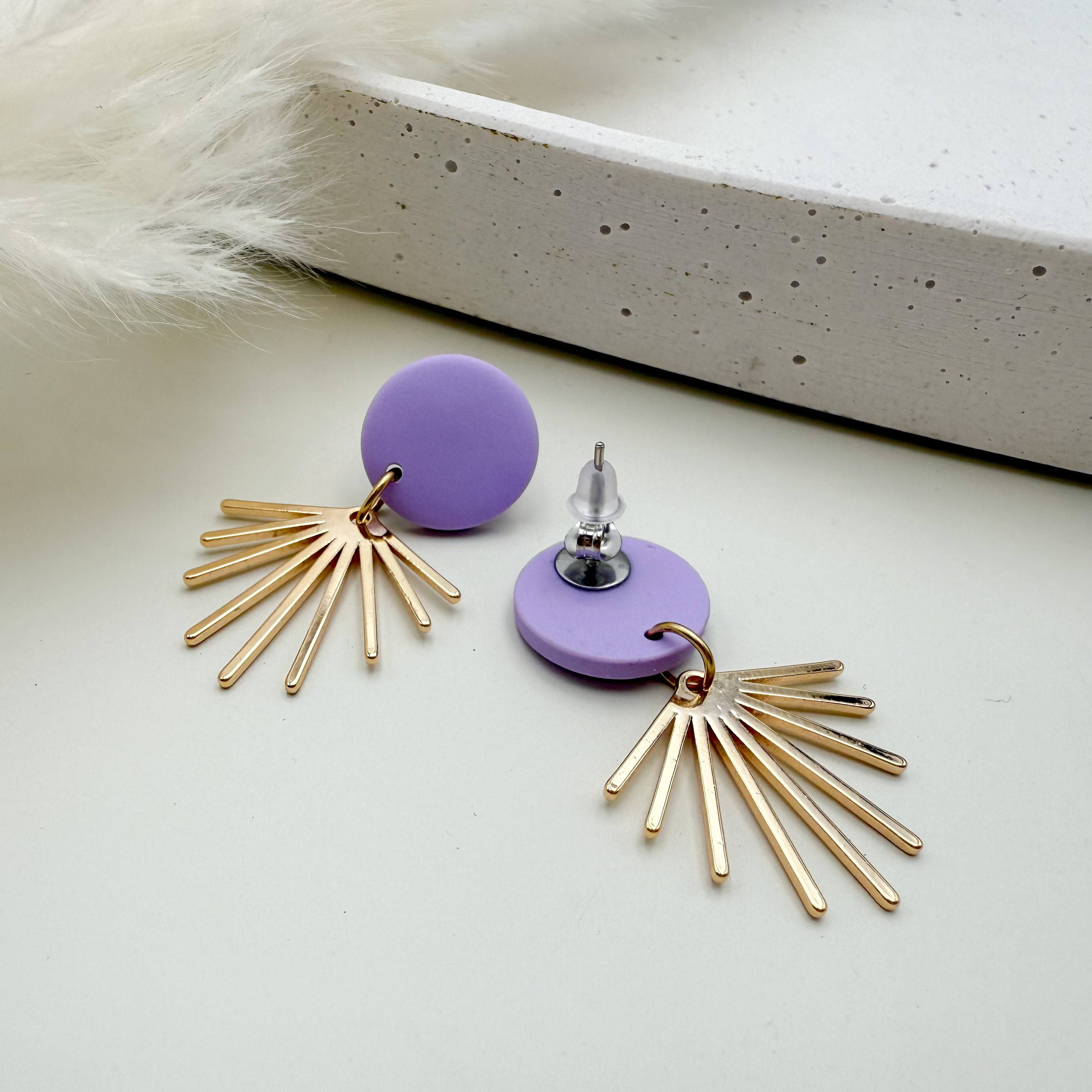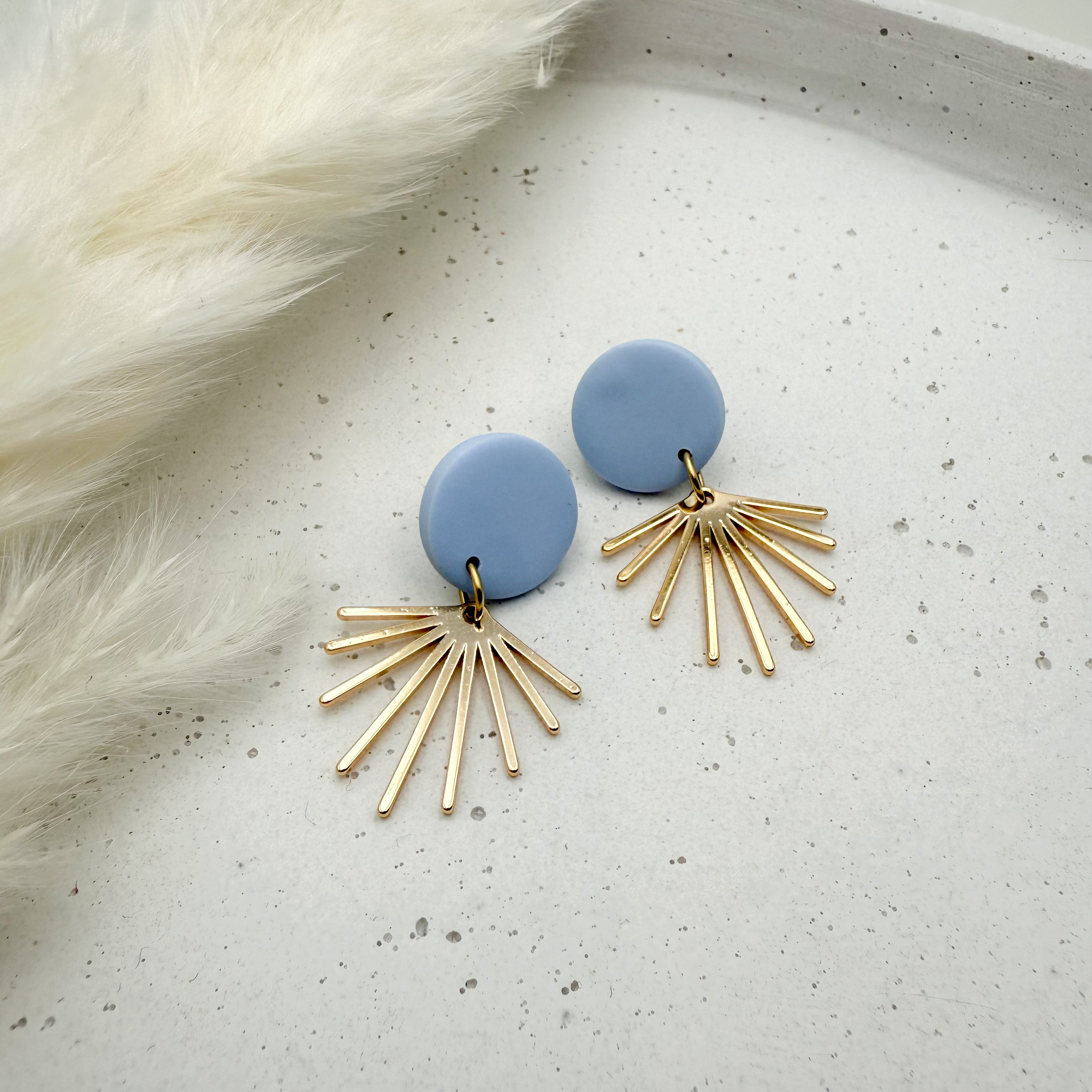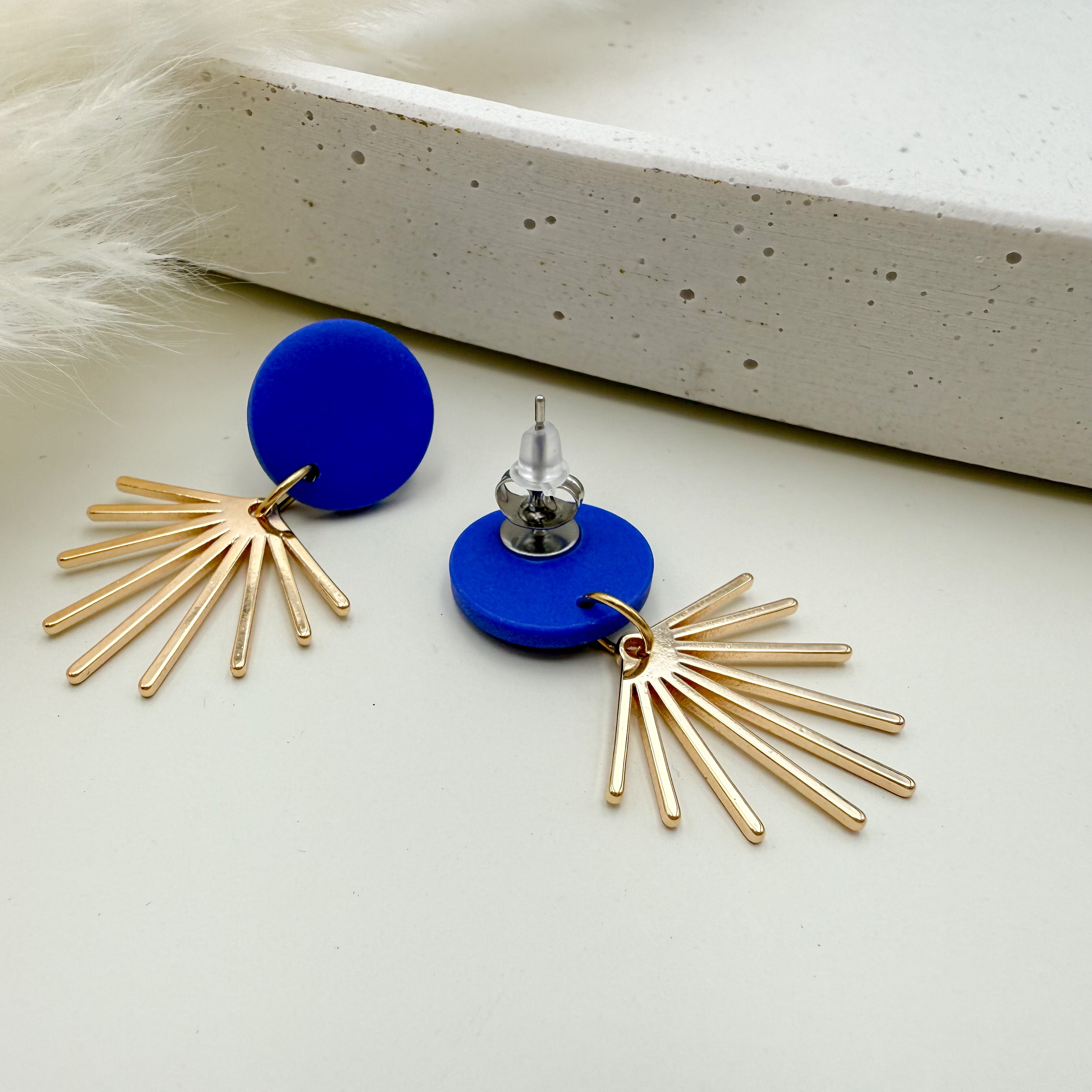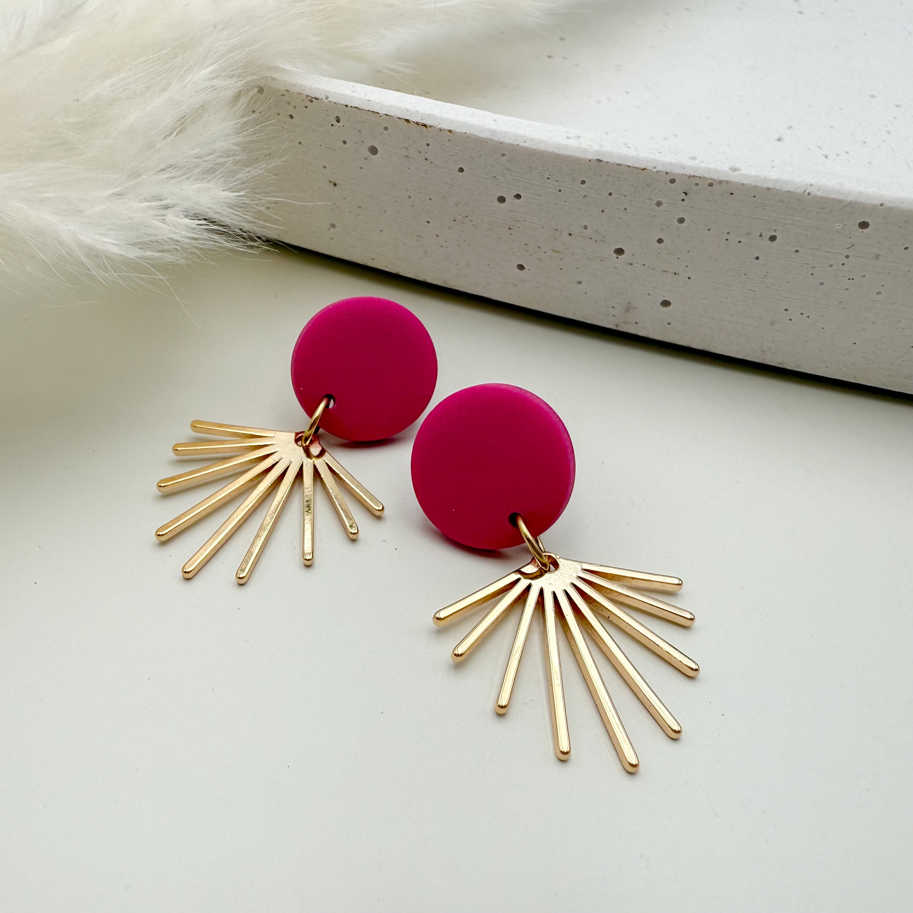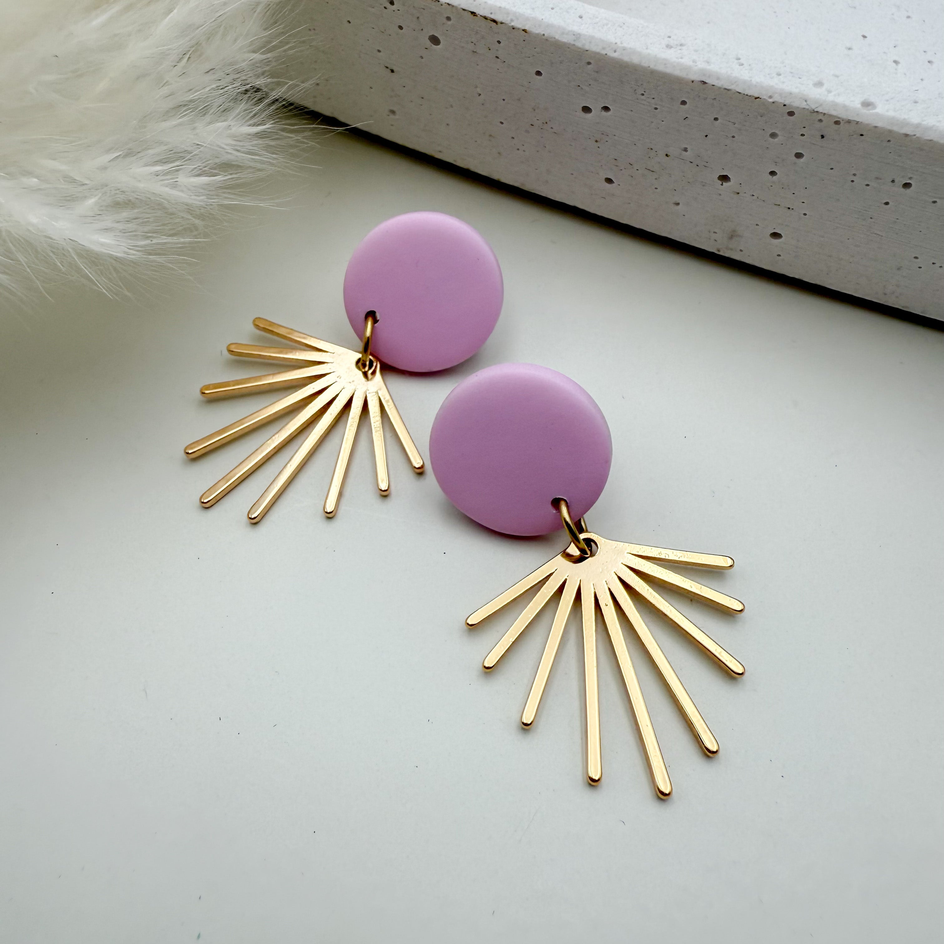 Stilvolle Ohrstecker Indi mit Kopfteil aus Acetat oder Polymer Clay & Anhänger aus vergoldetem Messing von Vagabundobjects.