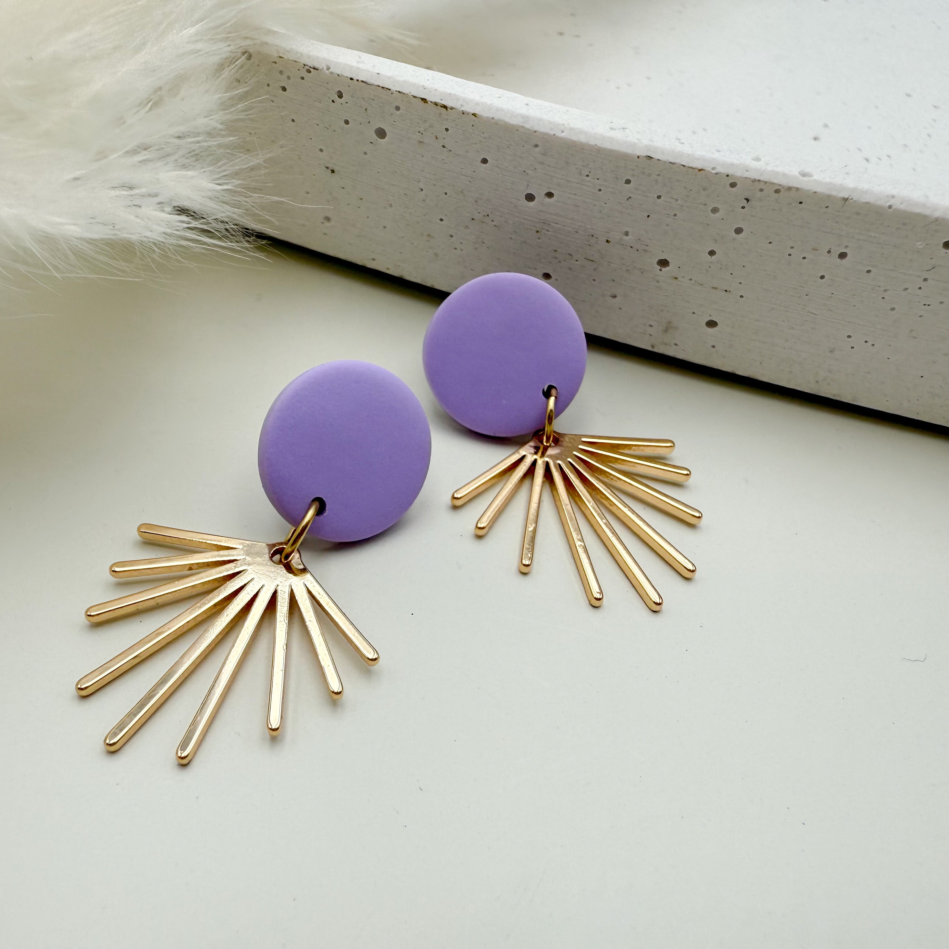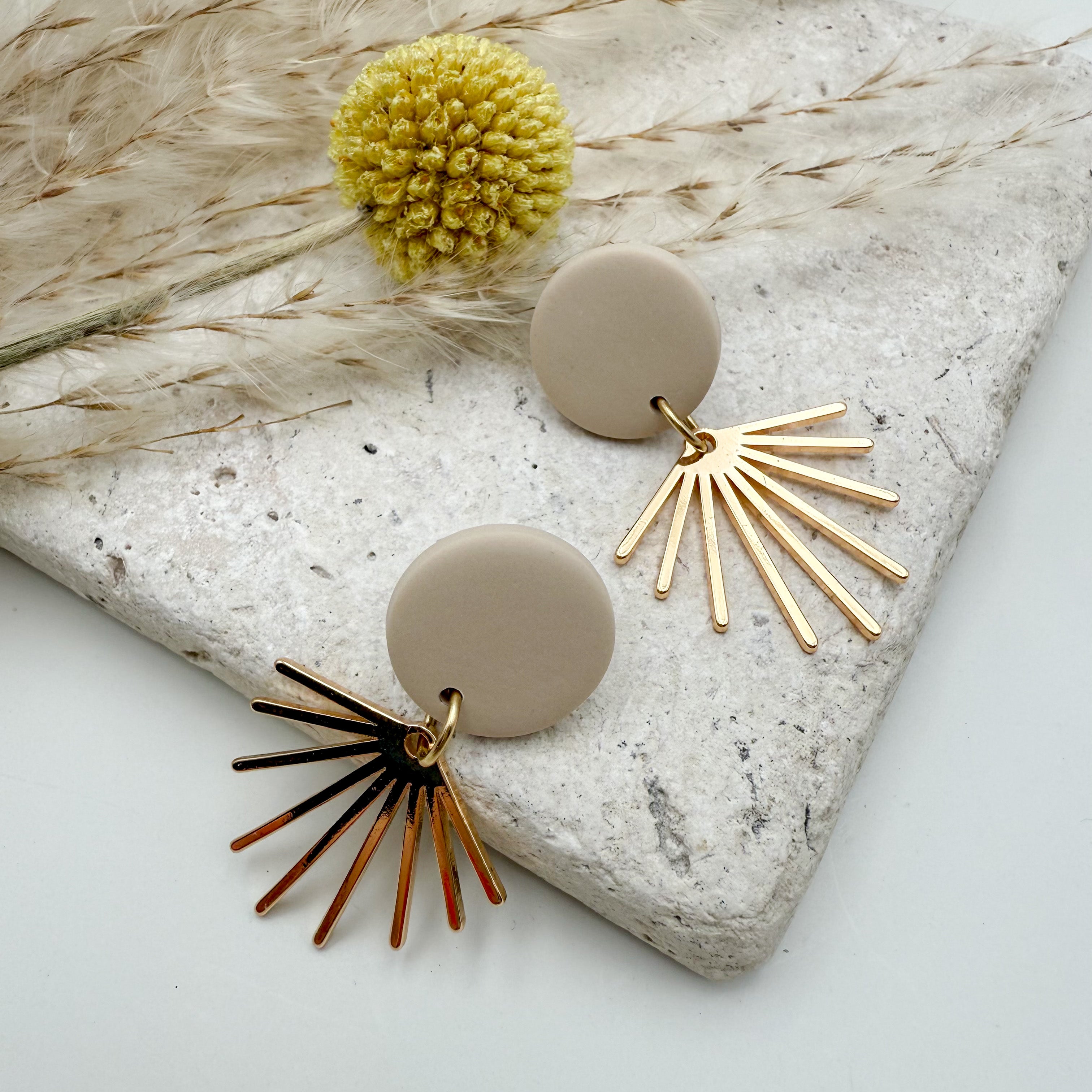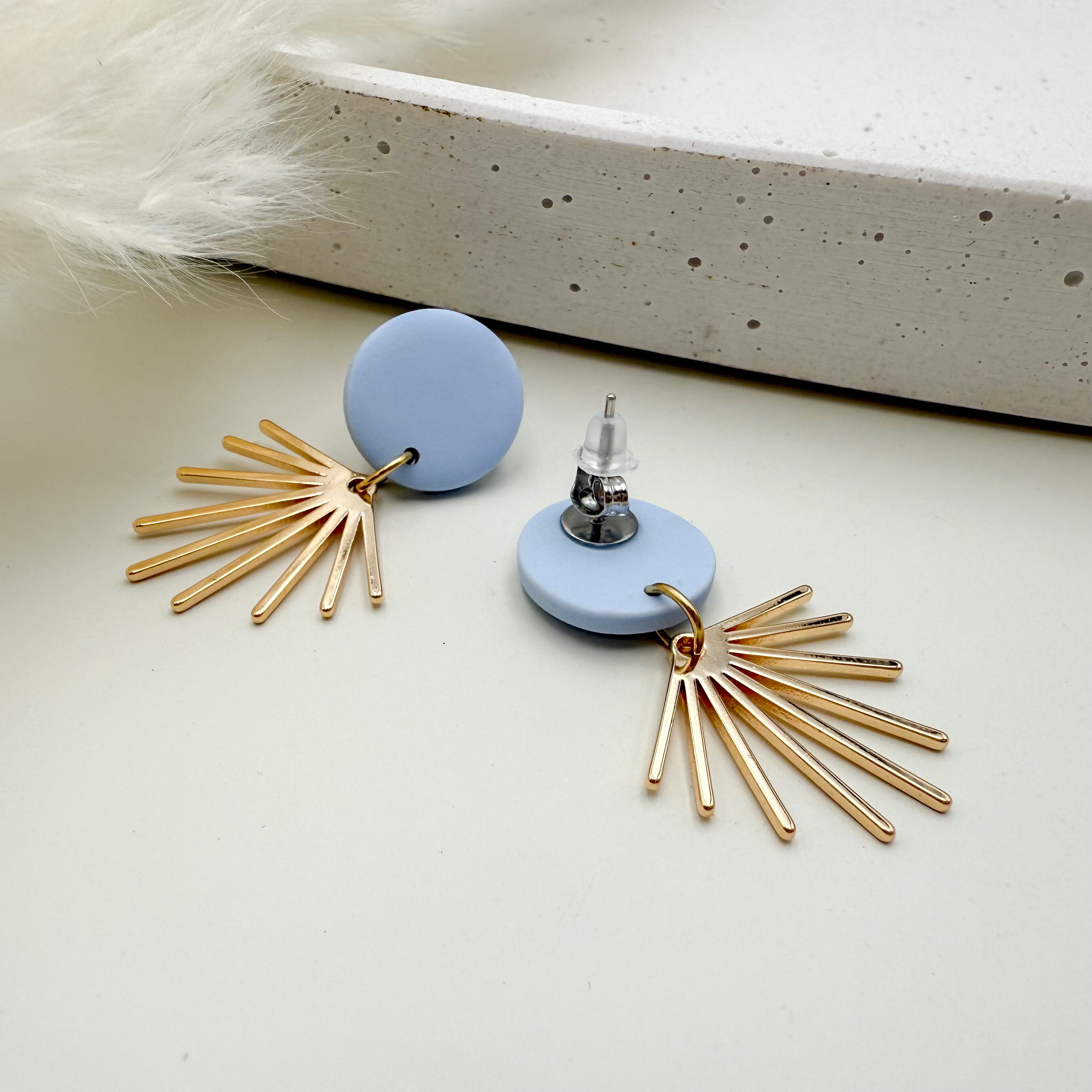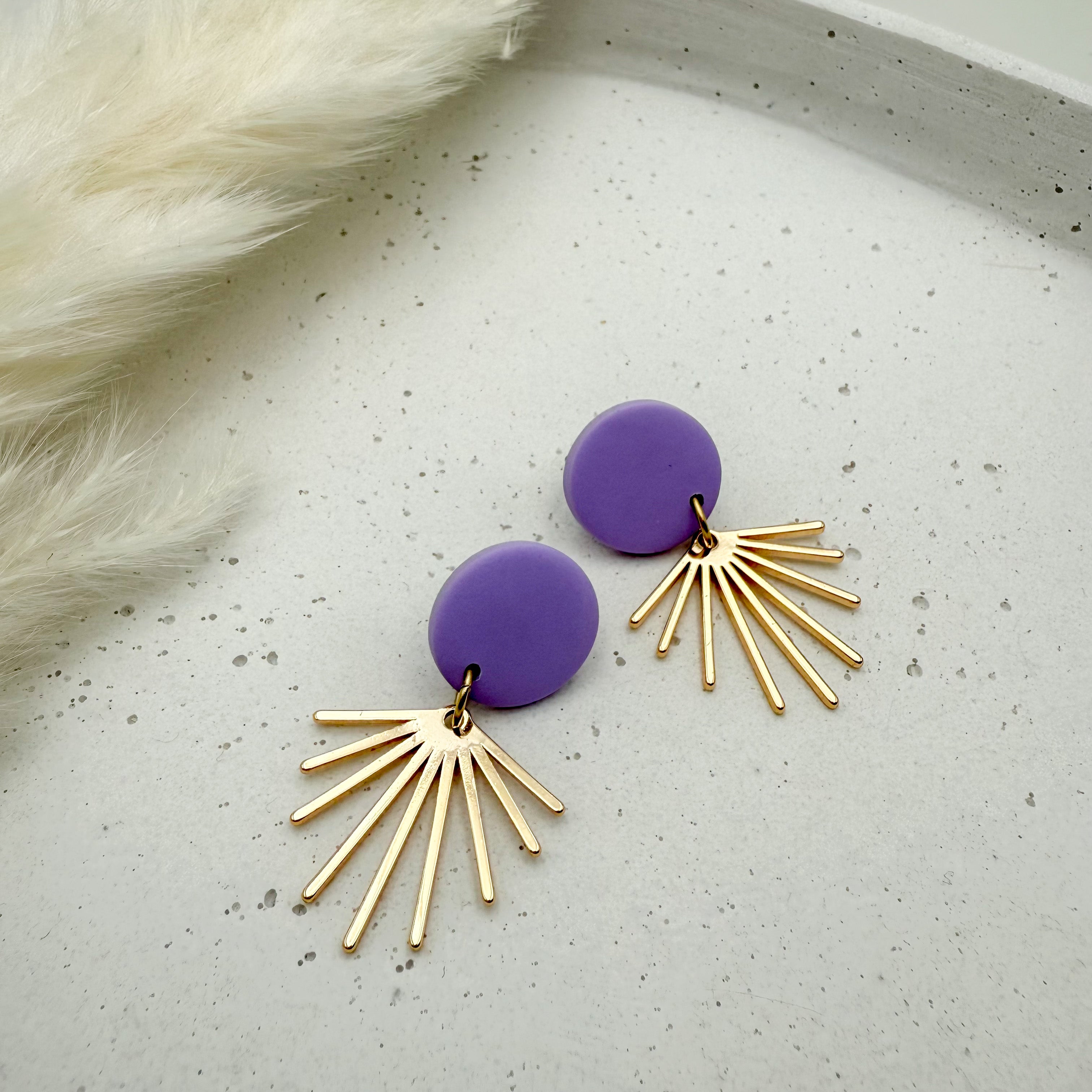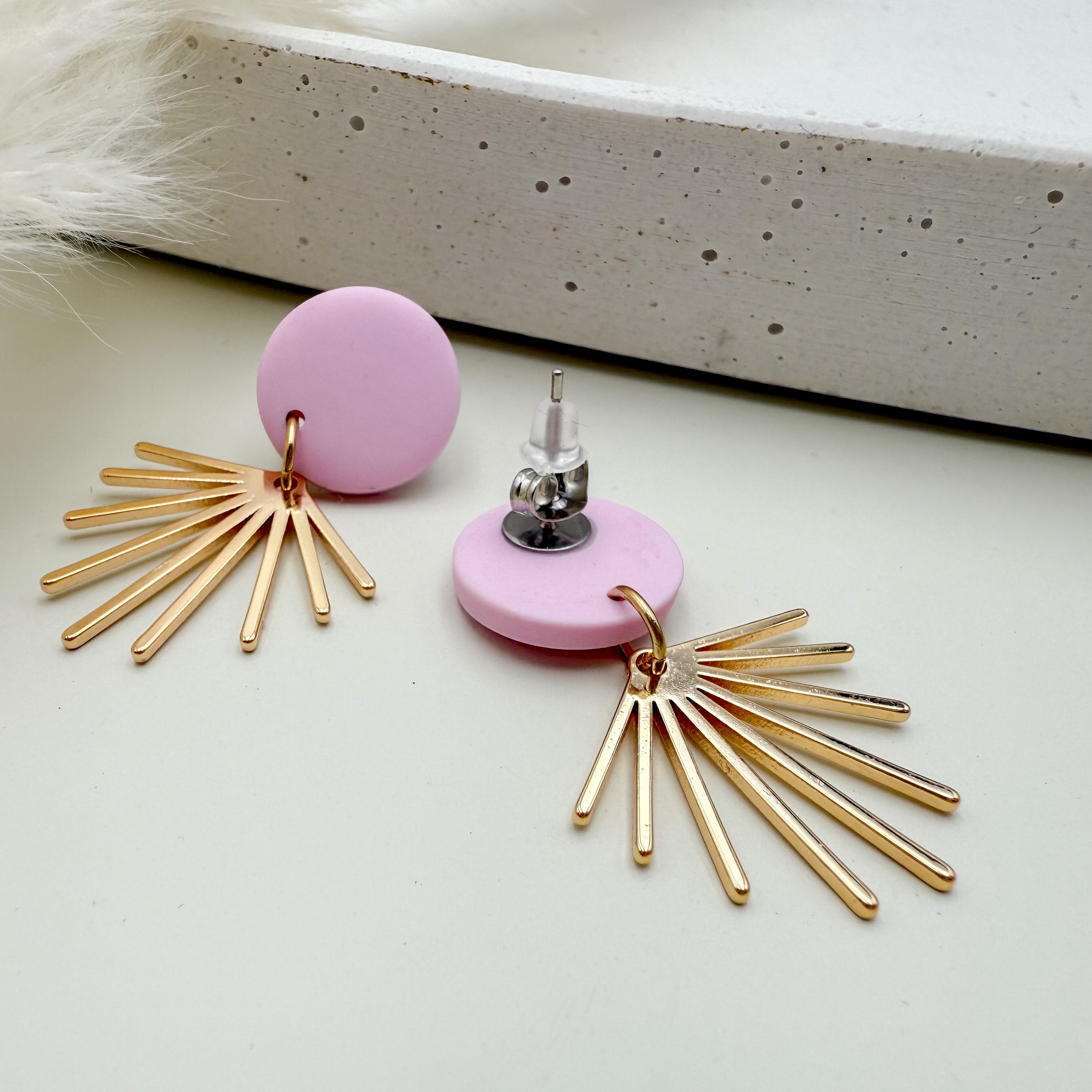 Stilvolle Ohrstecker Indi mit Kopfteil aus Acetat oder Polymer Clay & Anhänger aus vergoldetem Messing von Vagabundobjects.