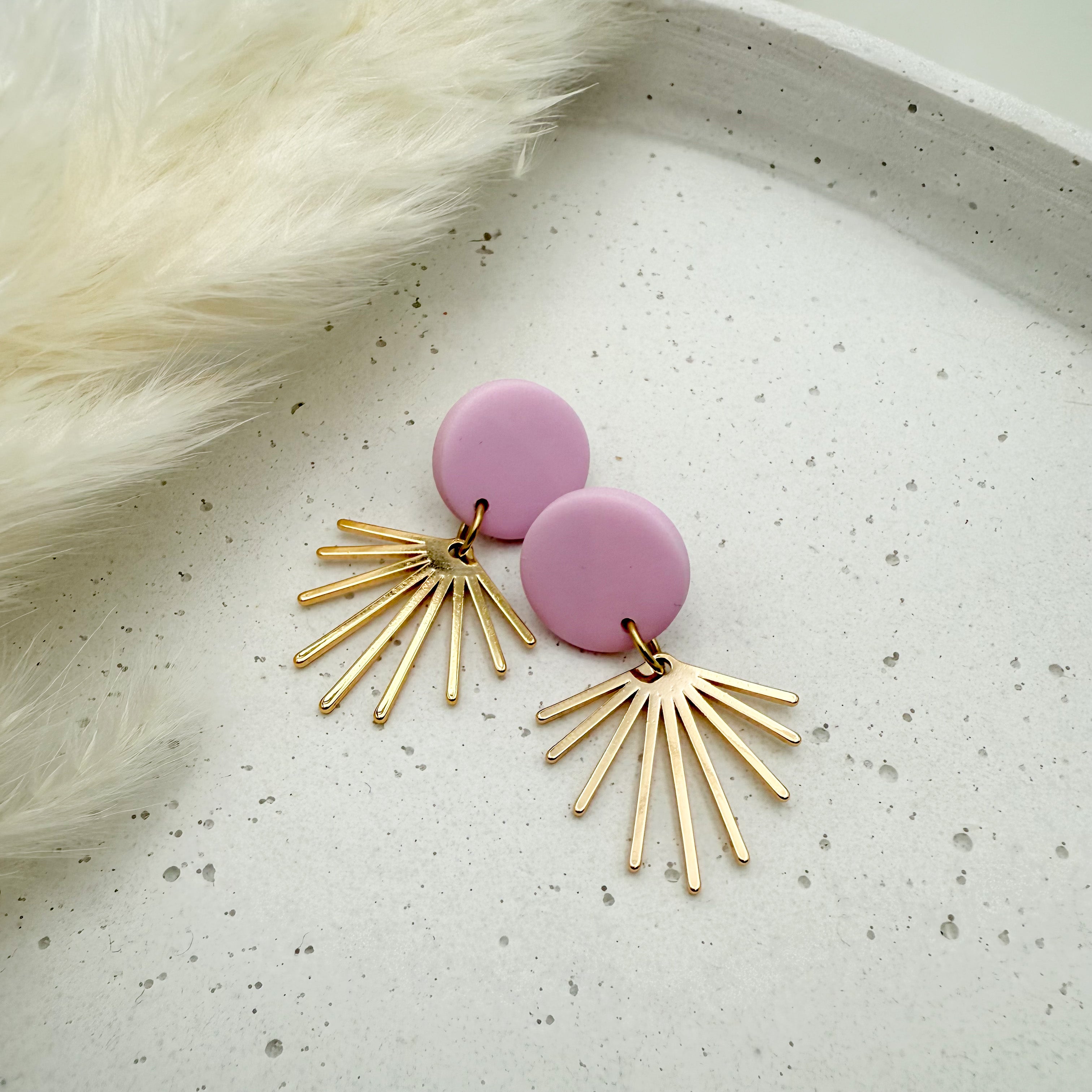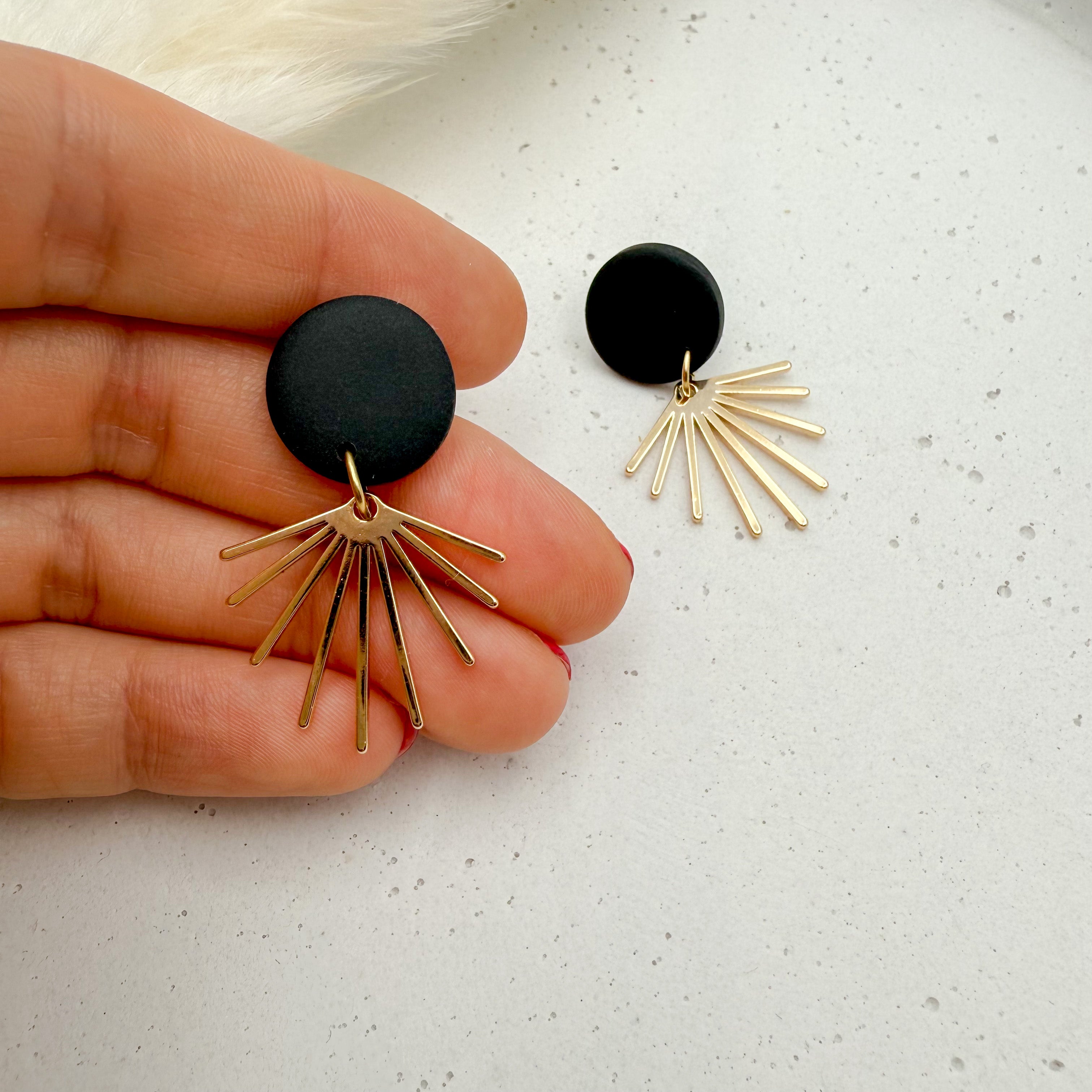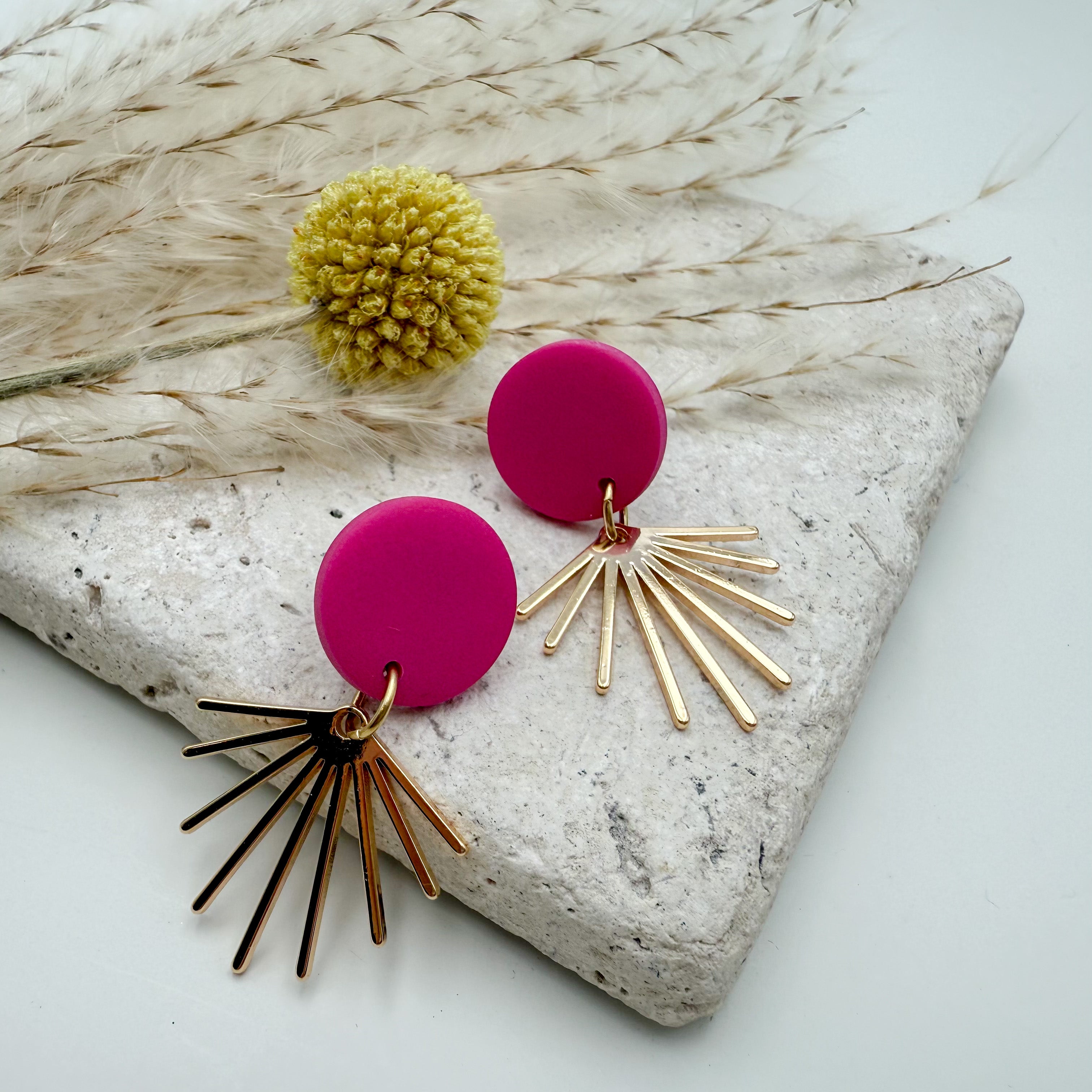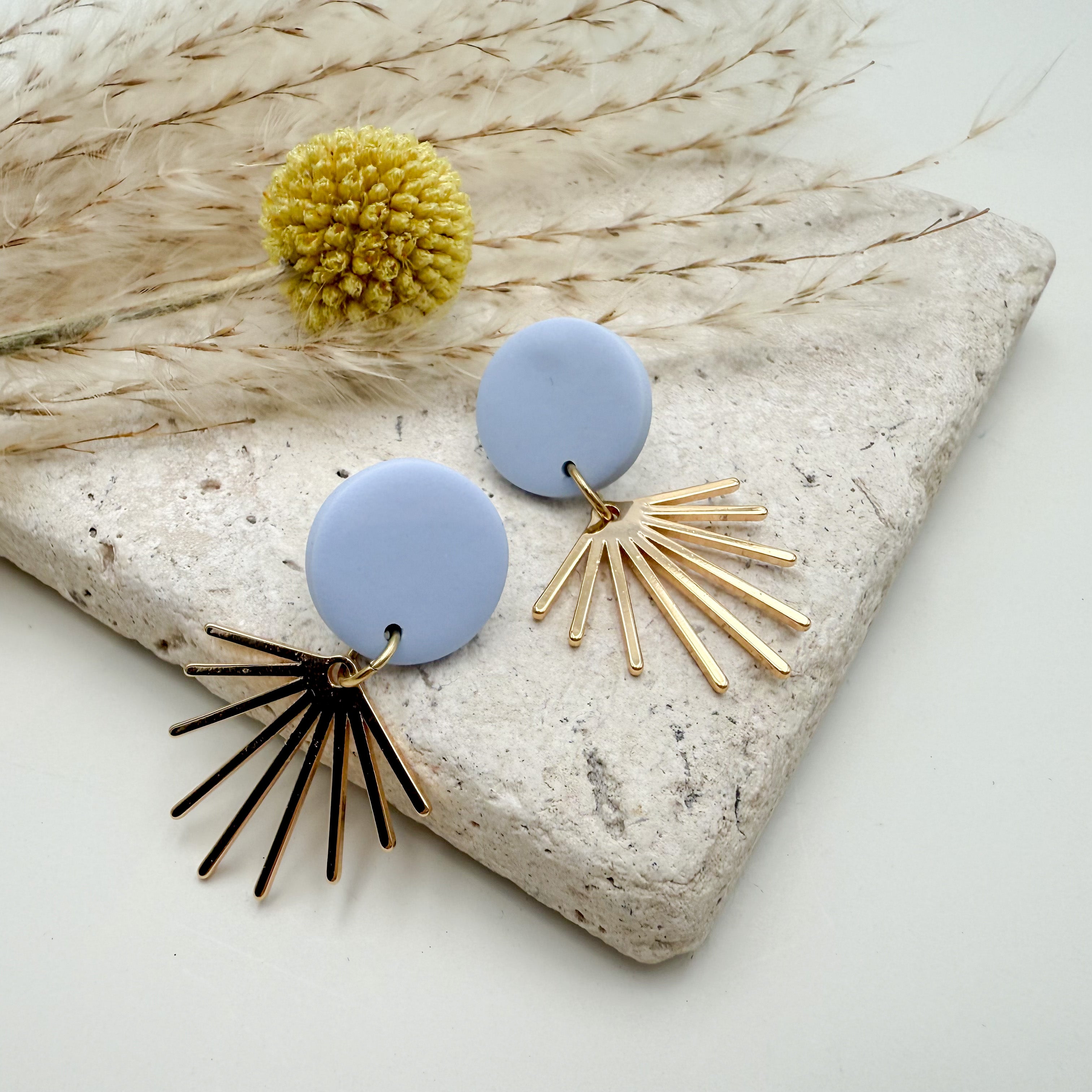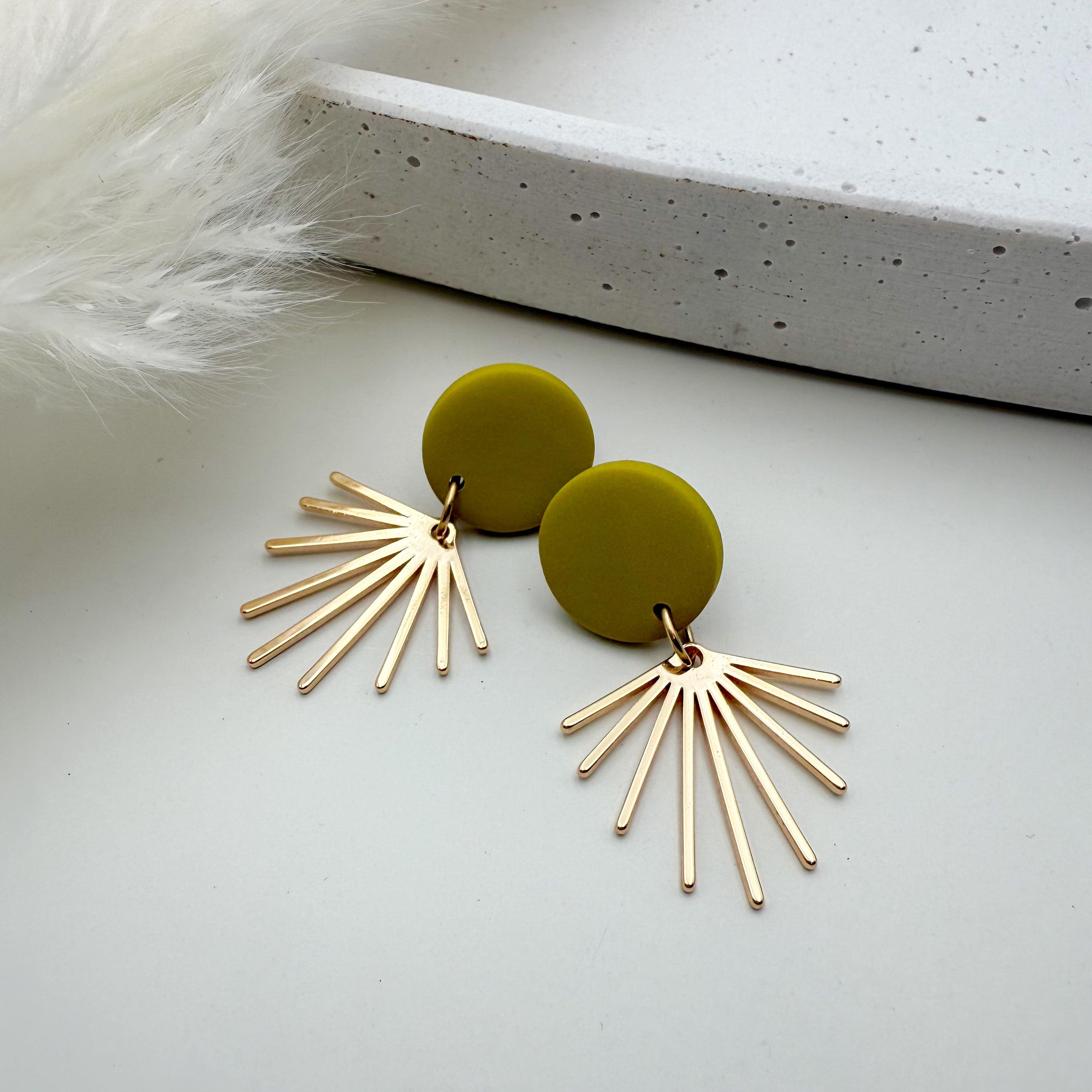 Stilvolle Ohrstecker Indi mit Kopfteil aus Acetat oder Polymer Clay & Anhänger aus vergoldetem Messing von Vagabundobjects.