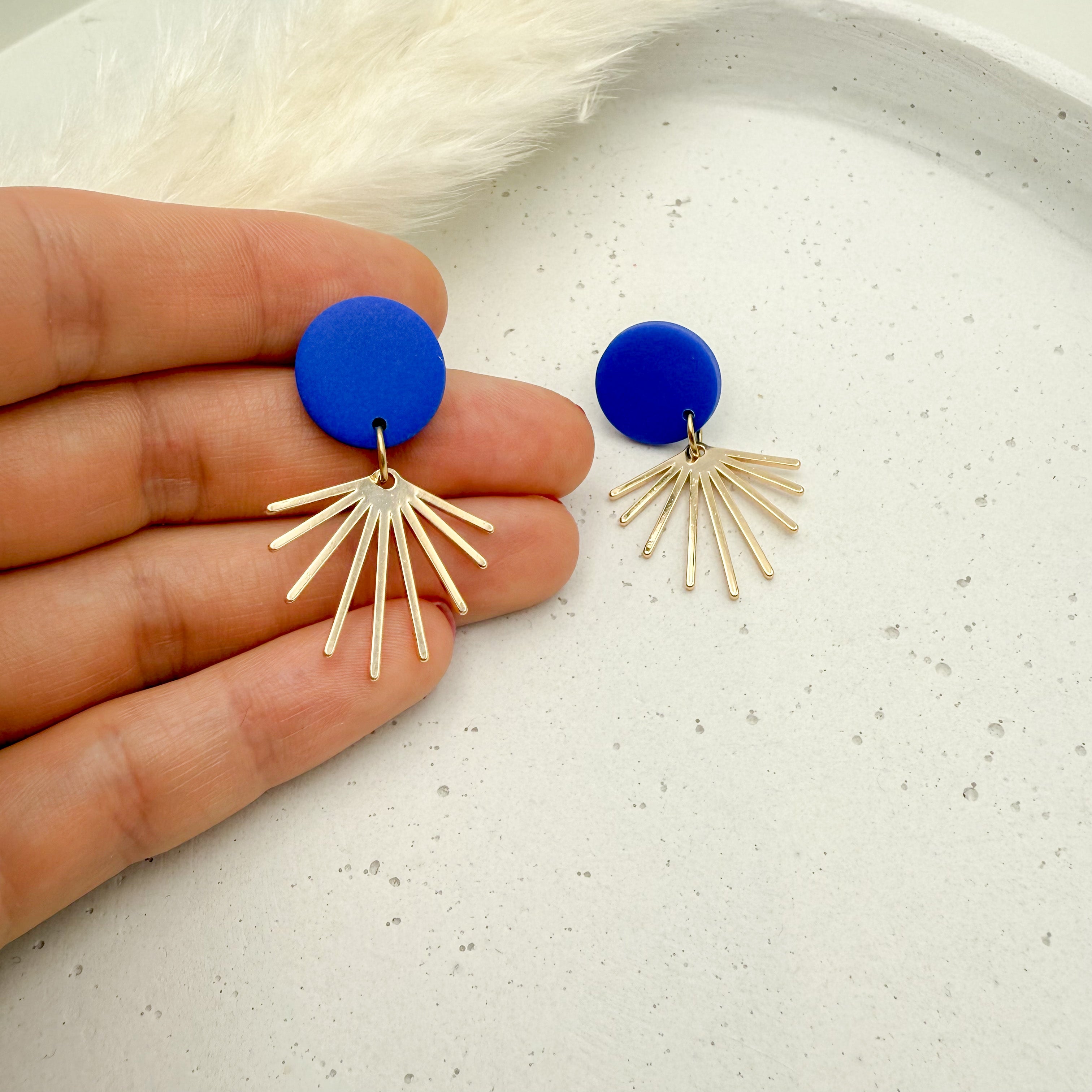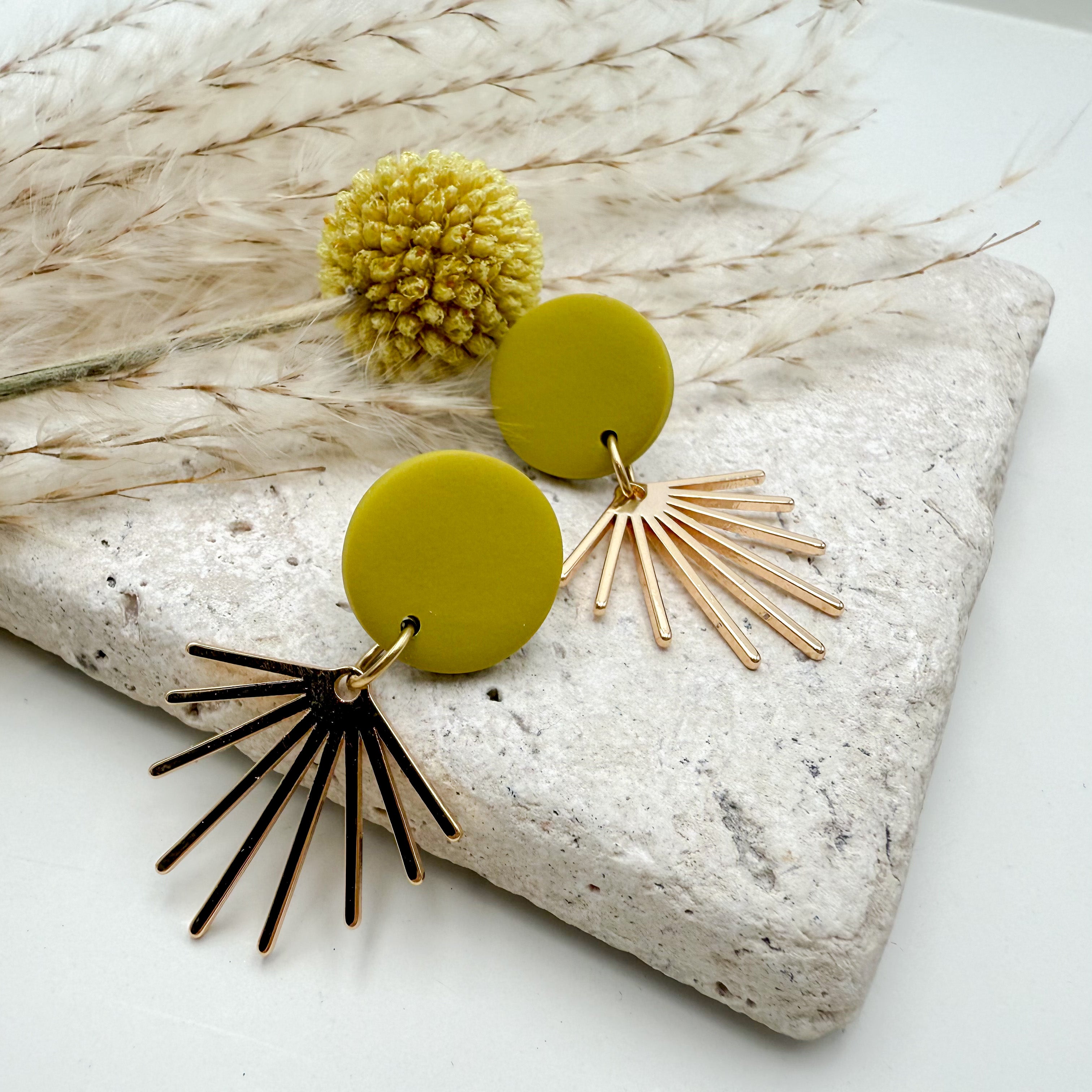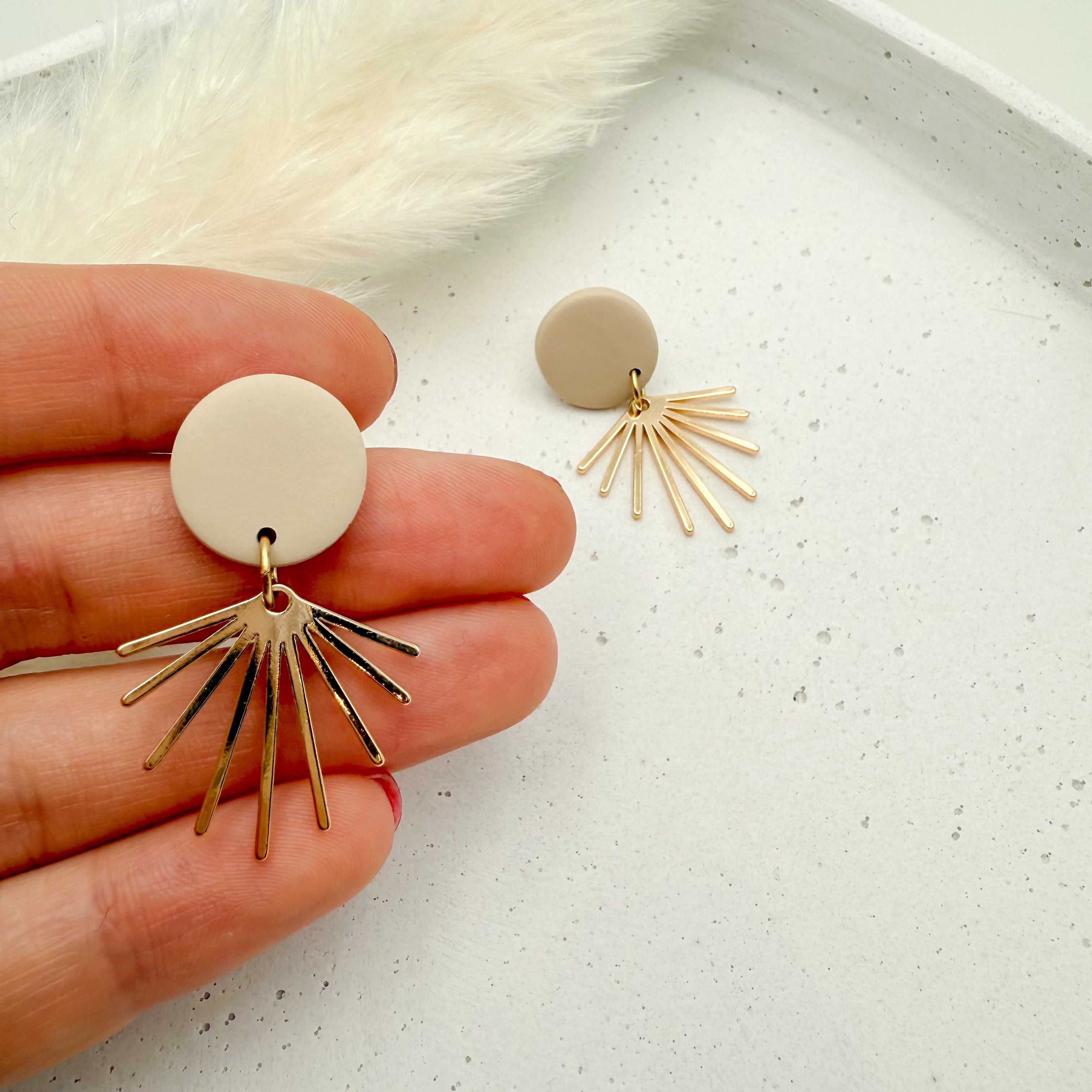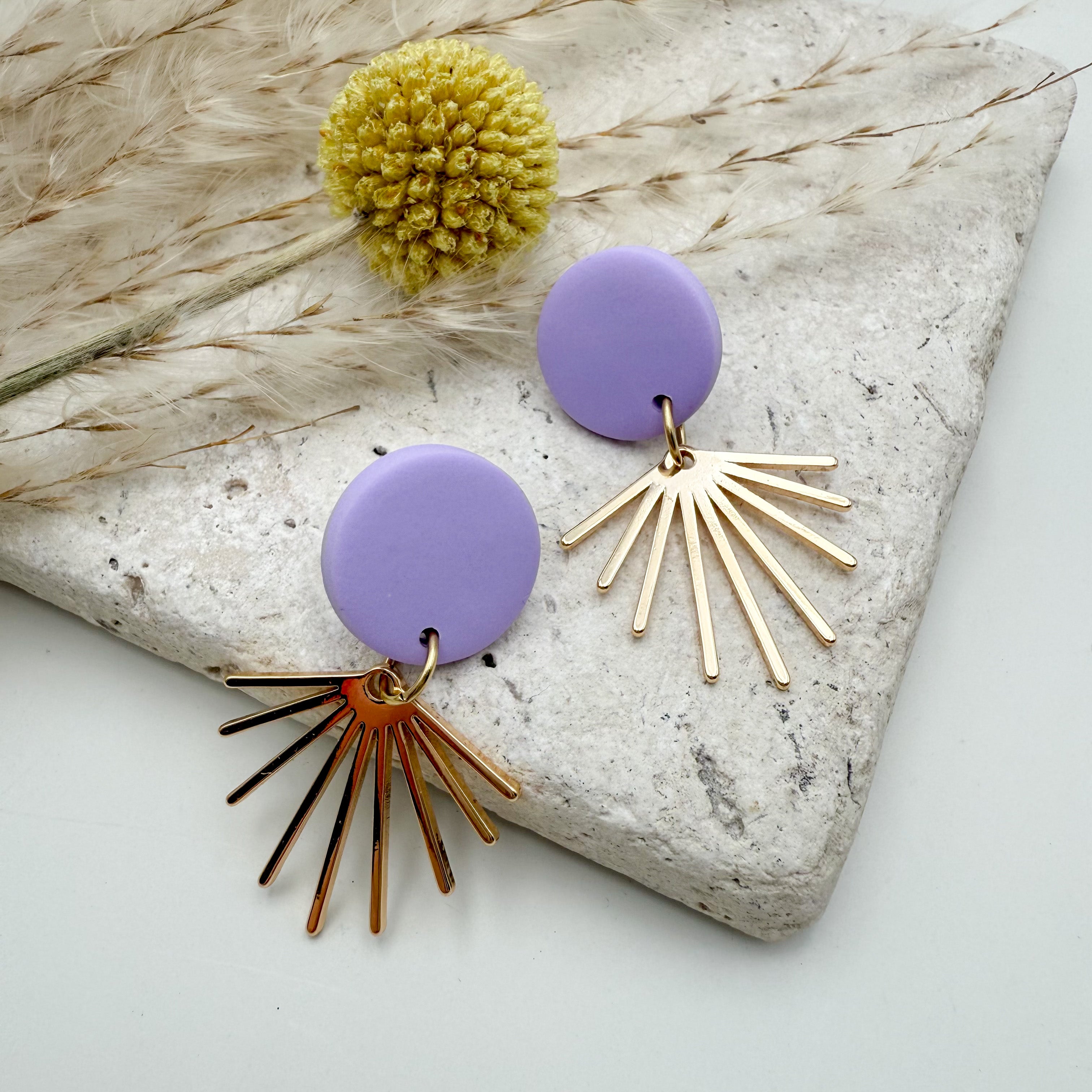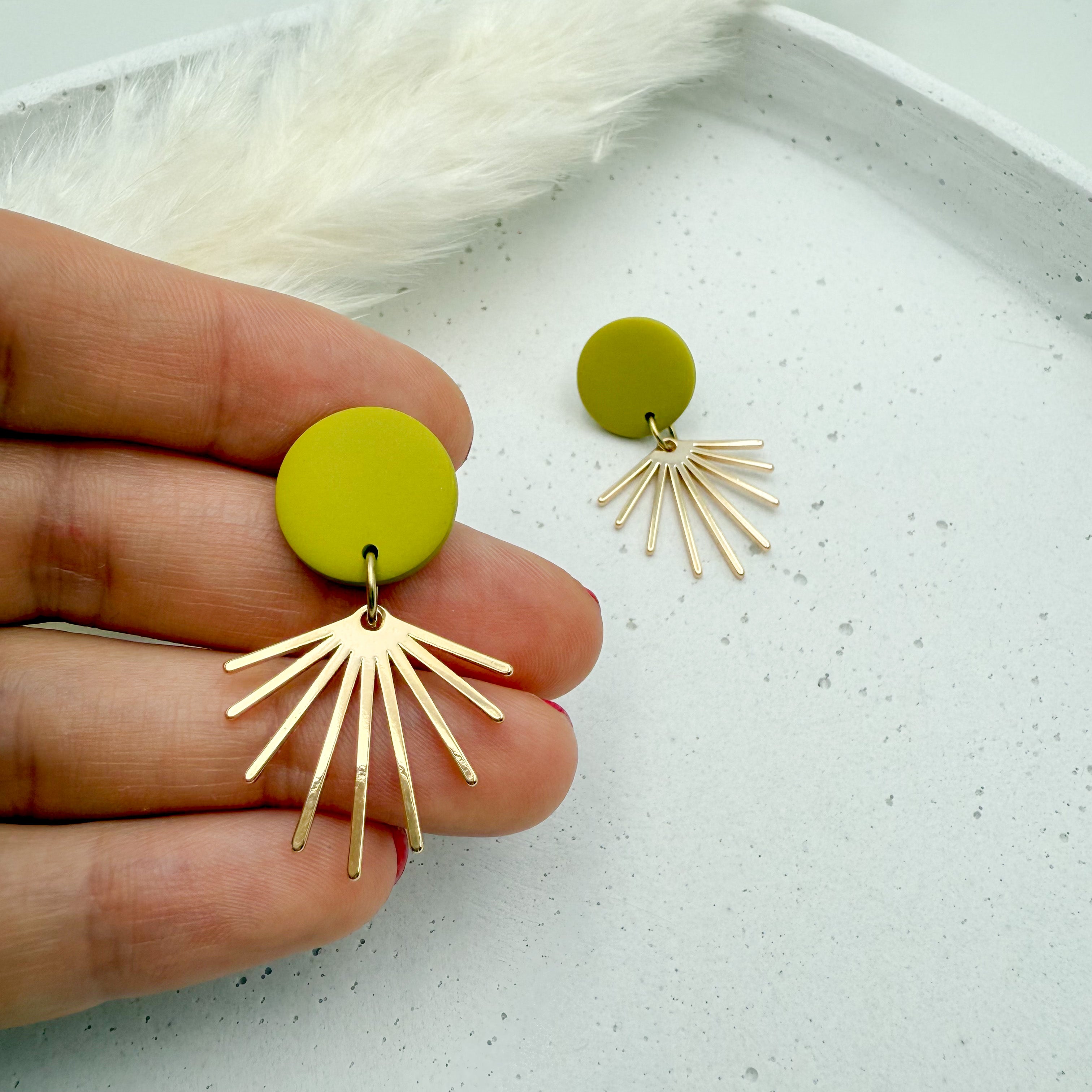 Stilvolle Ohrstecker Indi mit Kopfteil aus Acetat oder Polymer Clay & Anhänger aus vergoldetem Messing von Vagabundobjects.
