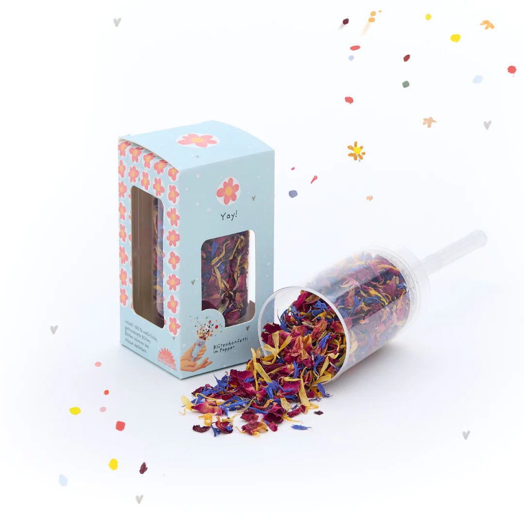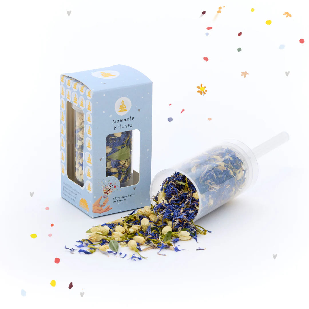 Manchmal gibt es Augenblicke, die so besonders sind, dass ein einfaches „Yay!“, ein liebevolles „Love you“ oder ein humorvolles „Namaste Bitches“ nicht ausreicht. Momente, die nach Farbe, Leichtigkeit und einem kleinen Funken Magie verlangen. Genau dafür gibt es das Blütenkonfetti im Popper – ein nachhaltiger Mini-Feiermoment, der Herzen höherschlagen lässt.