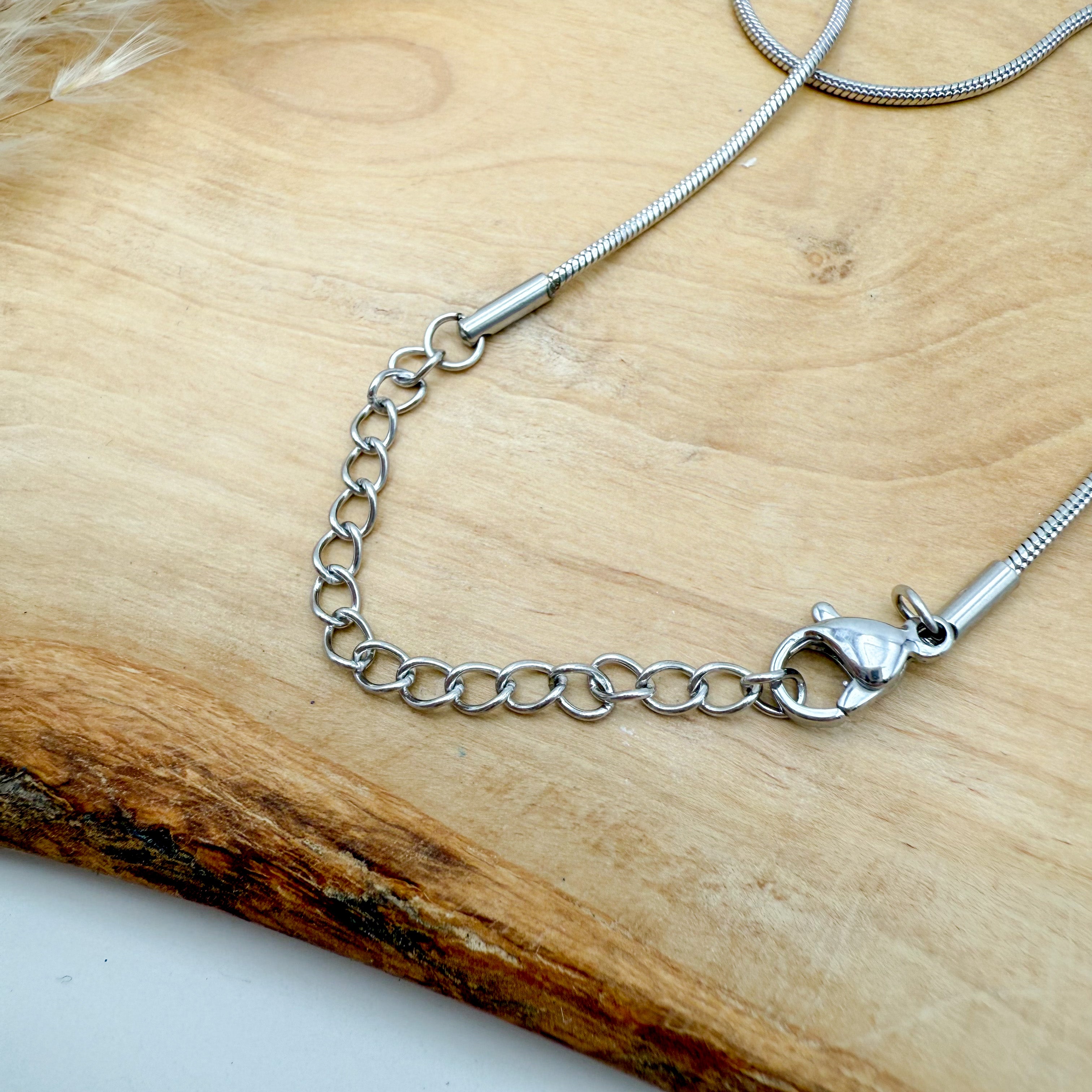 Elegante Kette Eloa Silber aus hochwertigem Edelstahl von Vagabundobjects, die sich dank der schmalen Kettenglieder zart an deinen Hals schmiegt.