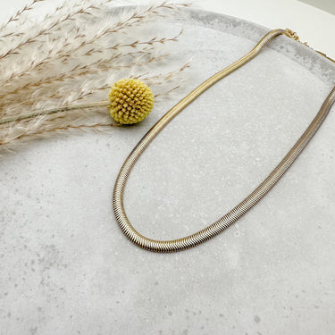 Elegante Schlangen Kette Ilma Gold aus 18k vergoldetem Edelstahl von Vagabundobjects, die sich dank der schmalen Kettenglieder zart an deinen Hals schmiegt.
