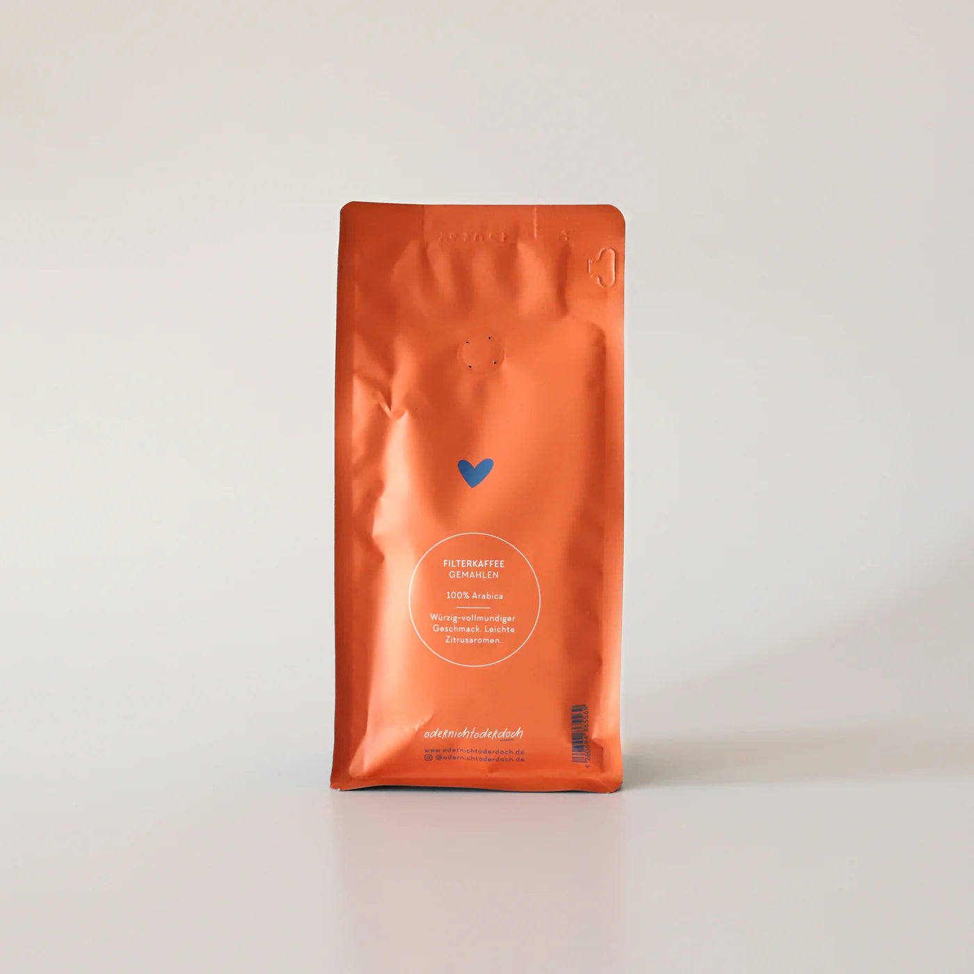 - 250 g gemahlener Kaffee im Blockbodenbeutel mit Zipper & Aromaventil