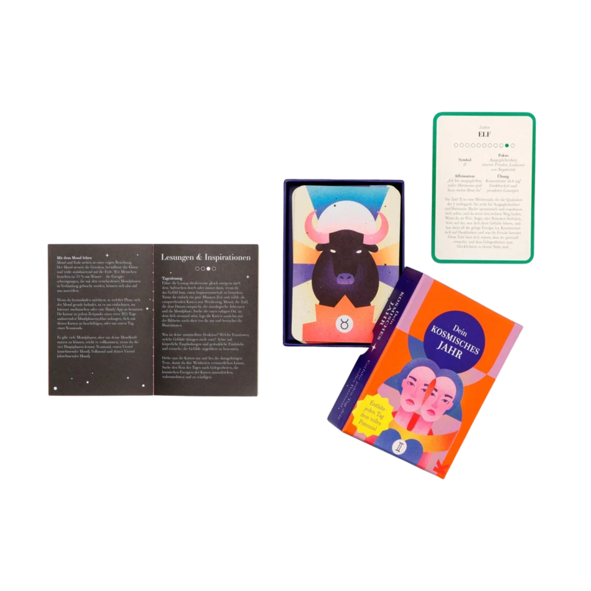 Mit Dein Kosmisches Jahr entdeckst du die kosmische Kraft von Datum, Monat, astrologischen Jahreszeiten und Mondphasen. Die 46 liebevoll gestalteten Karten plus Booklet helfen dir, tägliche Lesungen zu erstellen, deine persönliche Energie zu stärken und das Beste aus jedem Tag zu machen.