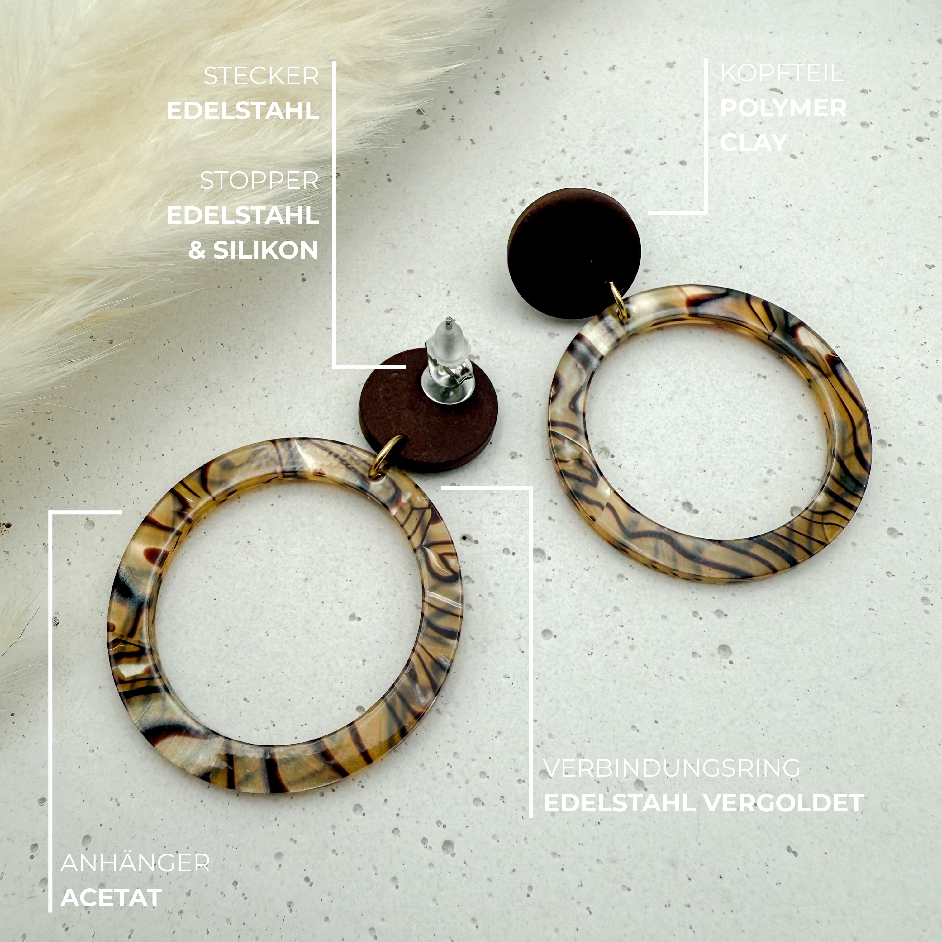 Bitte beachte: Jedes Ohrring Paar wird von uns in liebevoller Handarbeit hergestellt. Jeder Ohrring ist daher ein Unikat, was bedeutet, dass die Musterung oder die Farbe von den Bildern in unserem Onlineshop abweichen kann.