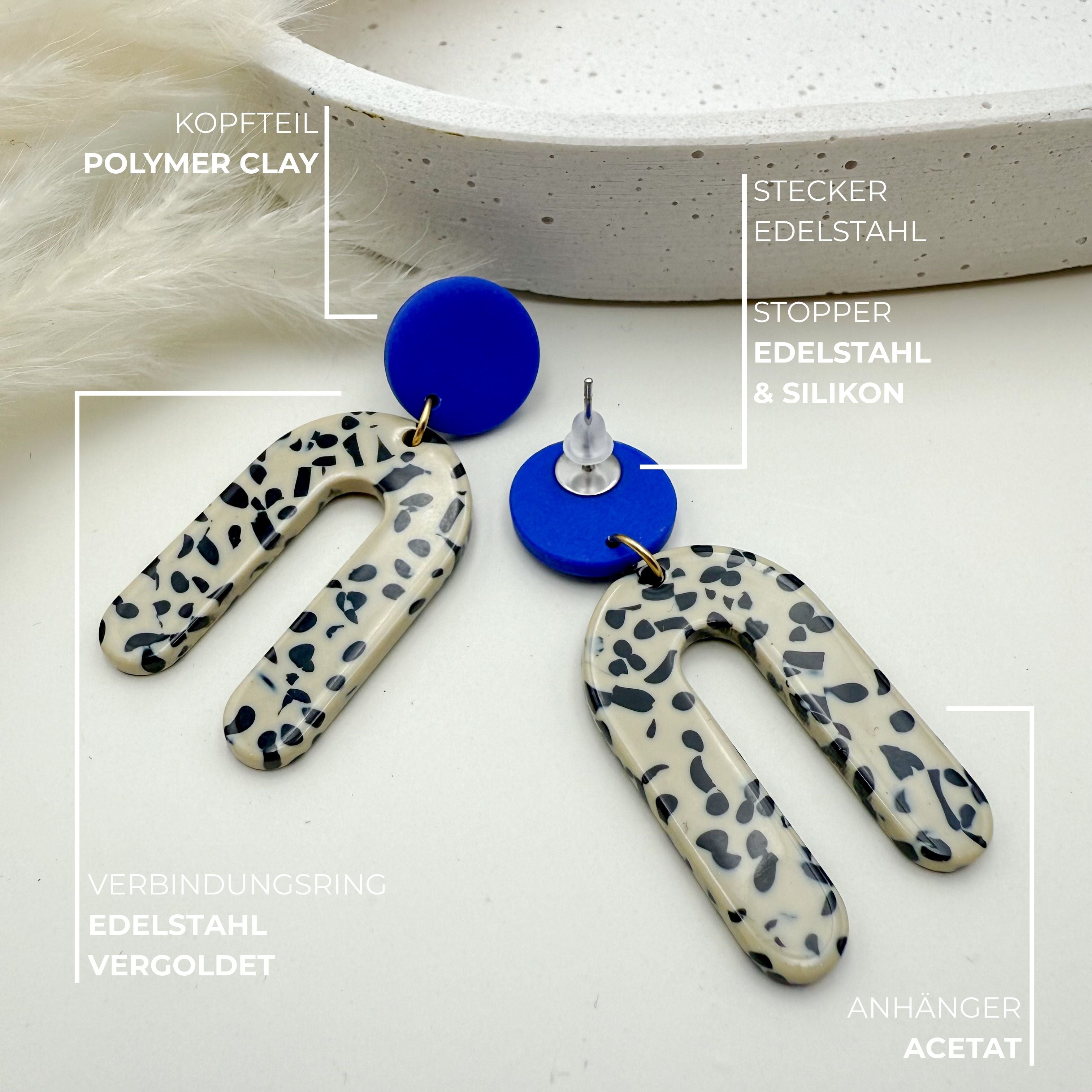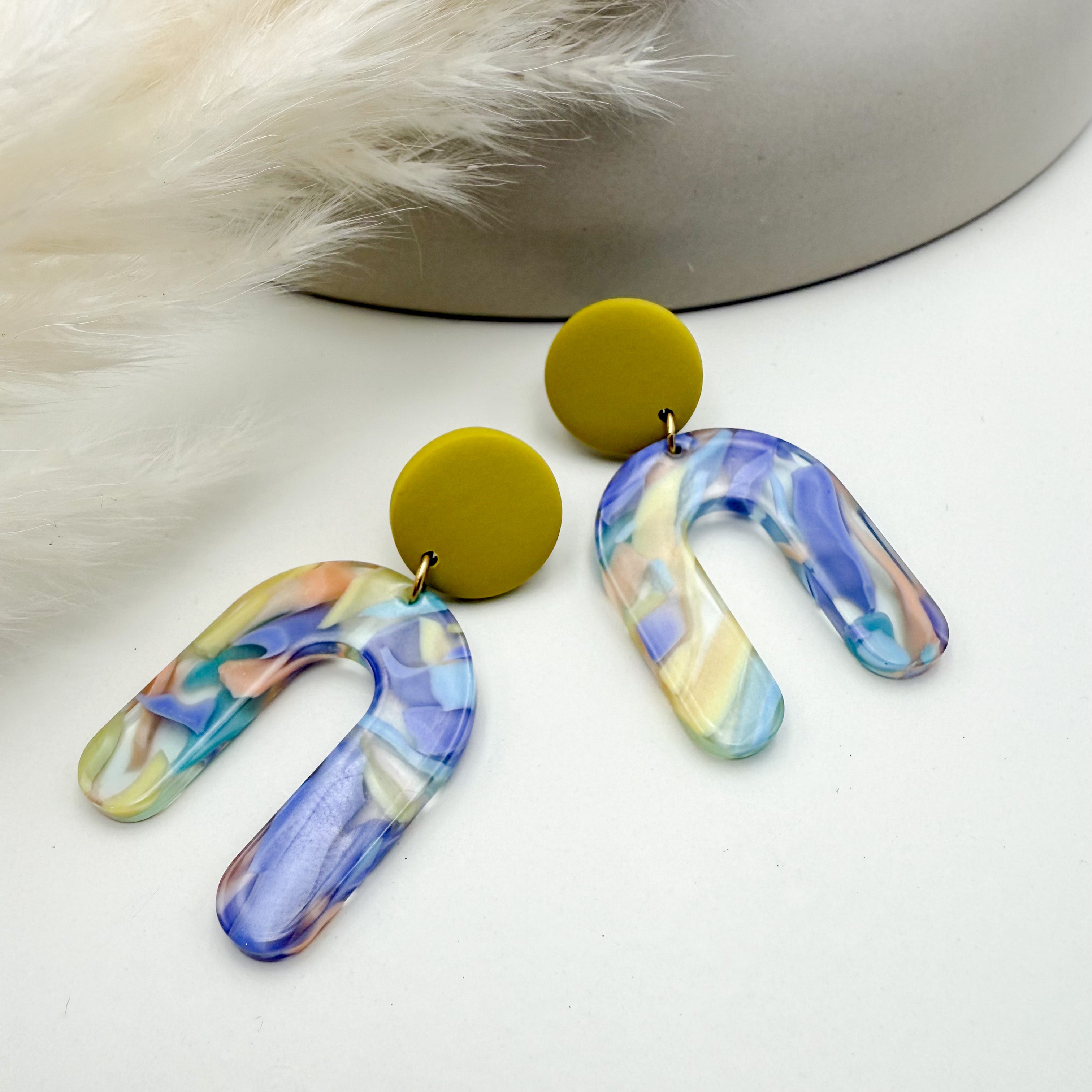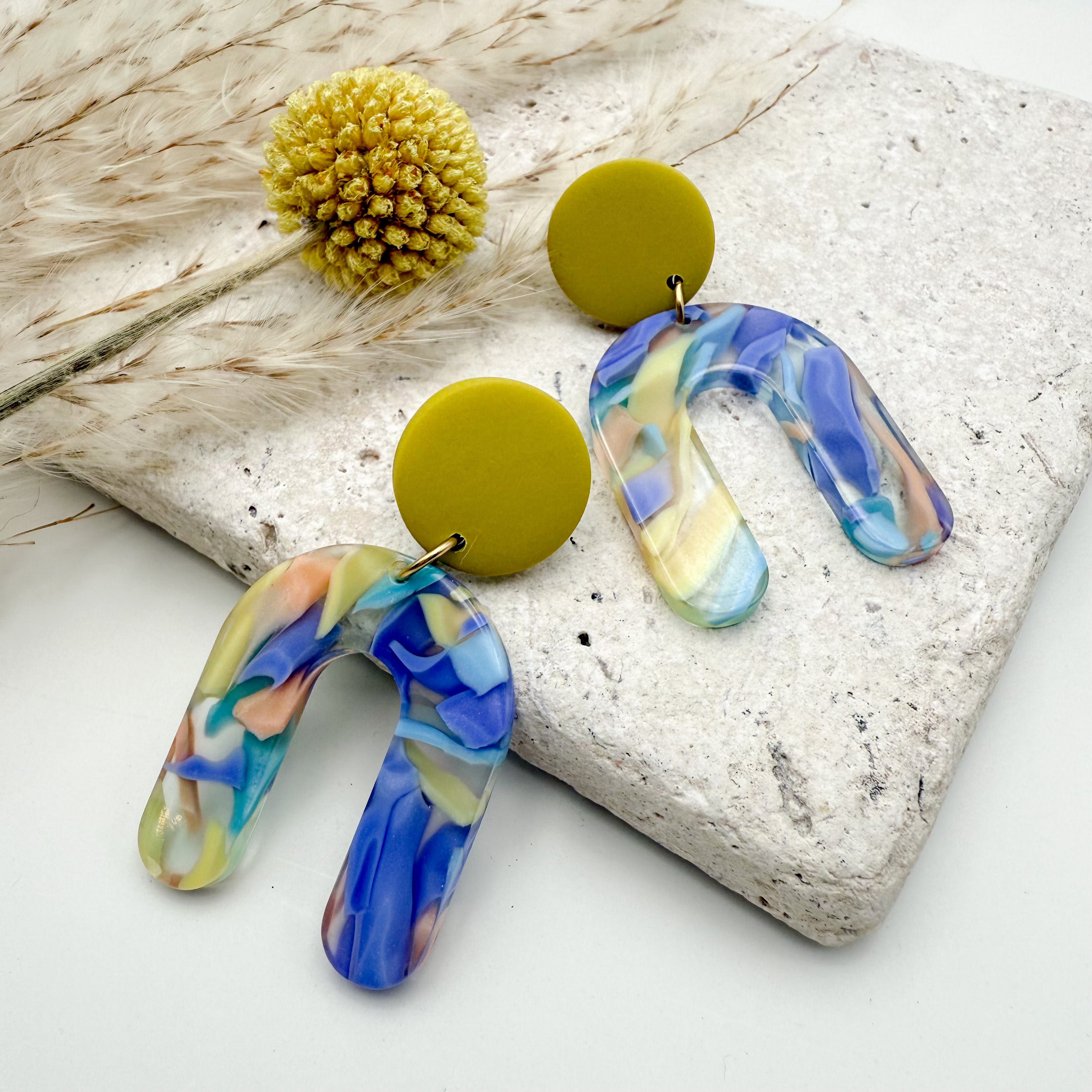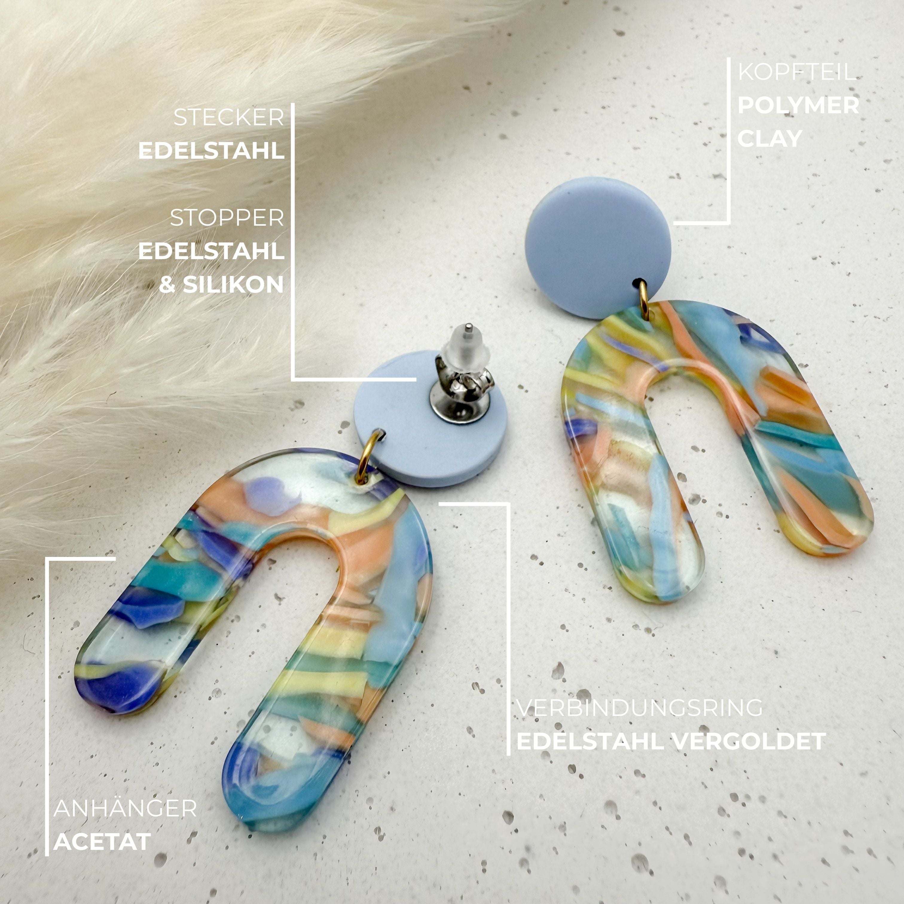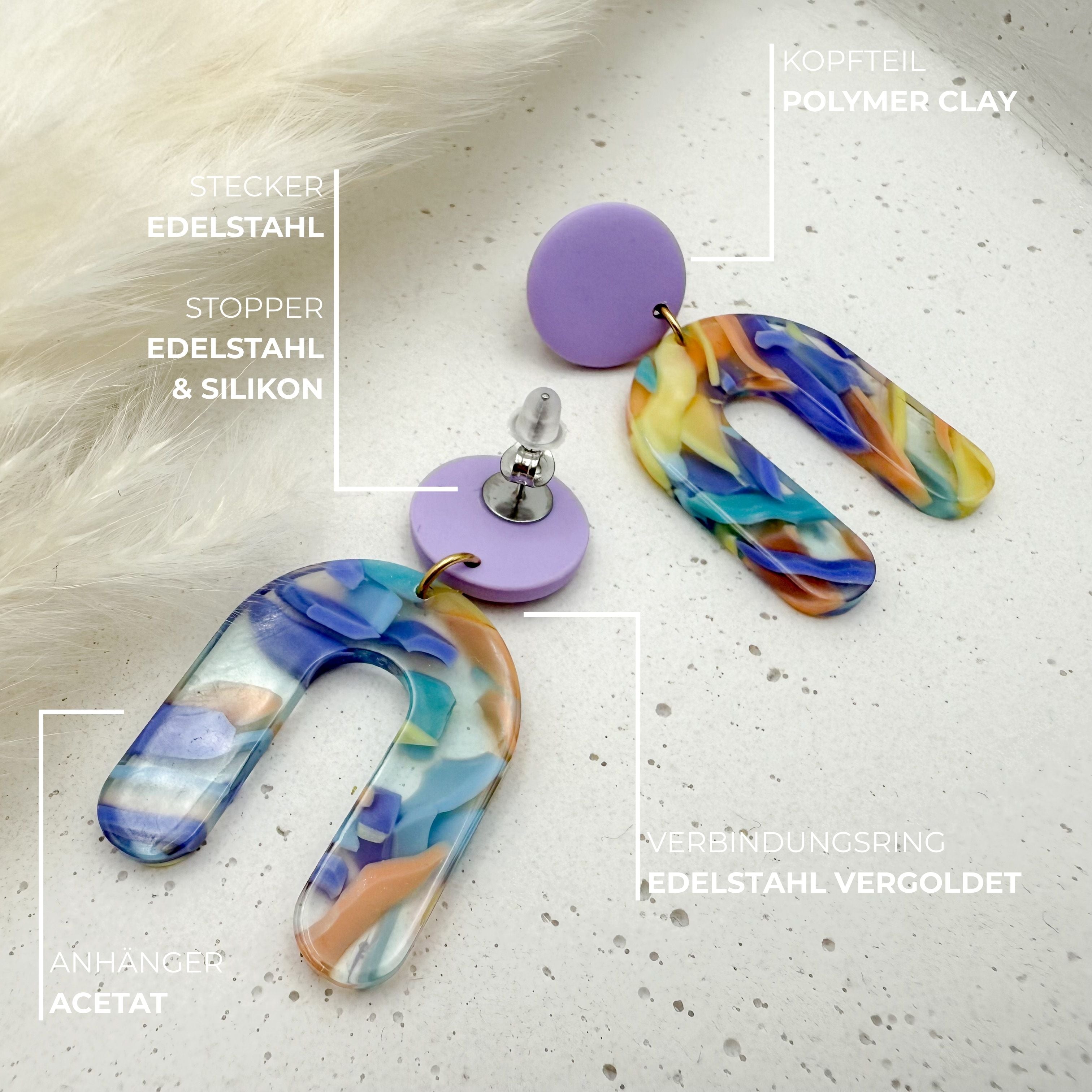 Stilvolle Ohrringe Elin mit Acetat oder einer Kombination aus Polymer Clay und Acetat von Vagabundobjects.