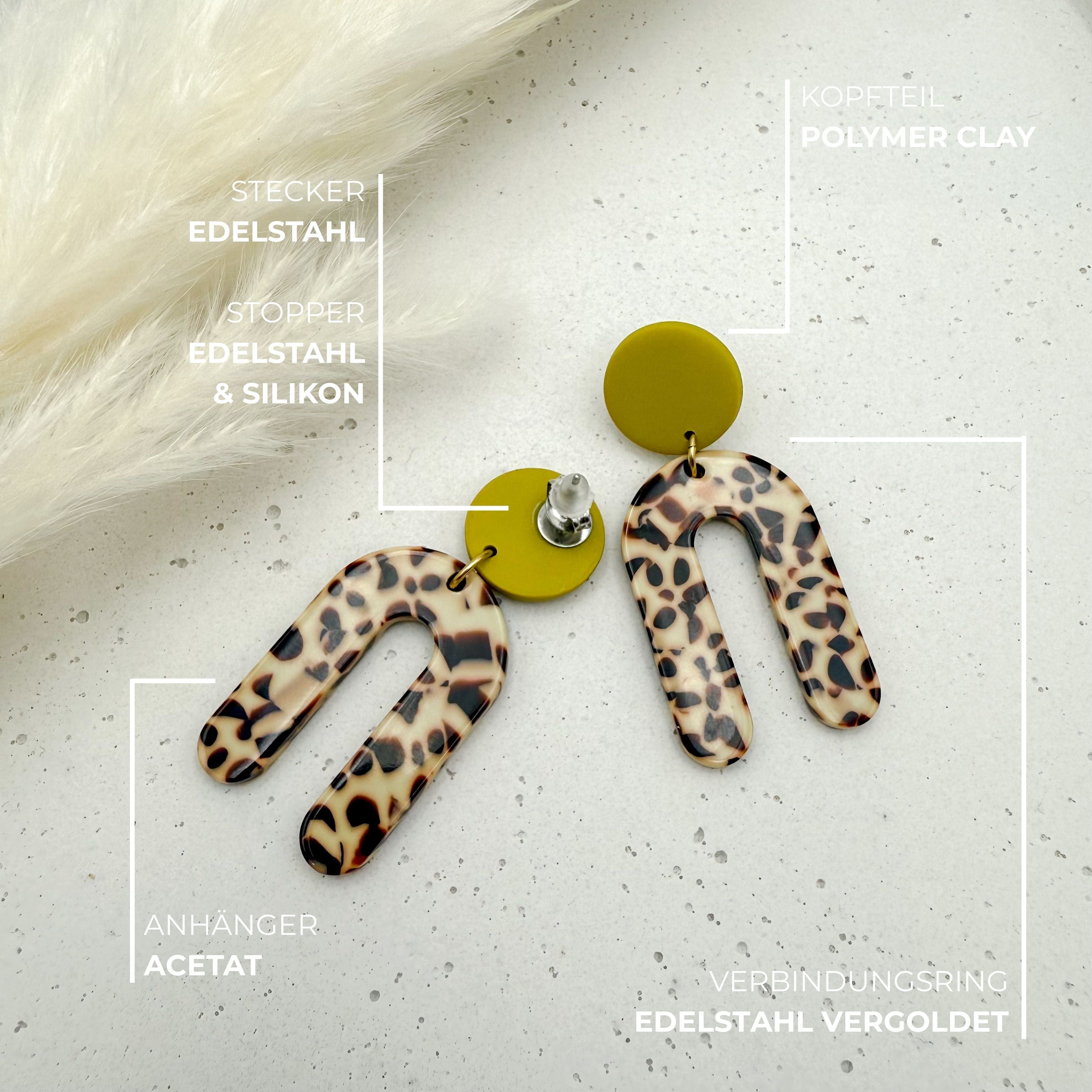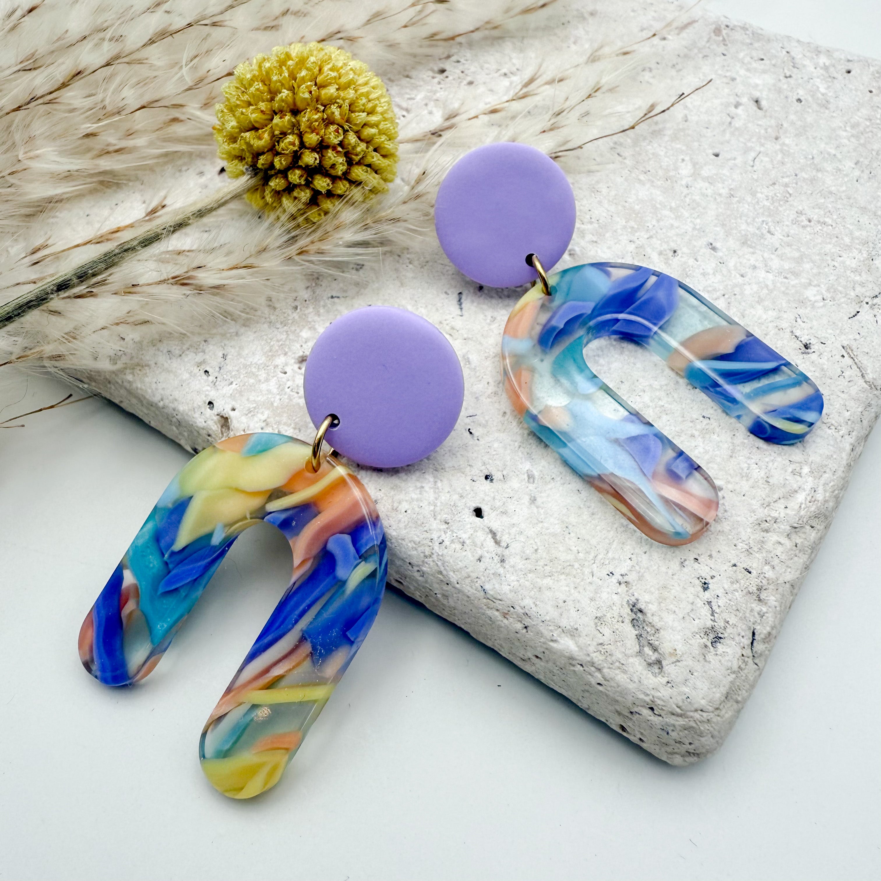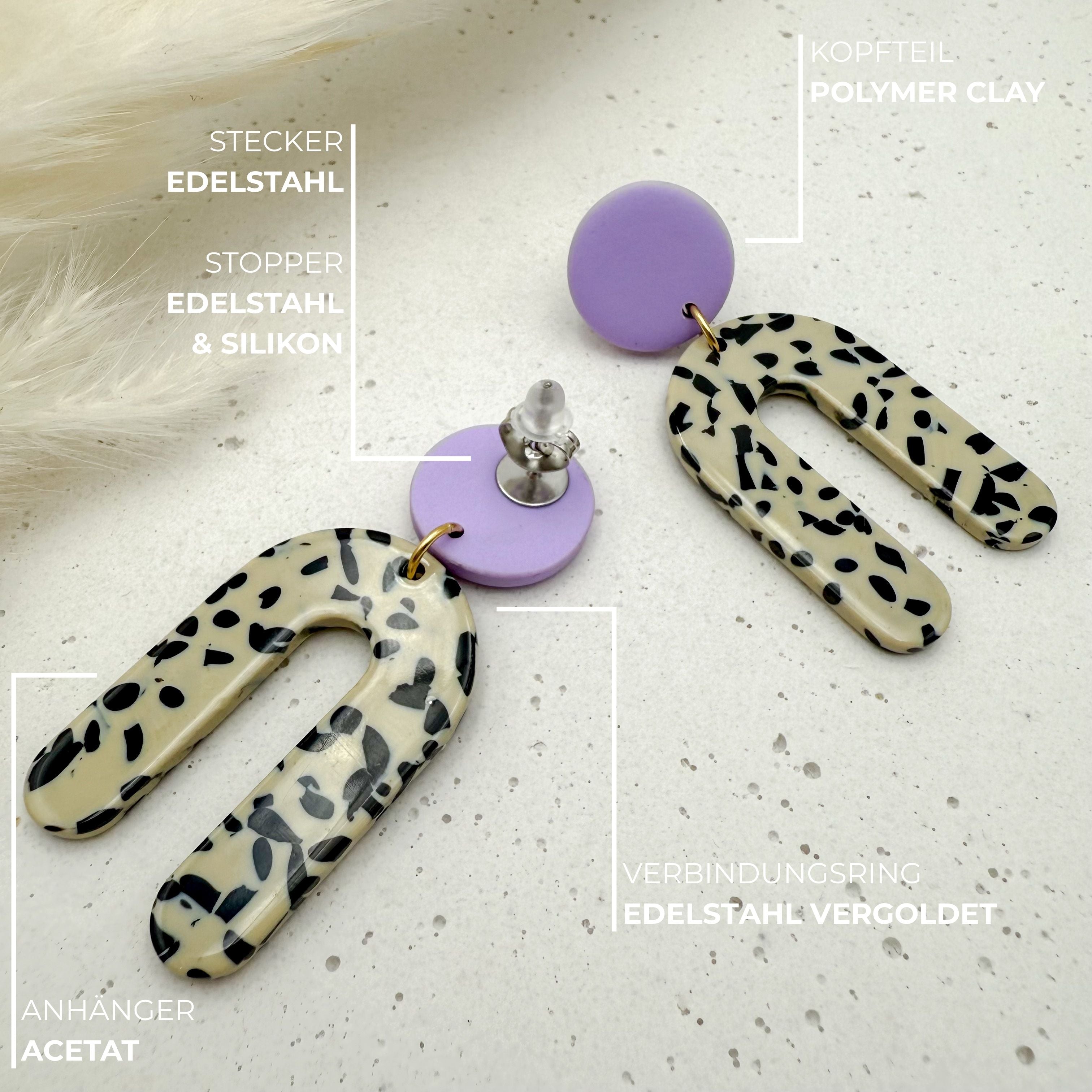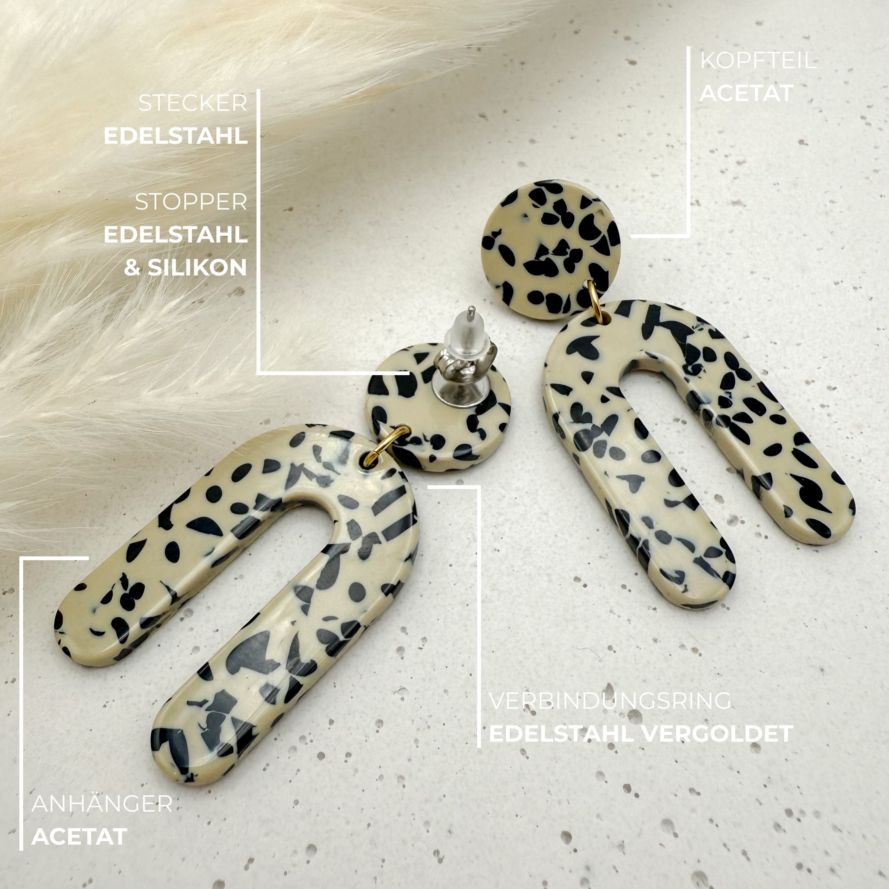 Stilvolle Ohrringe Elin mit Acetat oder einer Kombination aus Polymer Clay und Acetat von Vagabundobjects.