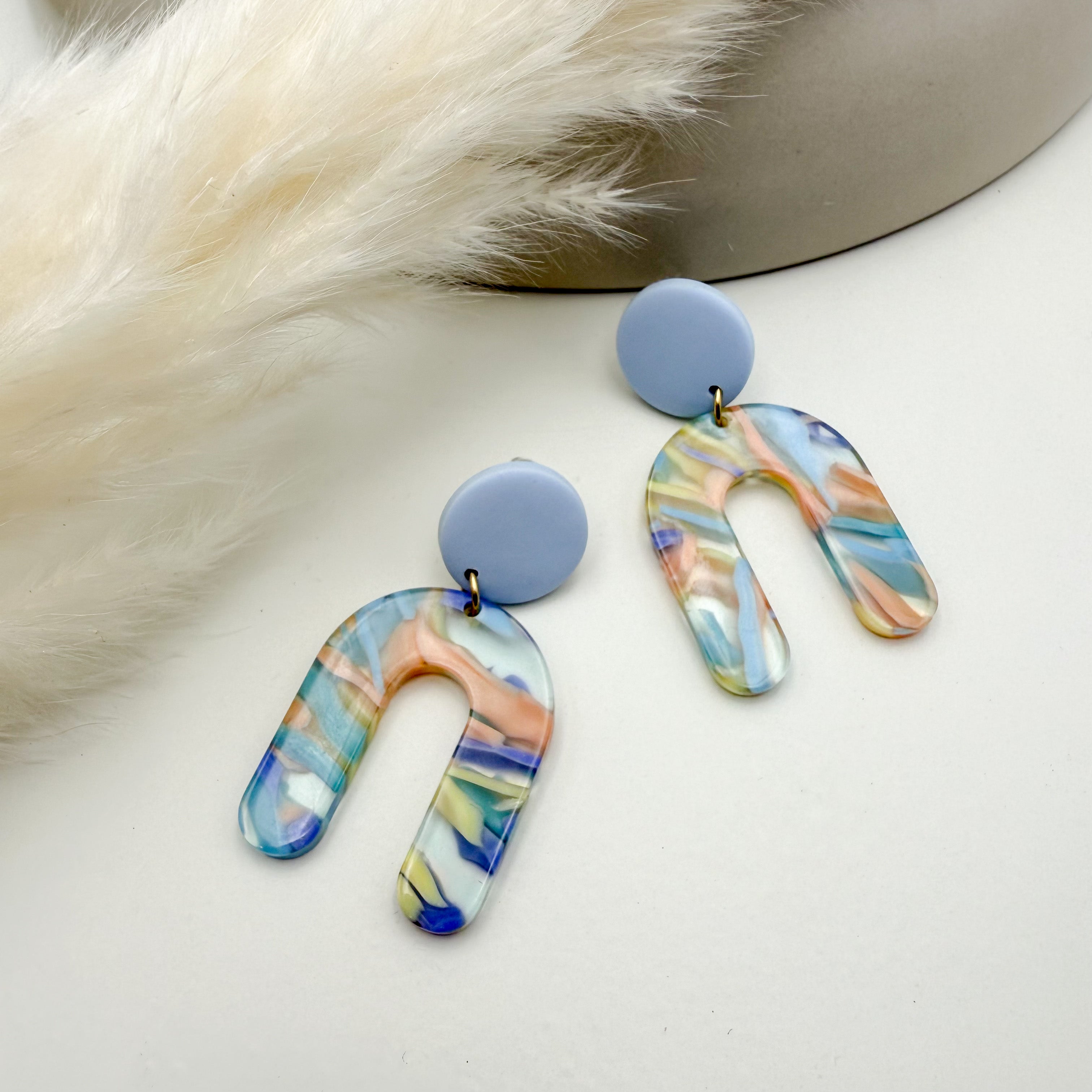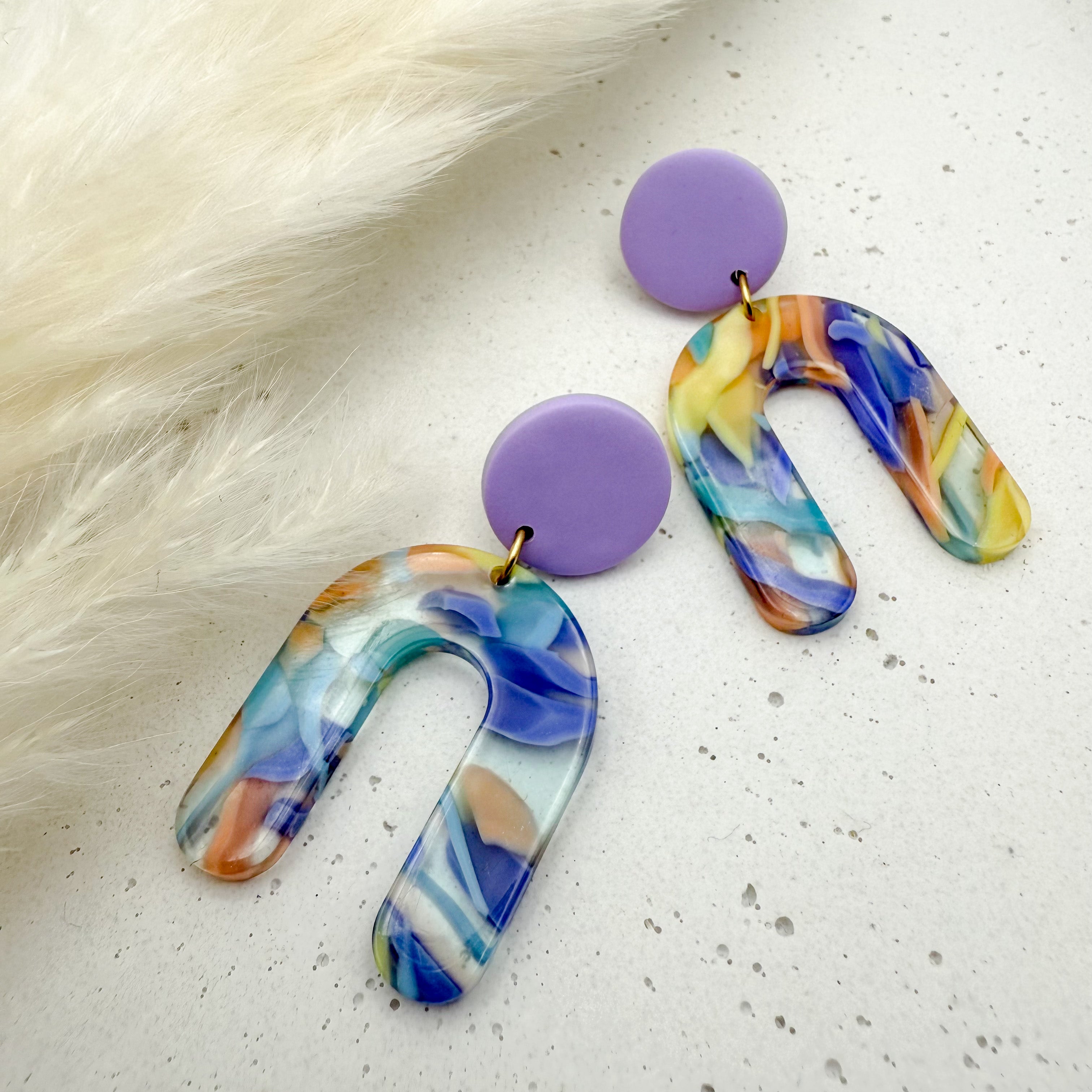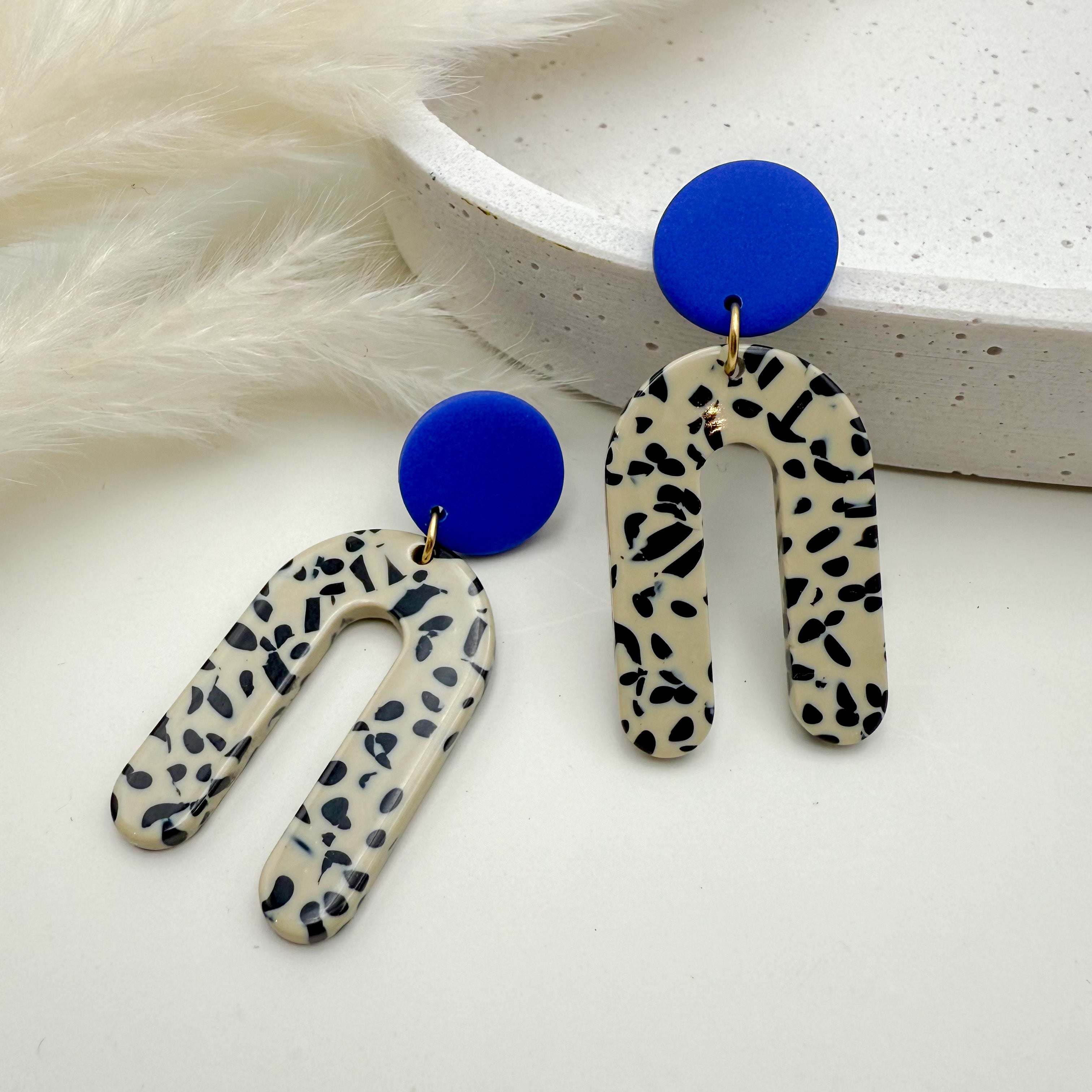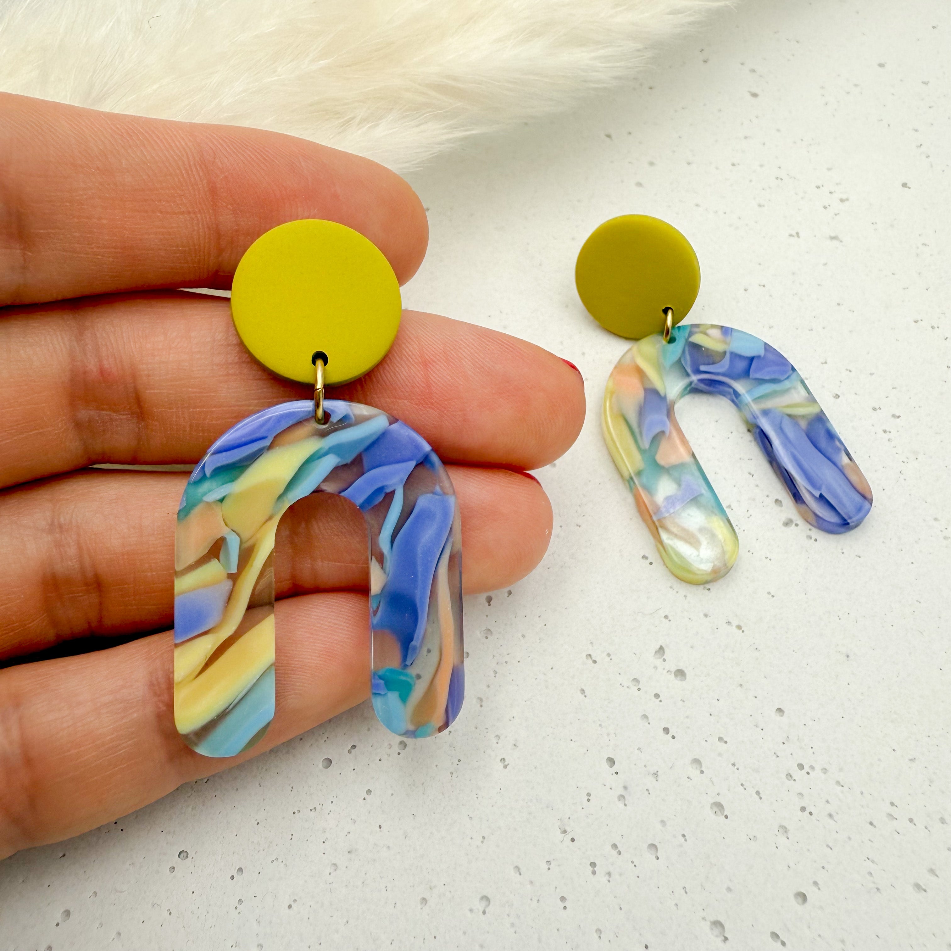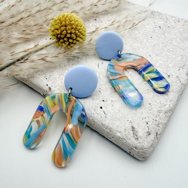 Stilvolle Ohrringe Elin mit Acetat oder einer Kombination aus Polymer Clay und Acetat von Vagabundobjects.