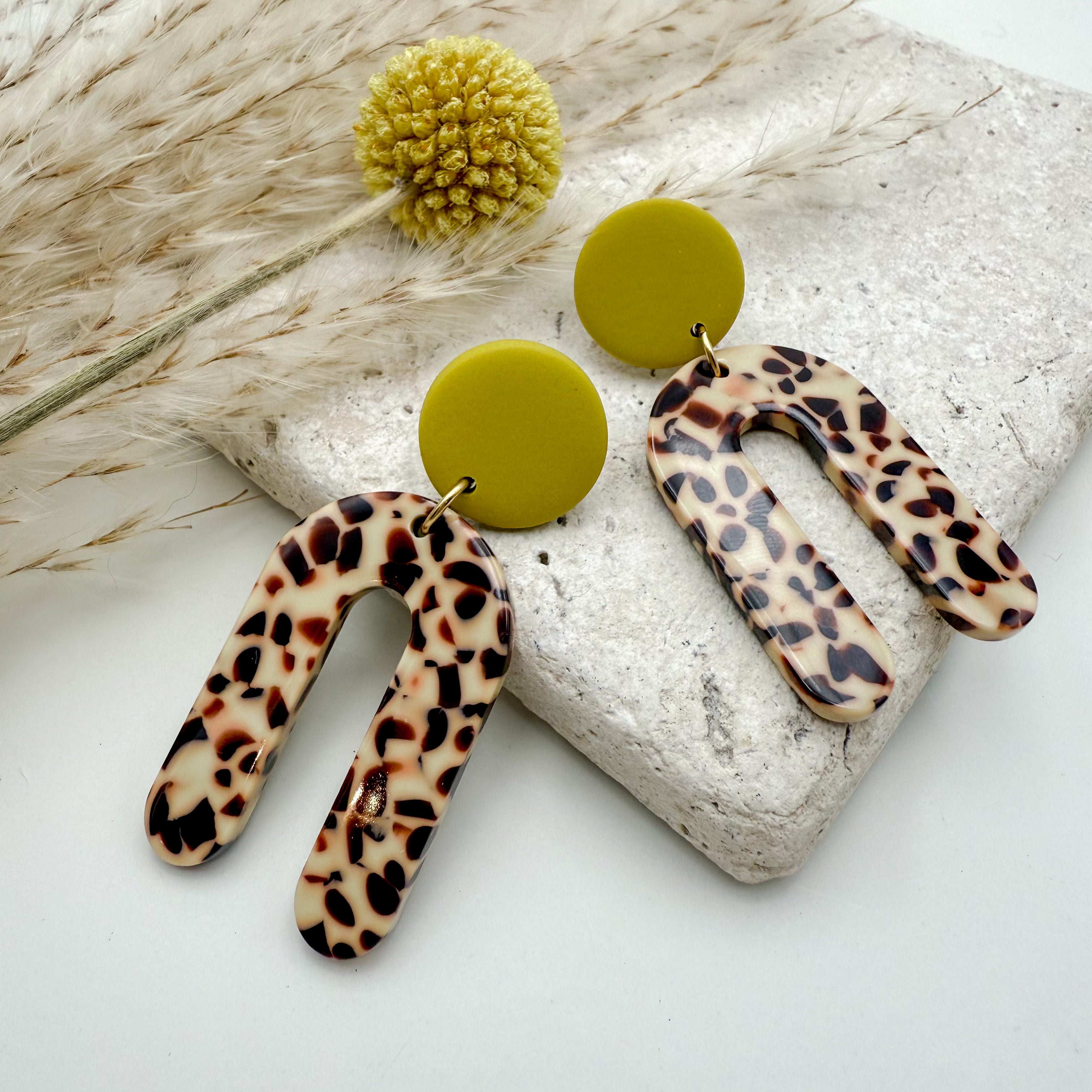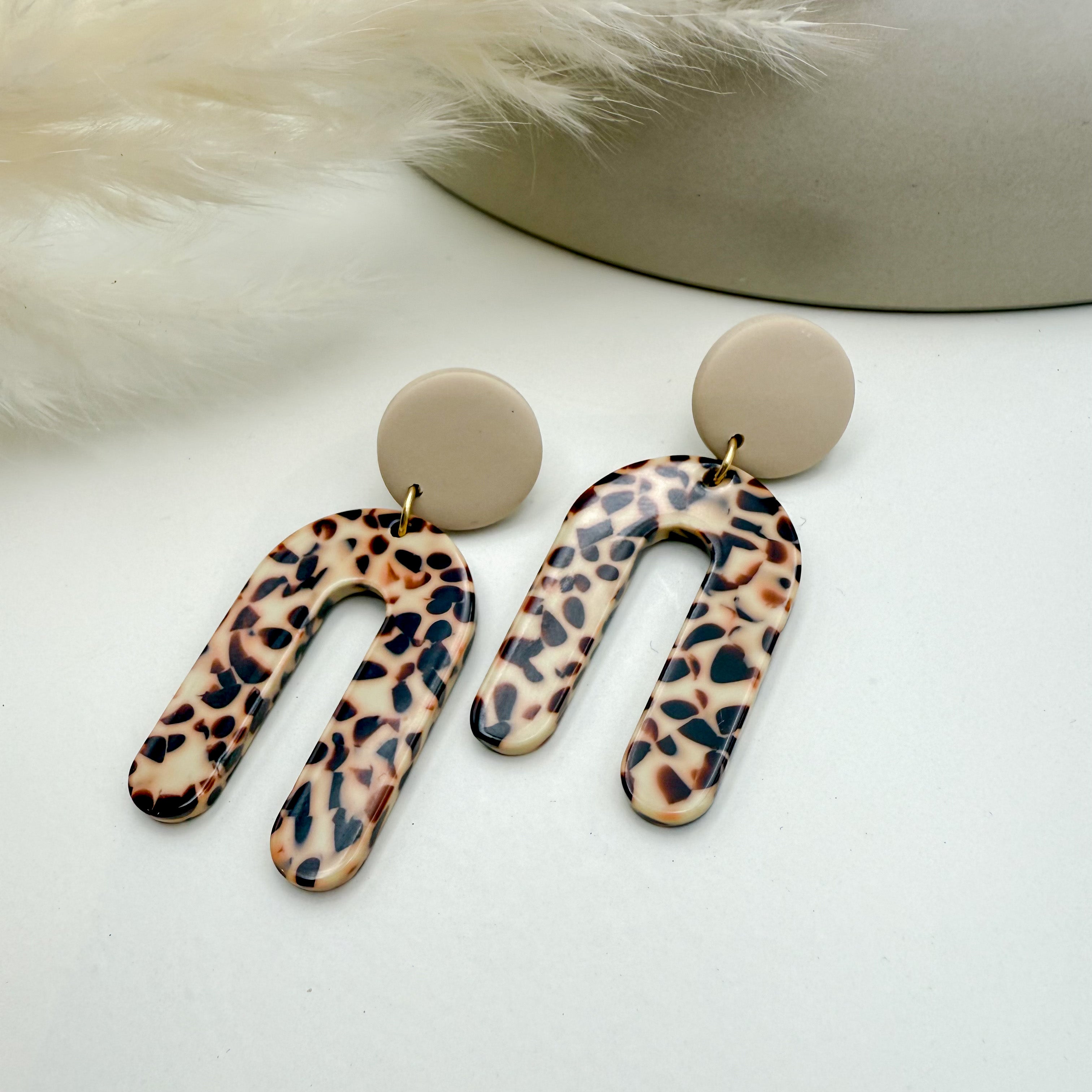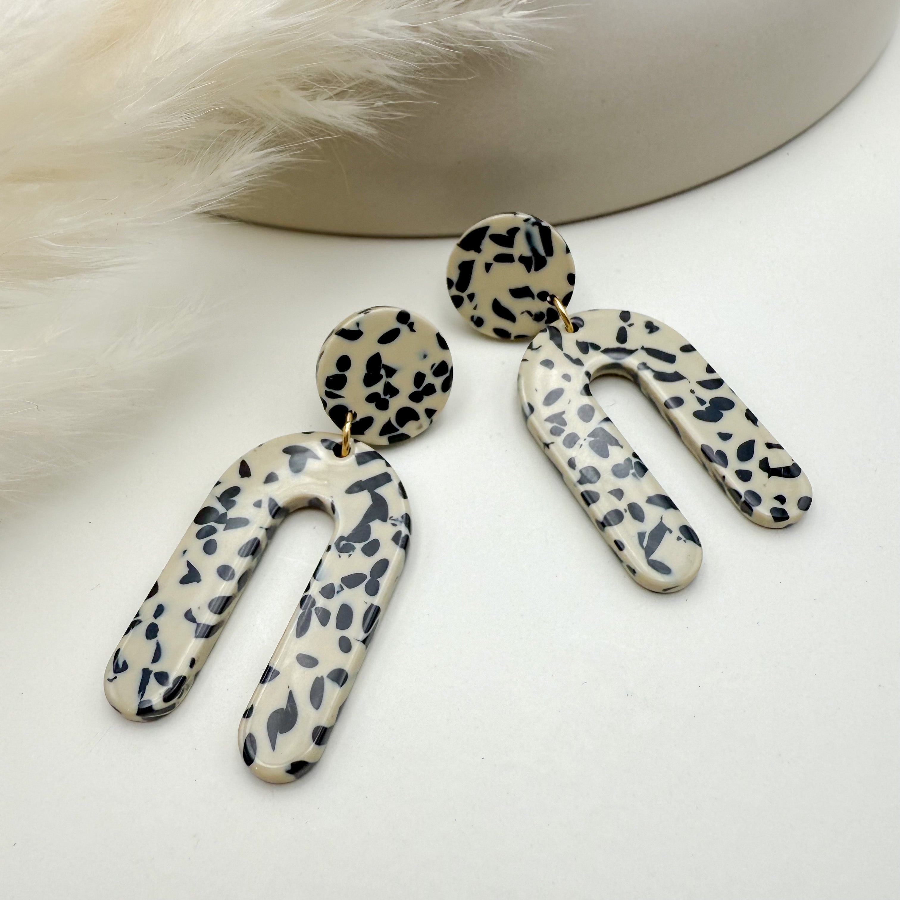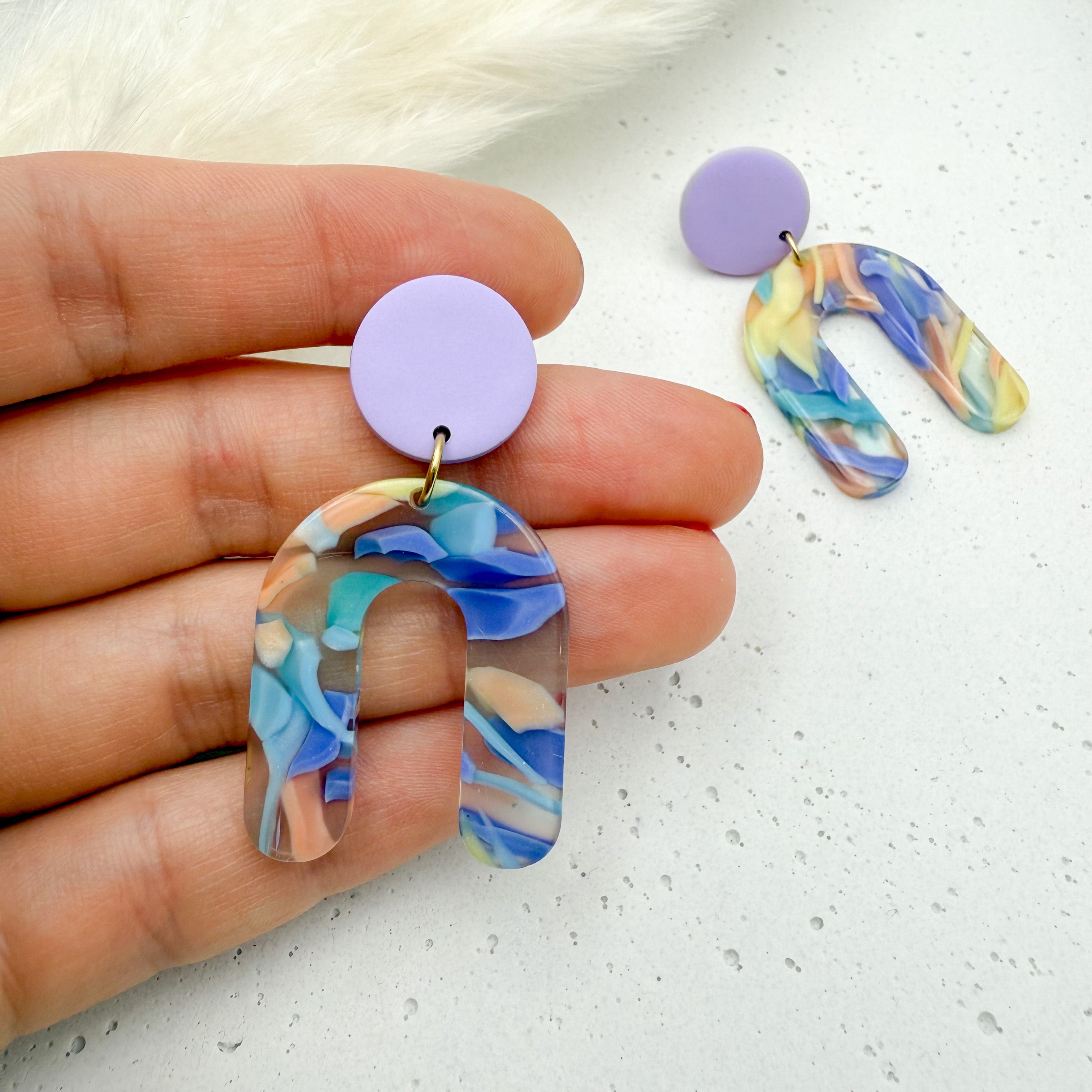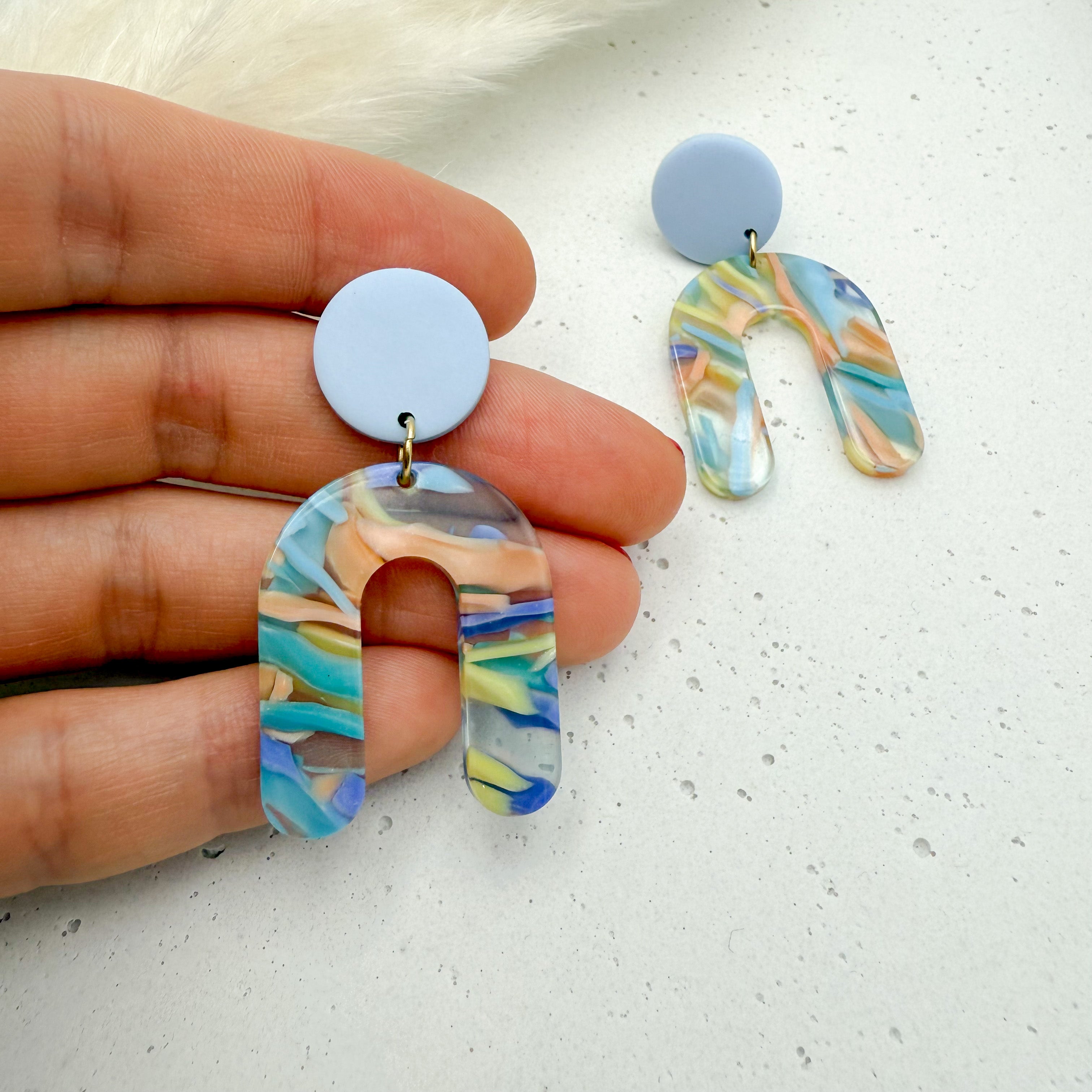 Stilvolle Ohrringe Elin mit Acetat oder einer Kombination aus Polymer Clay und Acetat von Vagabundobjects.