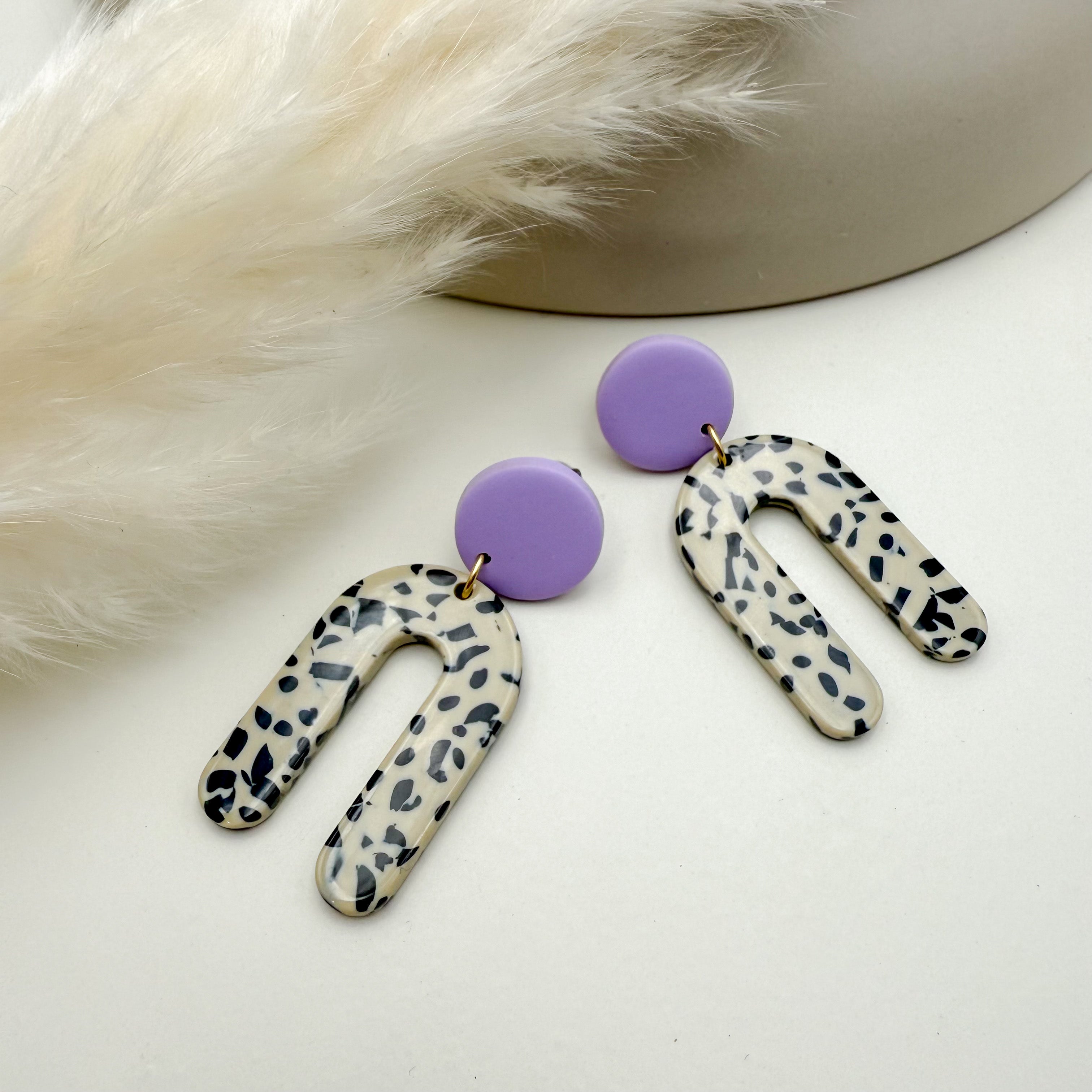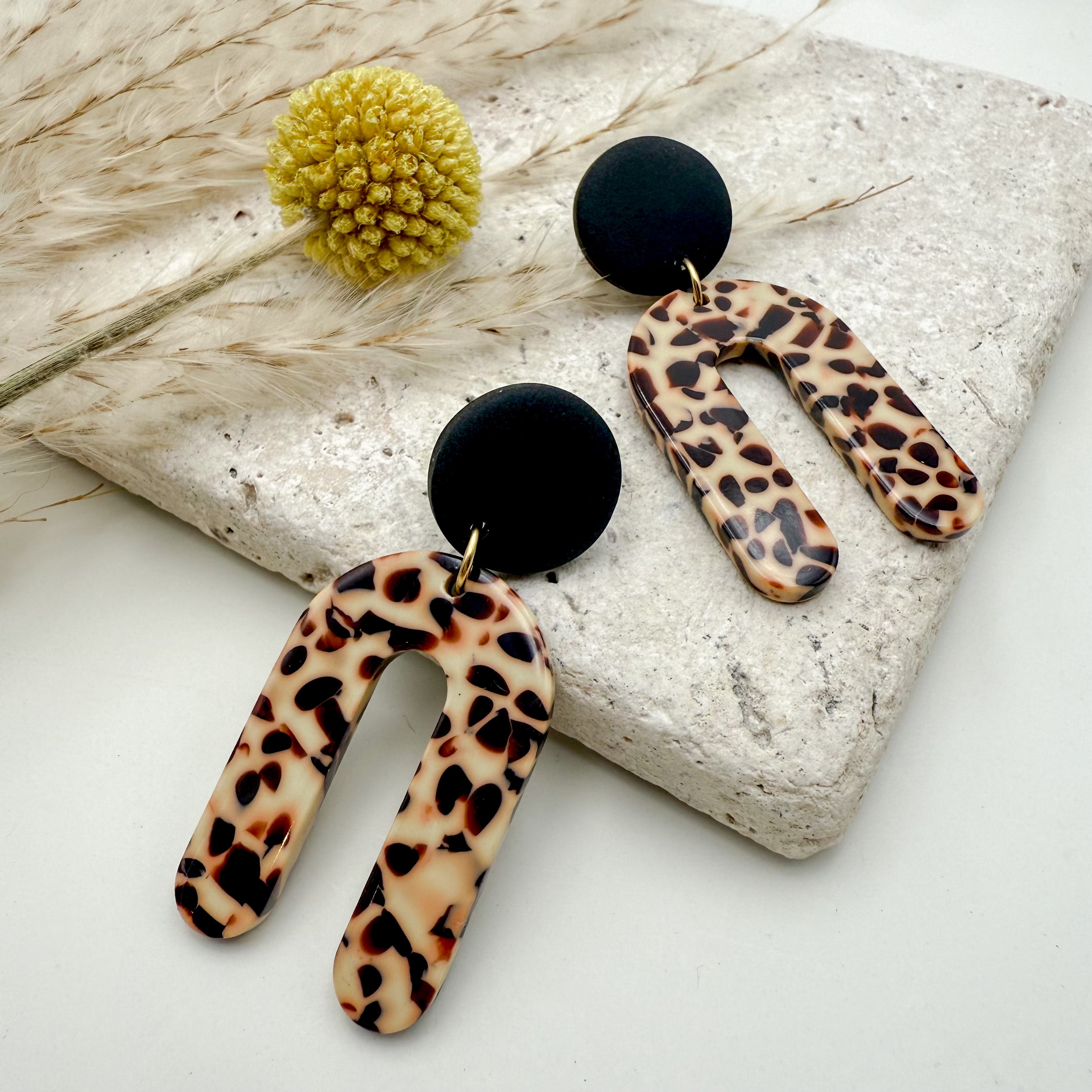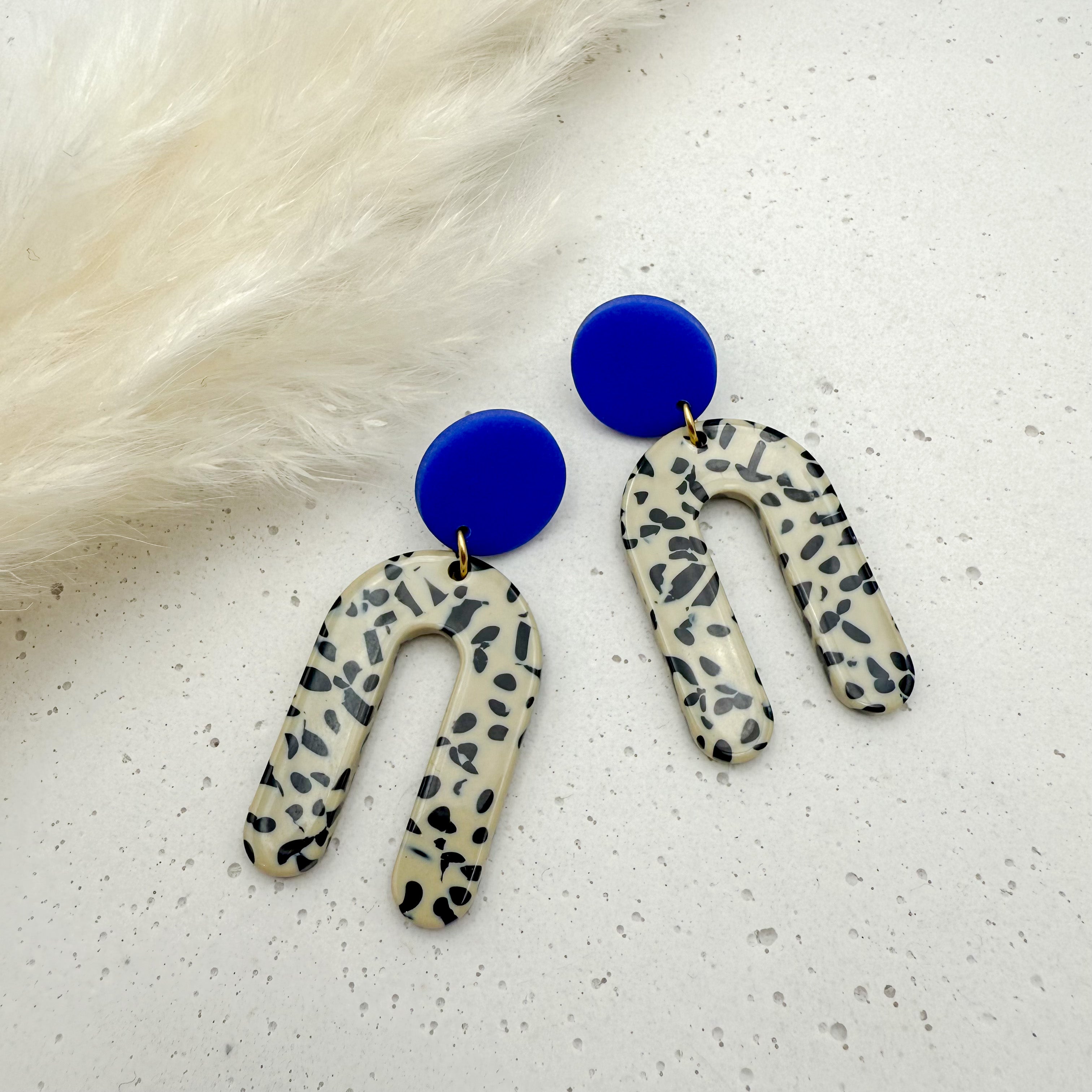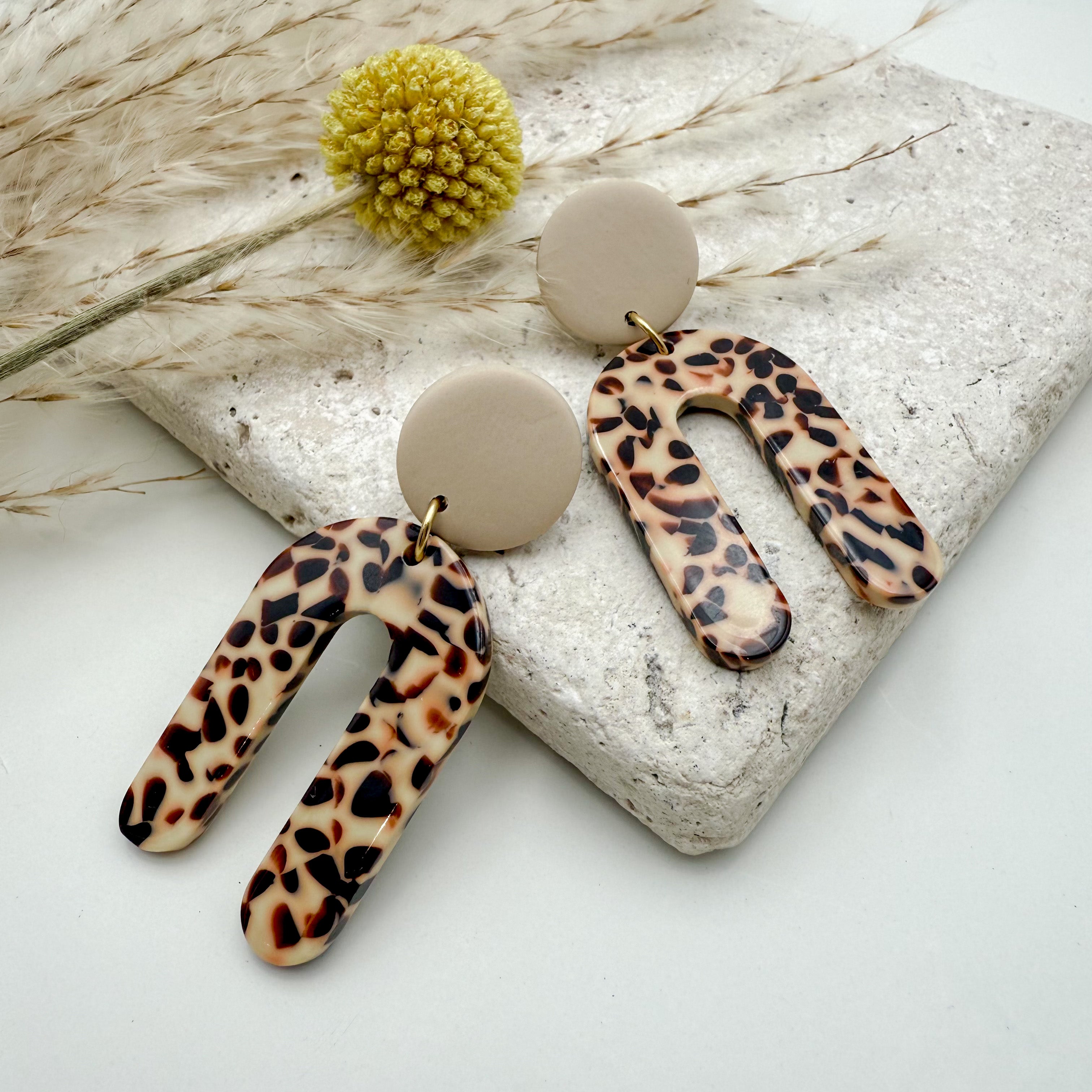 Stilvolle Ohrringe Elin mit Acetat oder einer Kombination aus Polymer Clay und Acetat von Vagabundobjects.