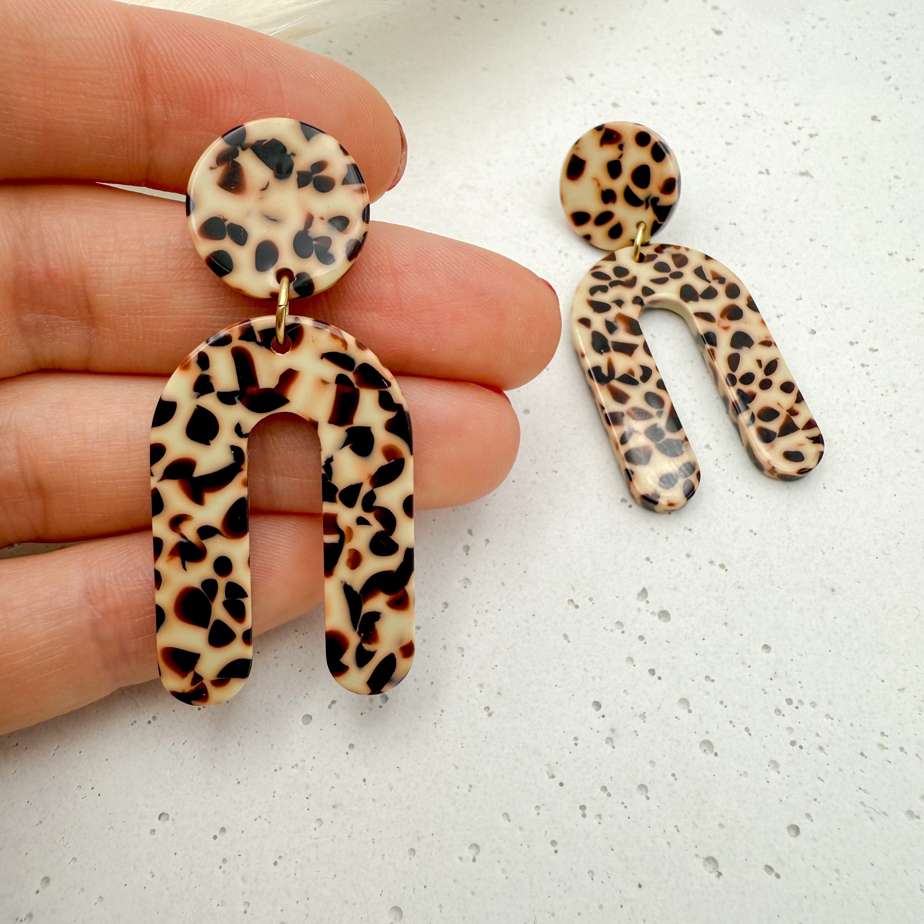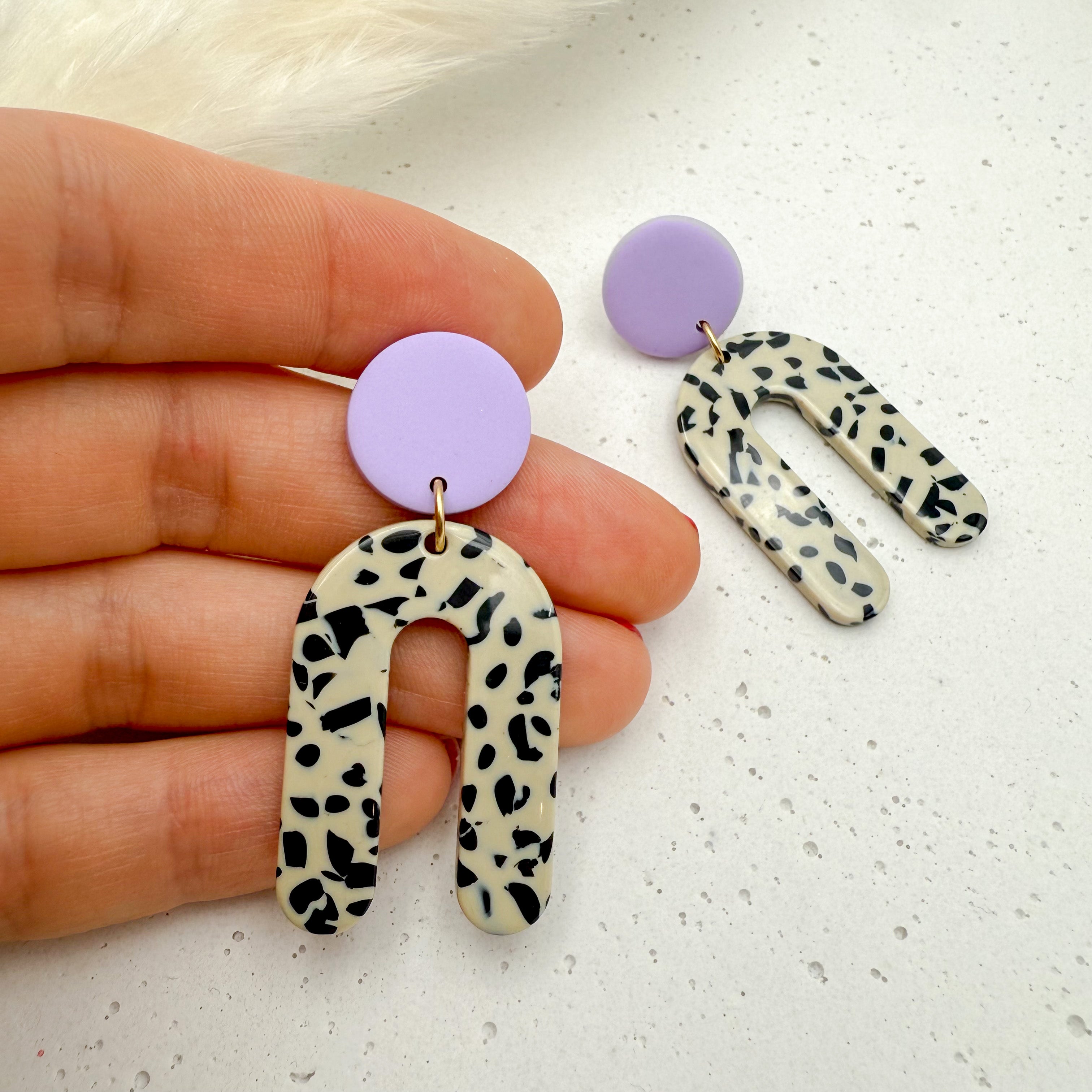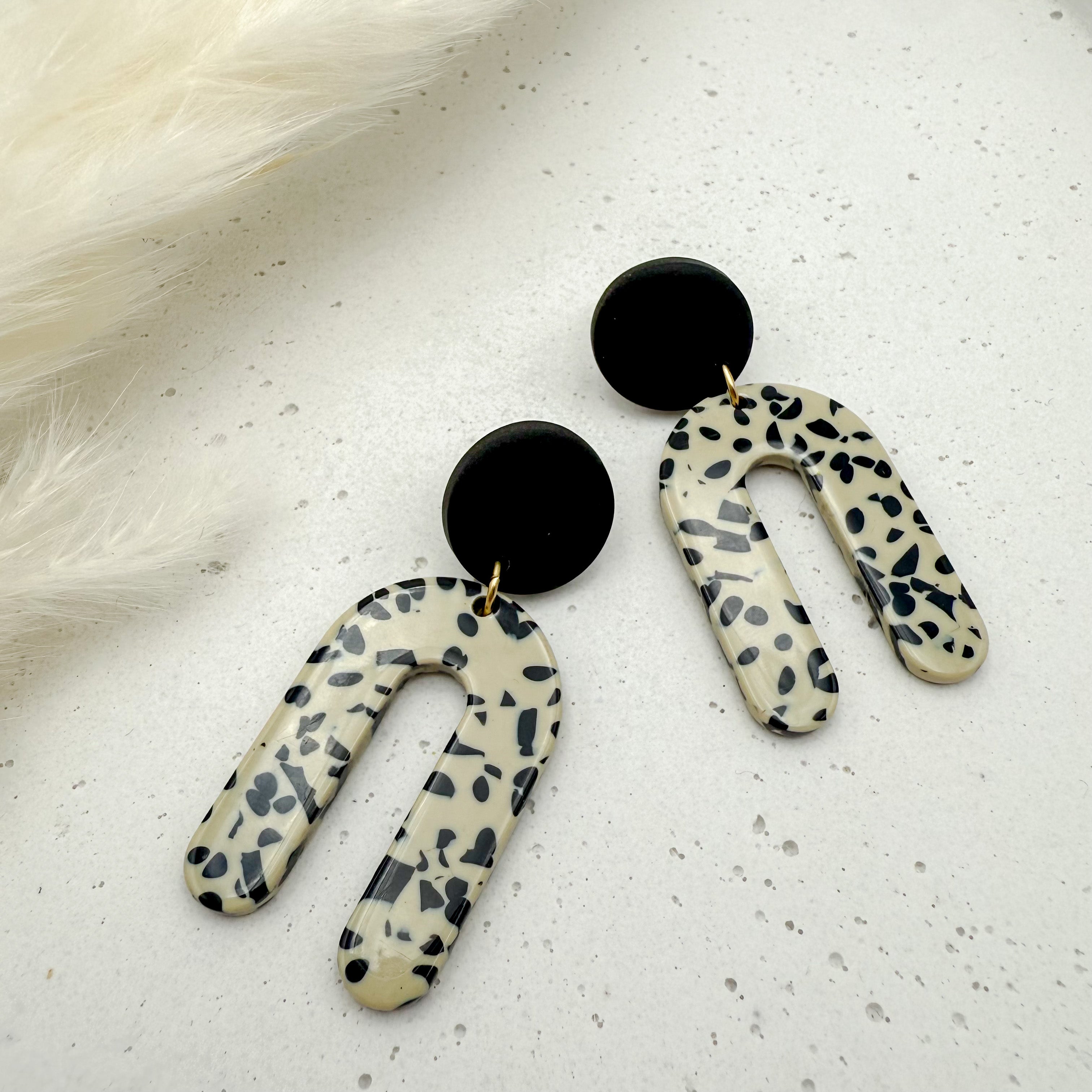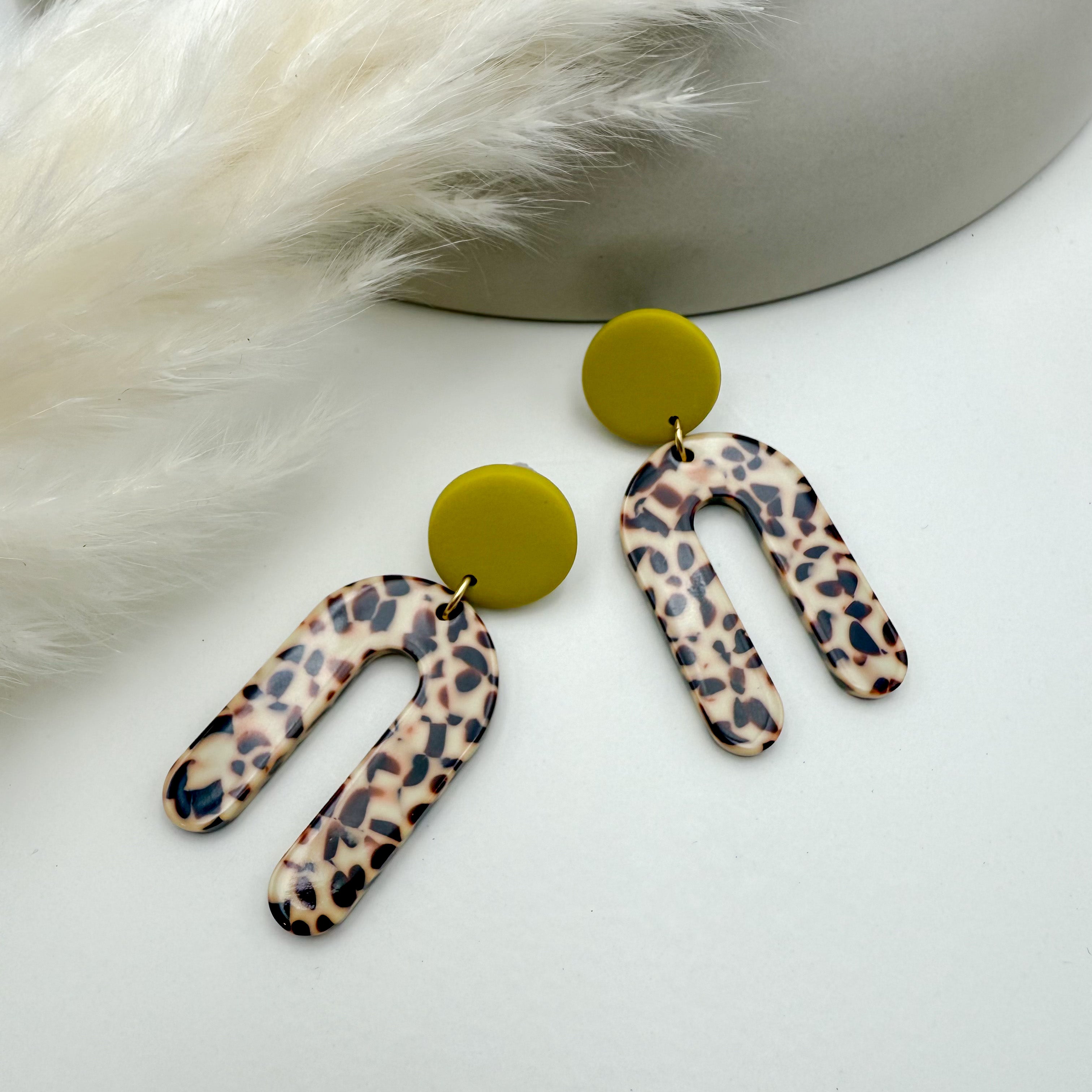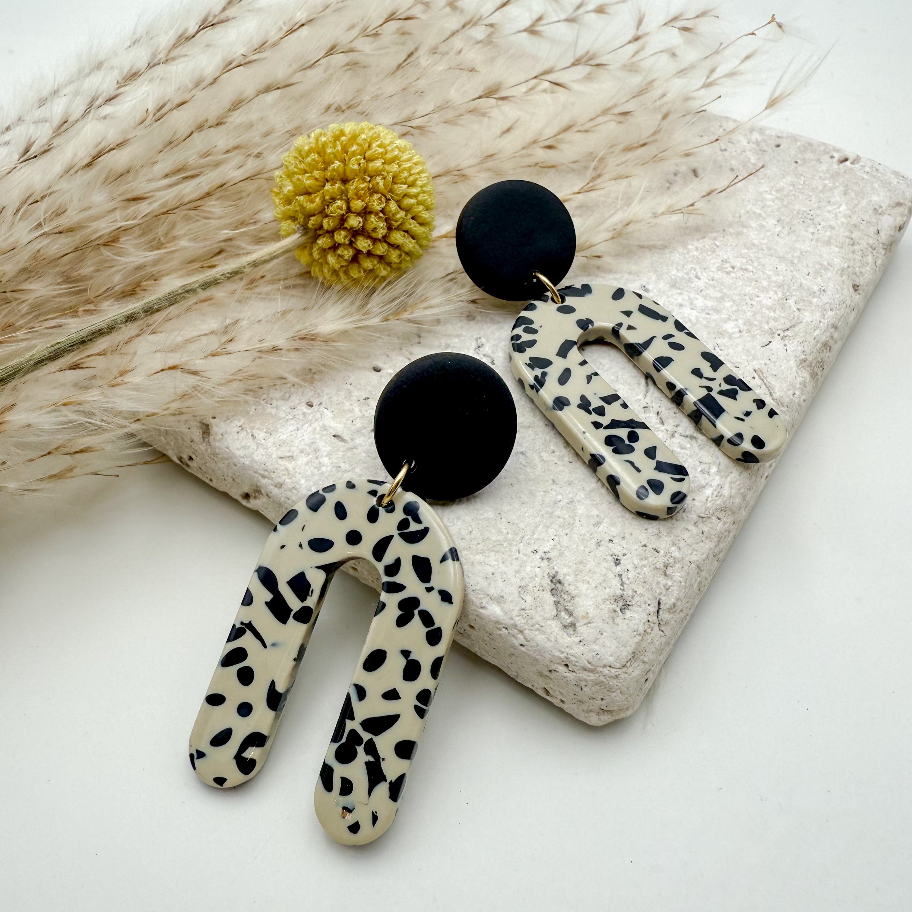 Stilvolle Ohrringe Elin mit Acetat oder einer Kombination aus Polymer Clay und Acetat von Vagabundobjects.
