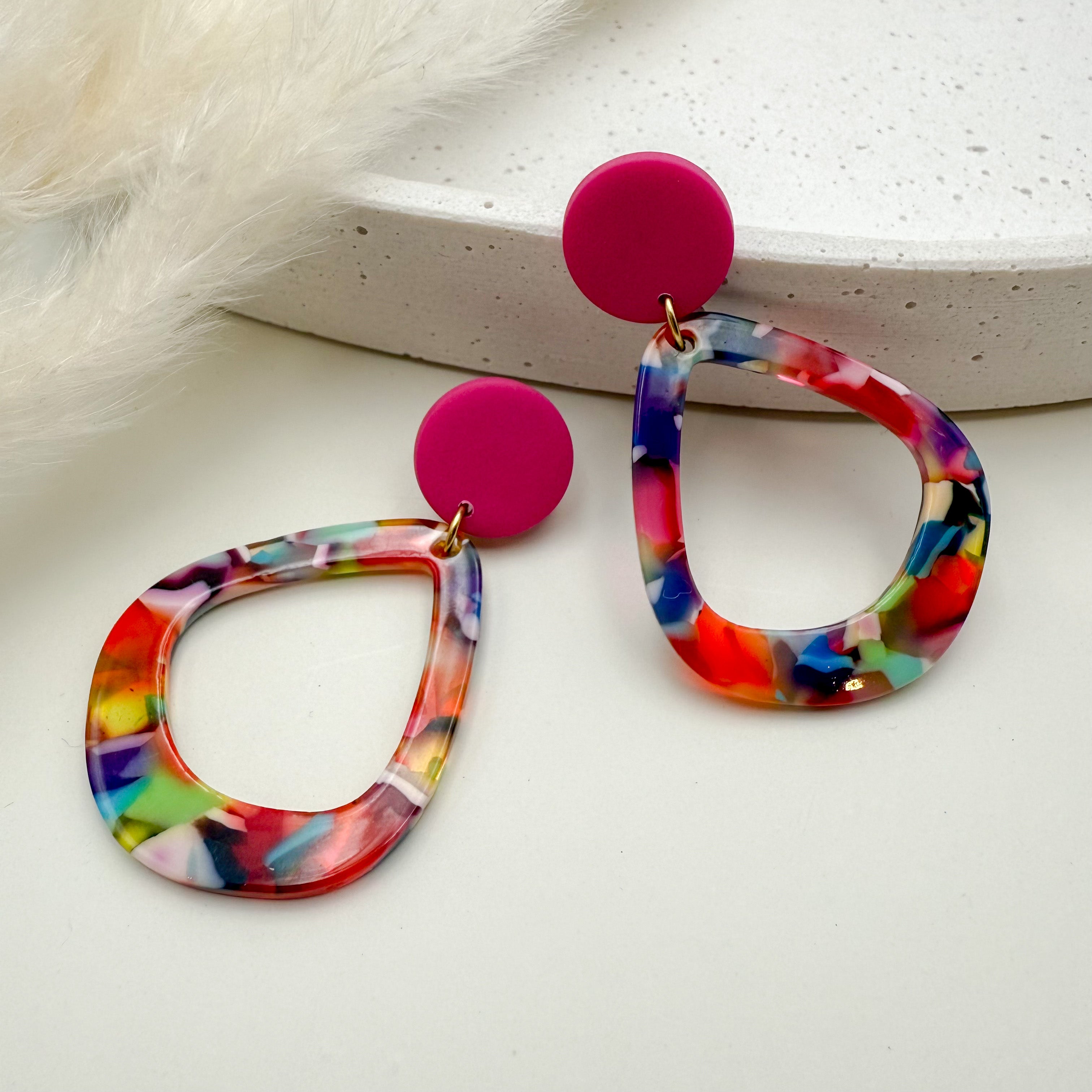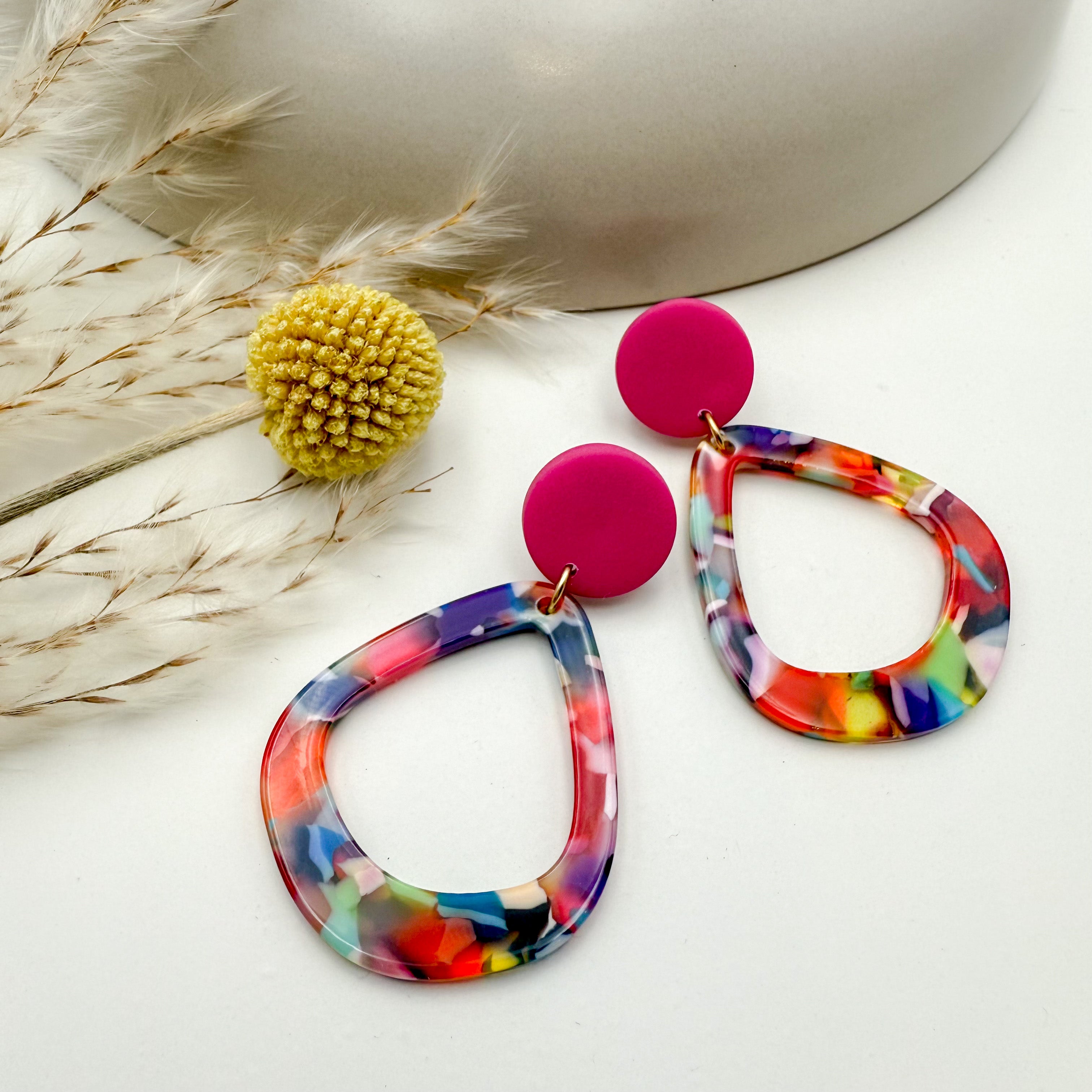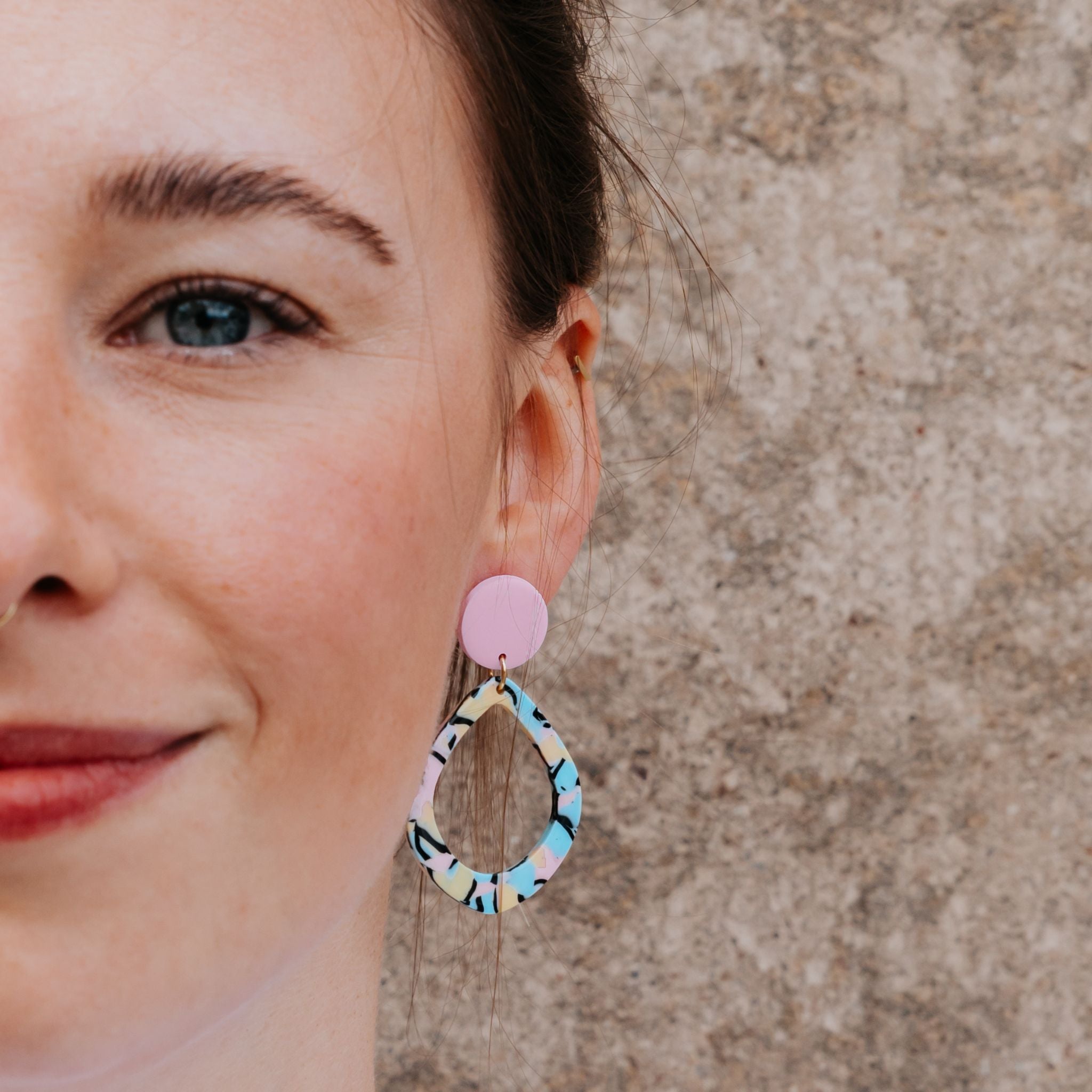 Stilvolle Ohrringe Mei mit Acetat oder einer Kombination aus Polymer Clay und Acetat von Vagabundobjects.